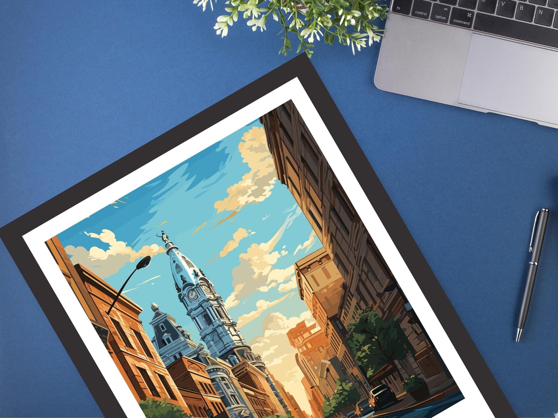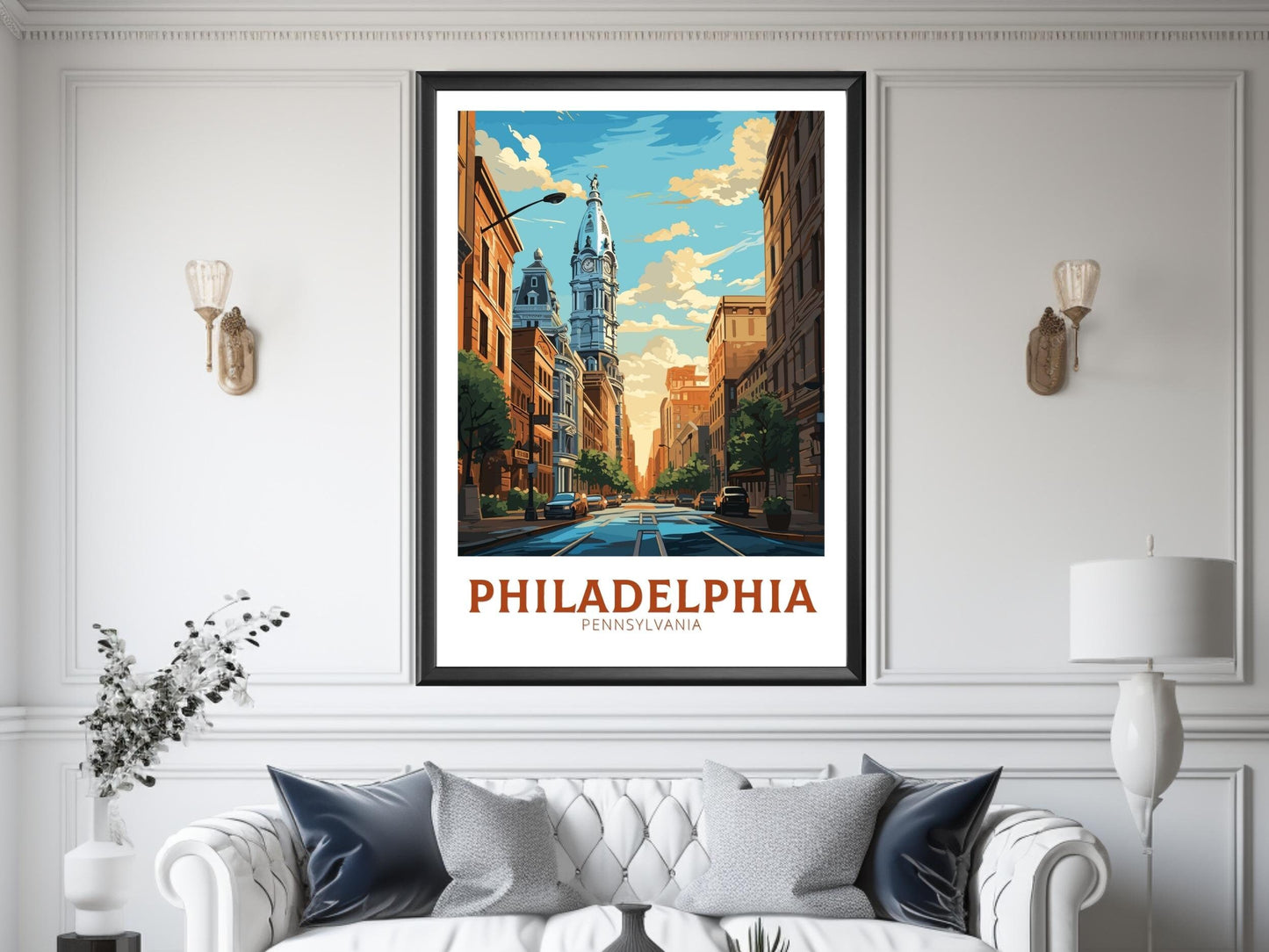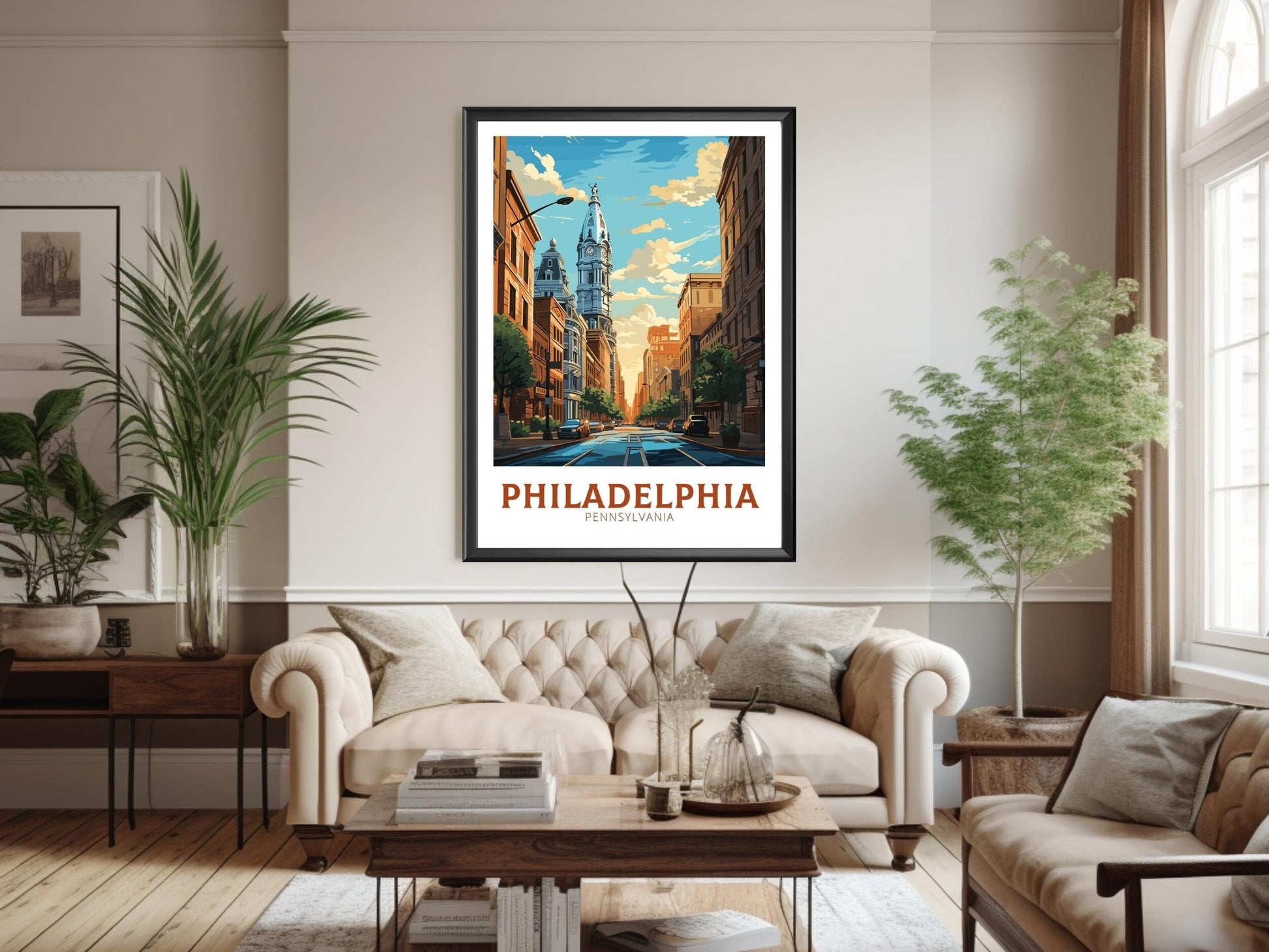 Disponible en téléchargement numérique et en tirage physique premium , cette affiche de voyage de Philadelphie est disponible en plusieurs formats, des formats de série A aux grands formats 76 x 102 cm. Ses couleurs vives et son design détaillé en font un ajout remarquable à votre maison, bureau ou mur de galerie, et un cadeau attentionné pour les admirateurs de la ville la plus historique de Pennsylvanie.