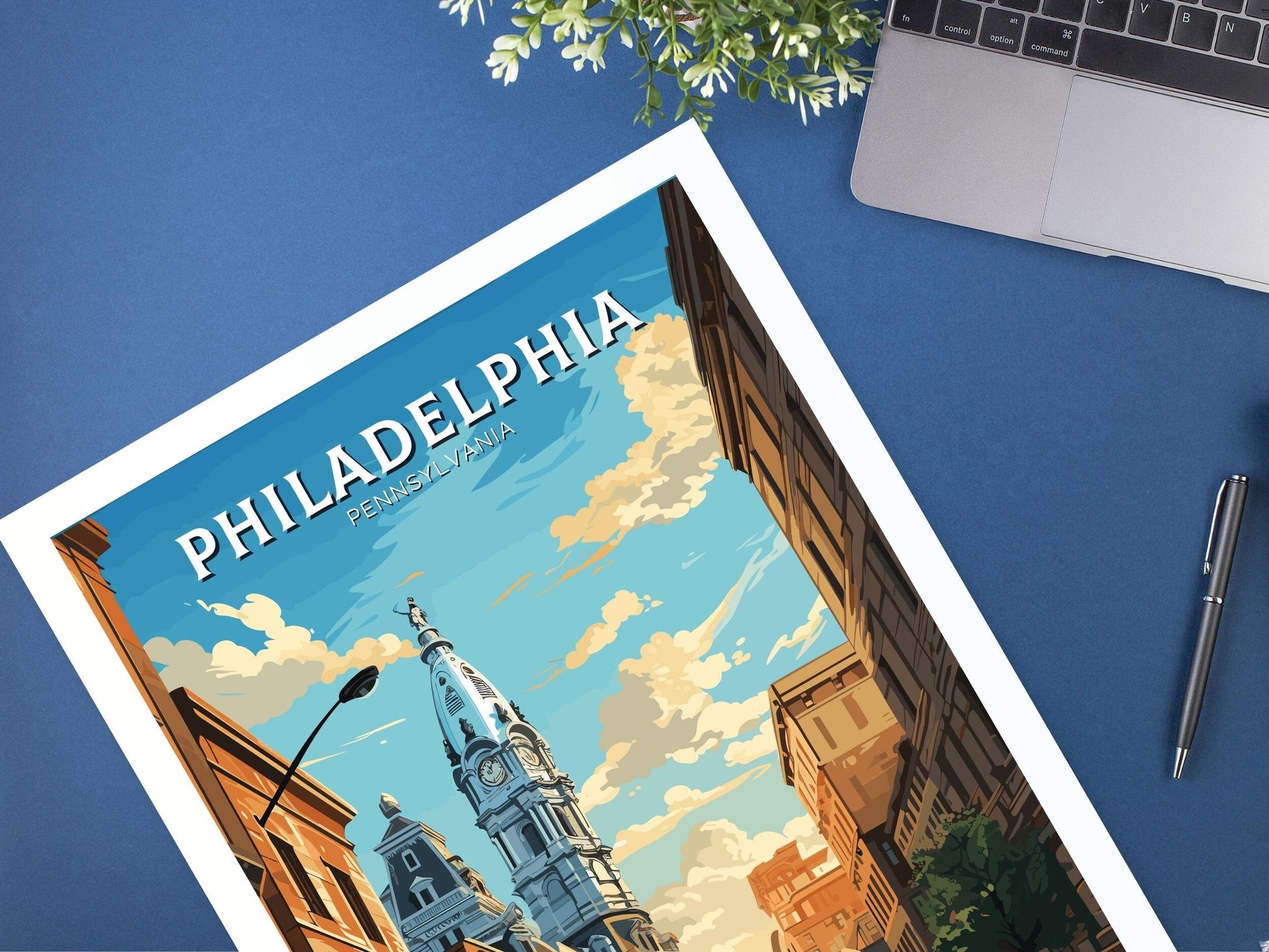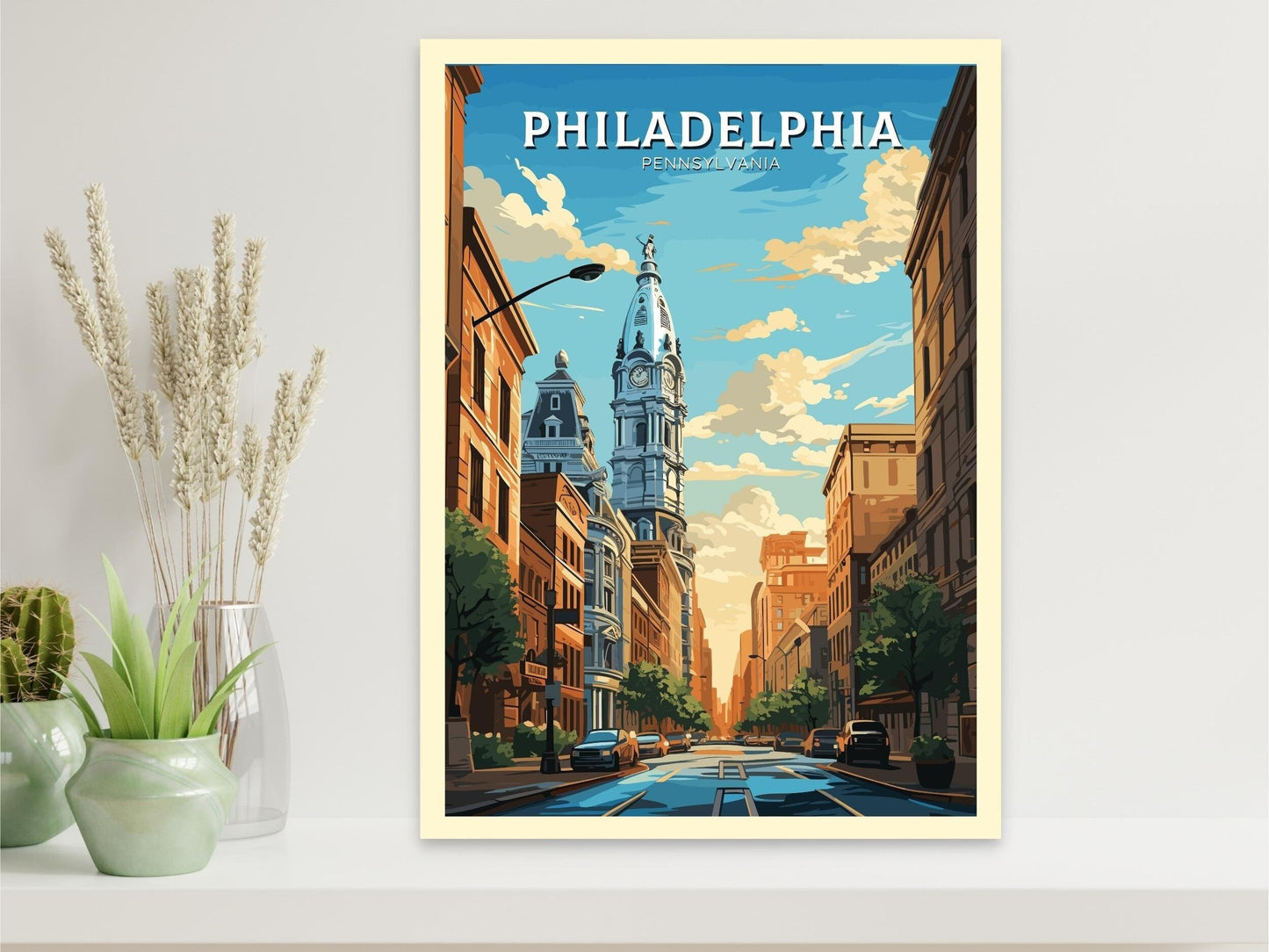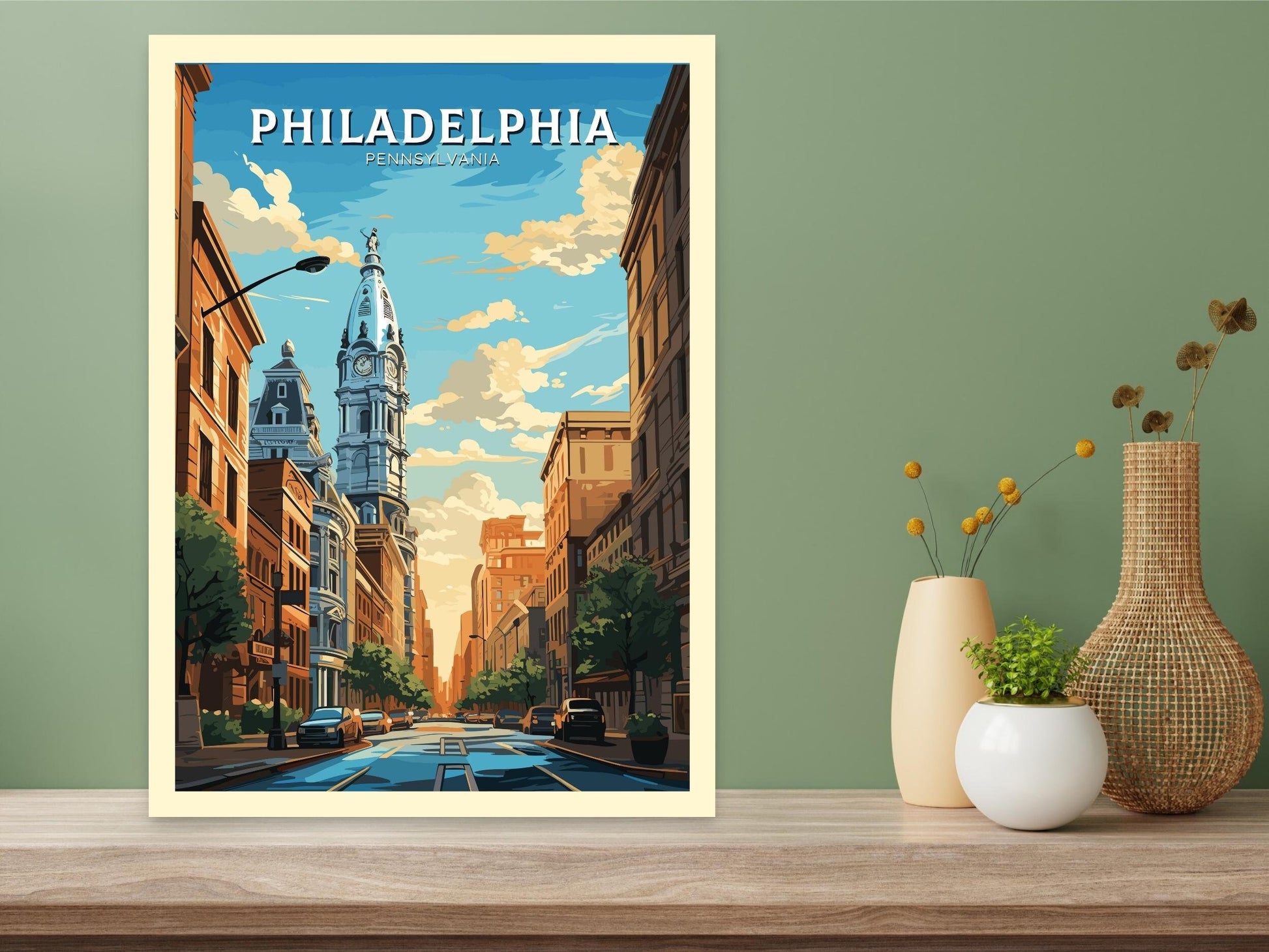 Disponible en téléchargement numérique et en tirage physique premium , cette affiche de voyage de Philadelphie est disponible dans une variété de formats, des formats de série A aux grands formats 30 x 40 pouces. Ses détails éclatants et sa conception de haute qualité en font un ajout remarquable à toute maison, bureau ou mur de galerie, et un cadeau idéal pour quiconque s'inspire du charme historique de la Pennsylvanie.