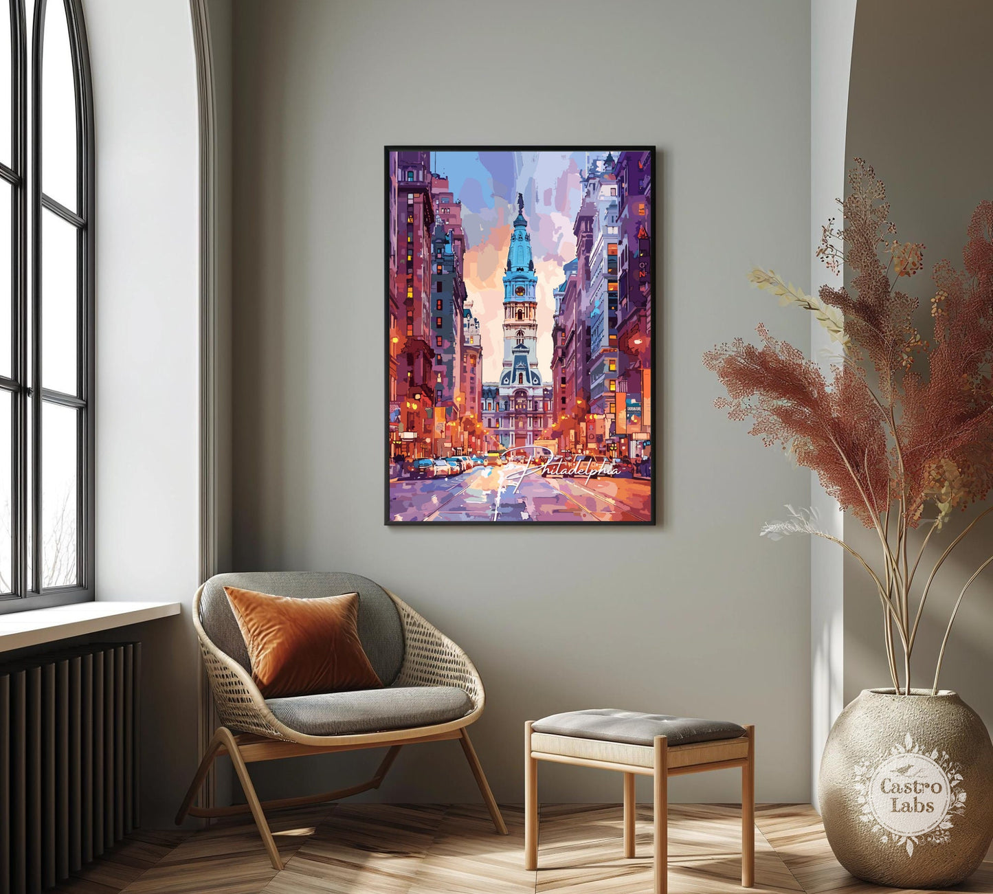 Faisant partie de notre collection d'affiches de voyage en Amérique du Nord , cette aquarelle de Philadelphie s'harmonise parfaitement avec d'autres paysages urbains, parcs nationaux et œuvres d'art inspirées du voyage. Exposez-la seule ou sur une décoration murale pour apporter le charme de Philadelphie à votre intérieur.