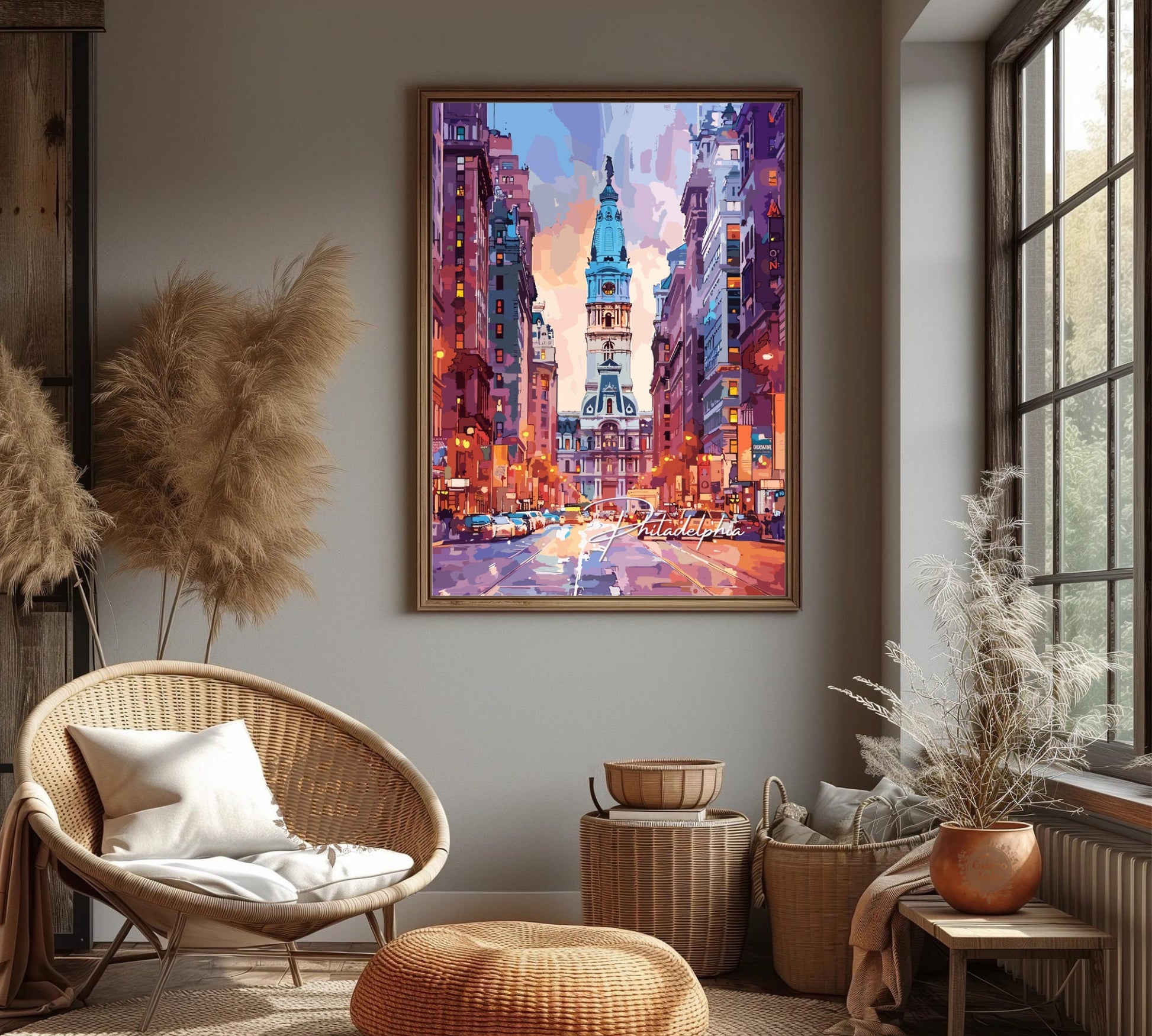 Apportez le charme historique de Philadelphie à vos murs avec notre affiche de voyage aquarelle de Philadelphie . Cette œuvre d'art de Pennsylvanie immortalise des monuments emblématiques comme la Liberty Bell et l'Independence Hall dans un style aquarelle délicat, idéal pour les passionnés d'histoire, de voyages et de paysages urbains artistiques.