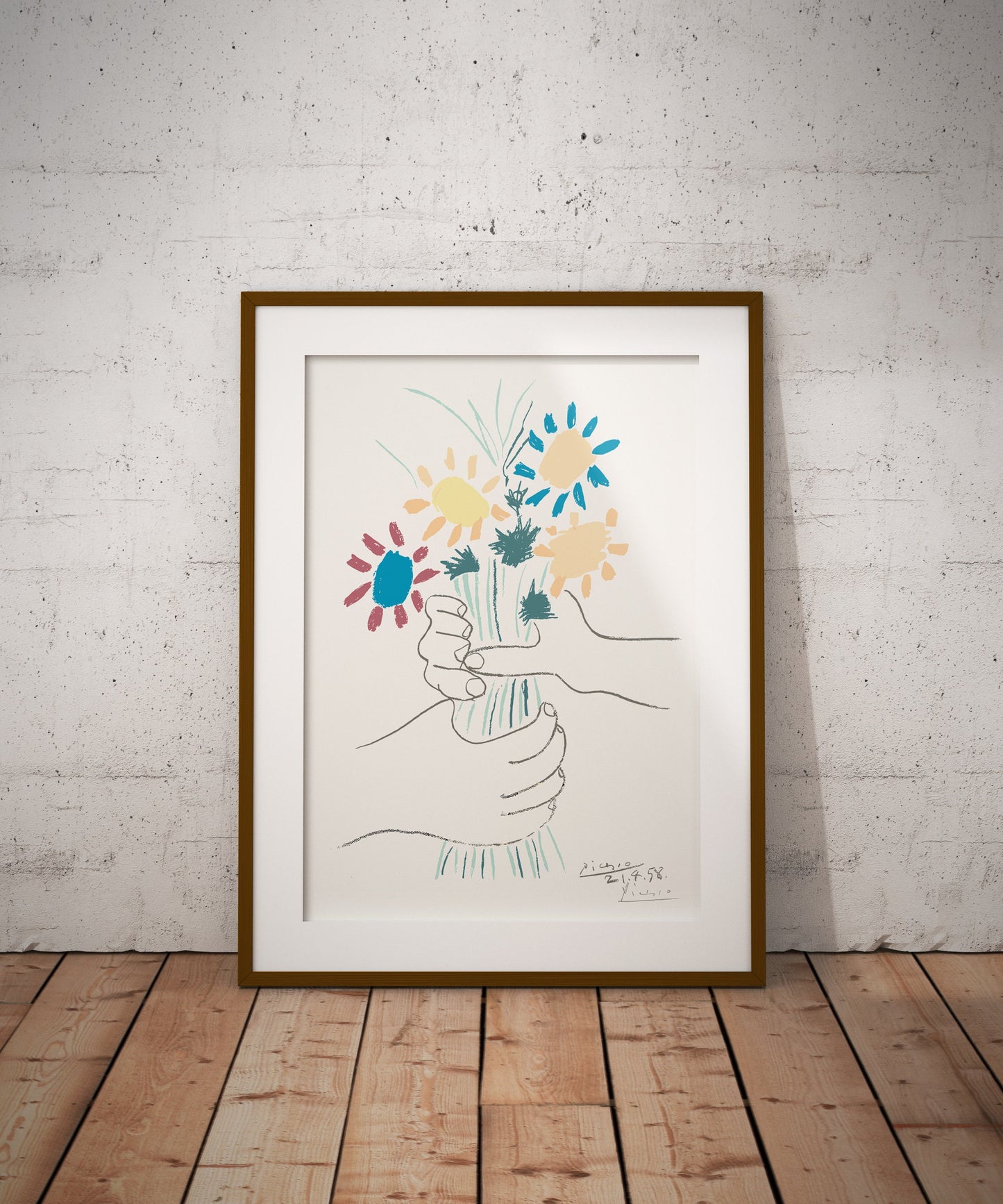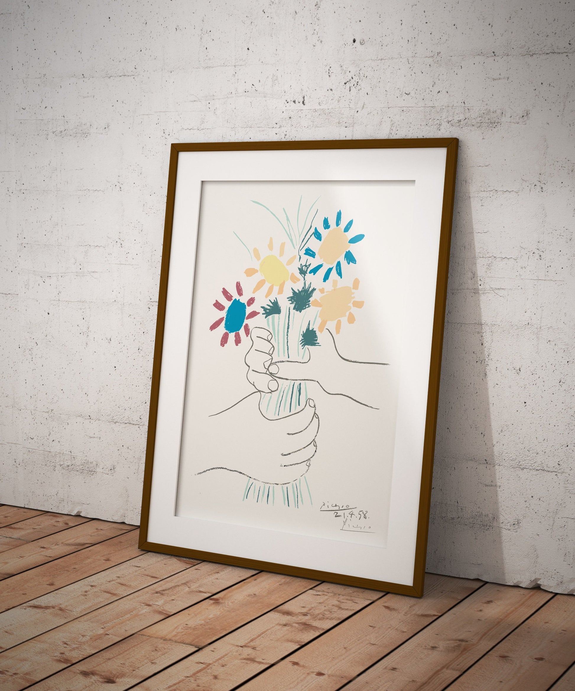 Célébrez le génie intemporel de Pablo Picasso avec notre affiche « Bouquet de fleurs », mettant en valeur l'un de ses dessins emblématiques. Cette œuvre exquise illustre la maîtrise de la forme et de la composition de Picasso, ce qui en fait un ajout captivant à la collection de tout amateur d'art.