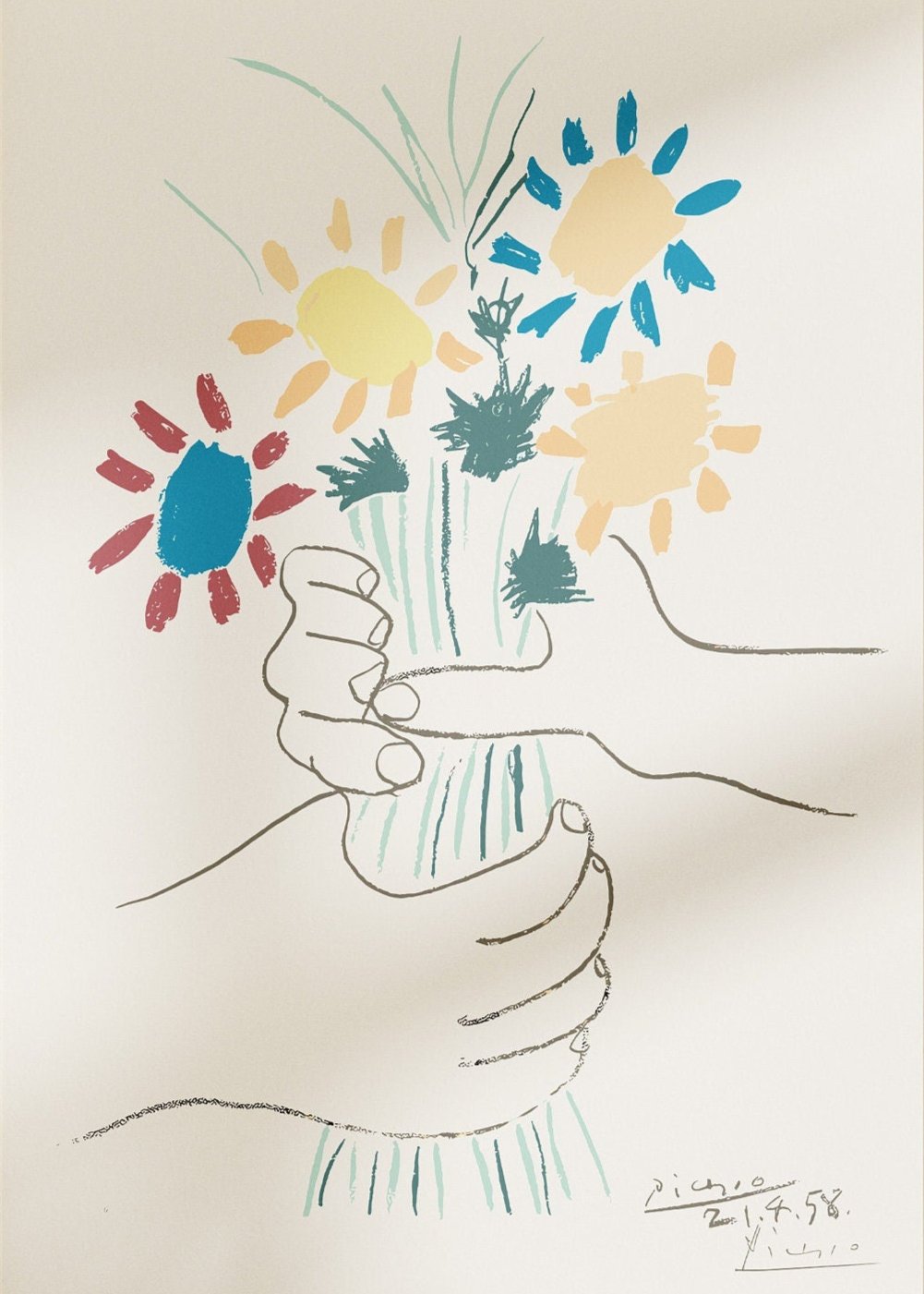 Affiche Bouquet de fleurs de Picasso - Croquis de Picasso, Art de Pablo Picasso
