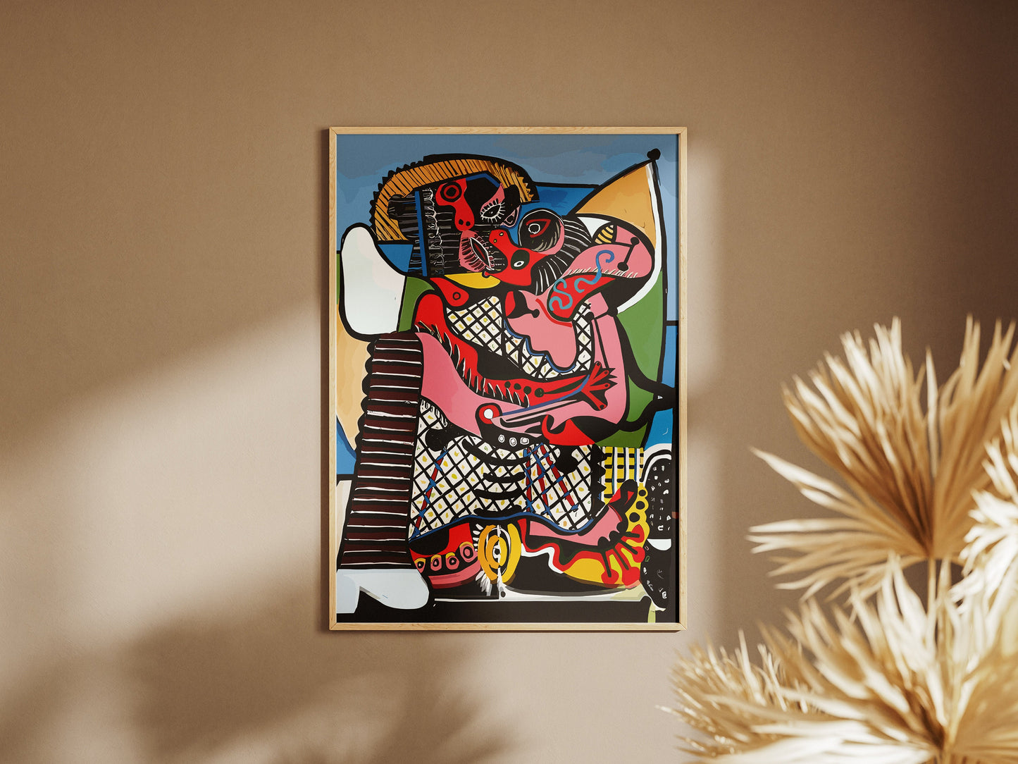 Plongez dans l'univers visionnaire de Pablo Picasso avec notre affiche captivante représentant « Le Baiser », créée en 1925 au cours de son illustre carrière. Cette œuvre emblématique illustre la maîtrise de l'art cubiste par Picasso, mettant en valeur son approche innovante de la forme et de la composition.