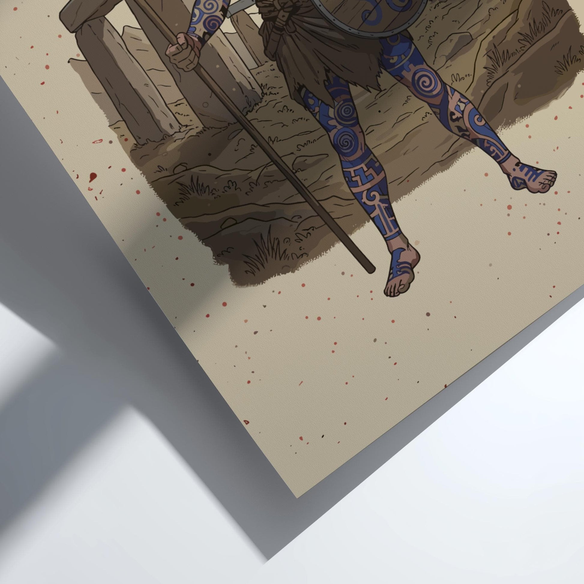 Impression d'art japonaise à l'encre de Chine, Guerrier picte – Affiche Sumi-e Soleil levant