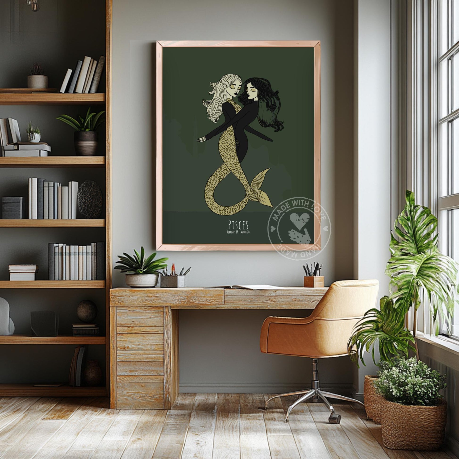 Notre affiche du signe astrologique Poissons s'intègre harmonieusement à votre intérieur grâce à son design onirique et aérien. Idéale pour les passionnés d'astrologie et les rêveurs Poissons, elle capture l'essence aquatique du signe avec des symboles fluides et des touches célestes. Que vous soyez un Poissons compatissant ou un passionné d'horoscope, cette affiche sera un ajout enchanteur à votre décoration.