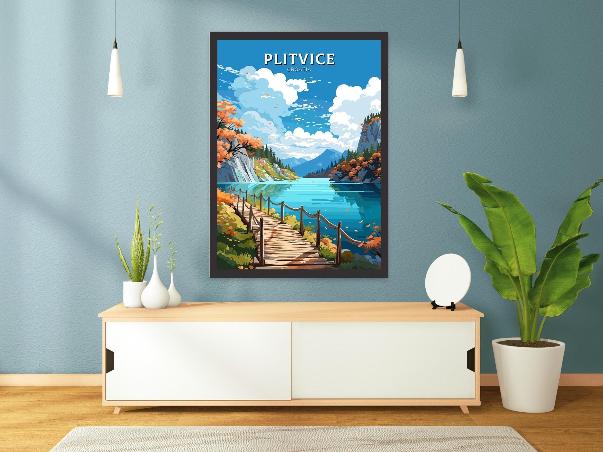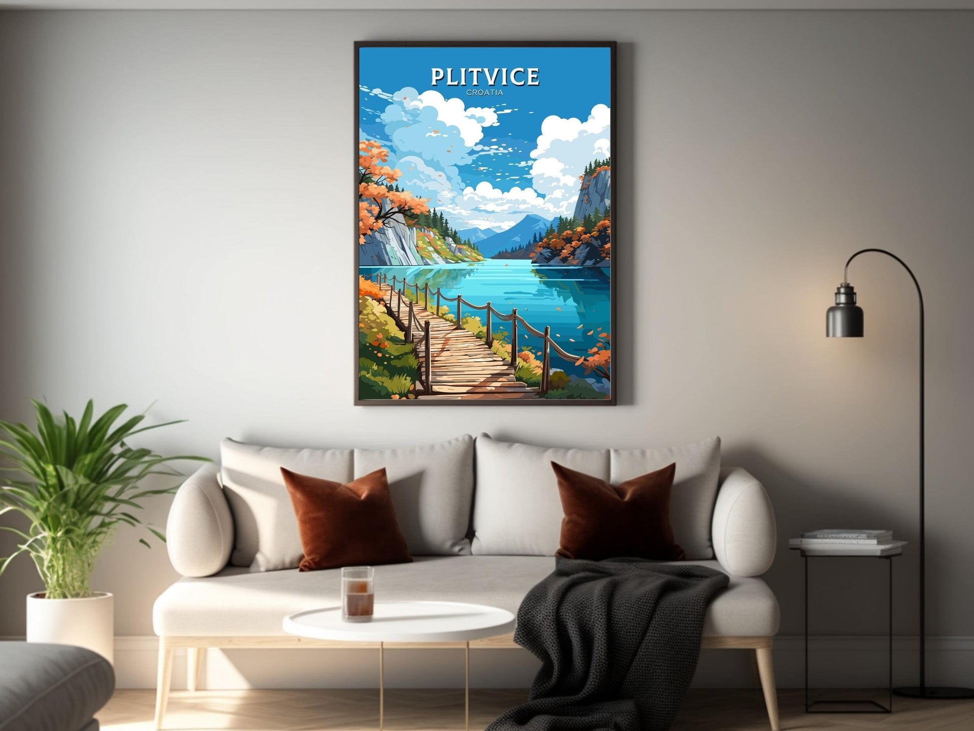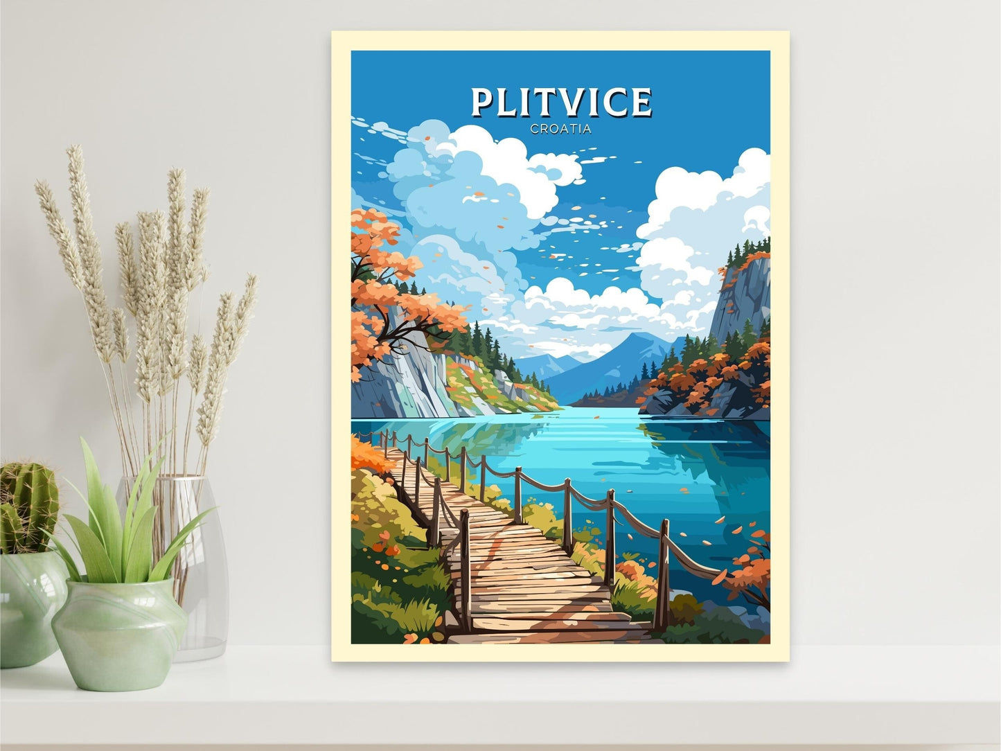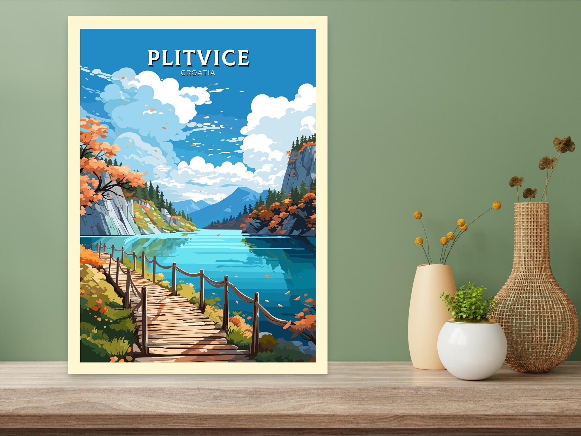 Capturez la beauté sereine de l'une des merveilles naturelles les plus enchanteresses d'Europe avec cette affiche de voyage de Plitvice , inspirée du célèbre parc national croate des lacs de Plitvice. Avec ses lacs cristallins, ses cascades et ses forêts luxuriantes, ce site classé au patrimoine mondial de l'UNESCO est une destination de rêve pour les amoureux de la nature. Cette œuvre d'art apportera sa magie à votre intérieur.