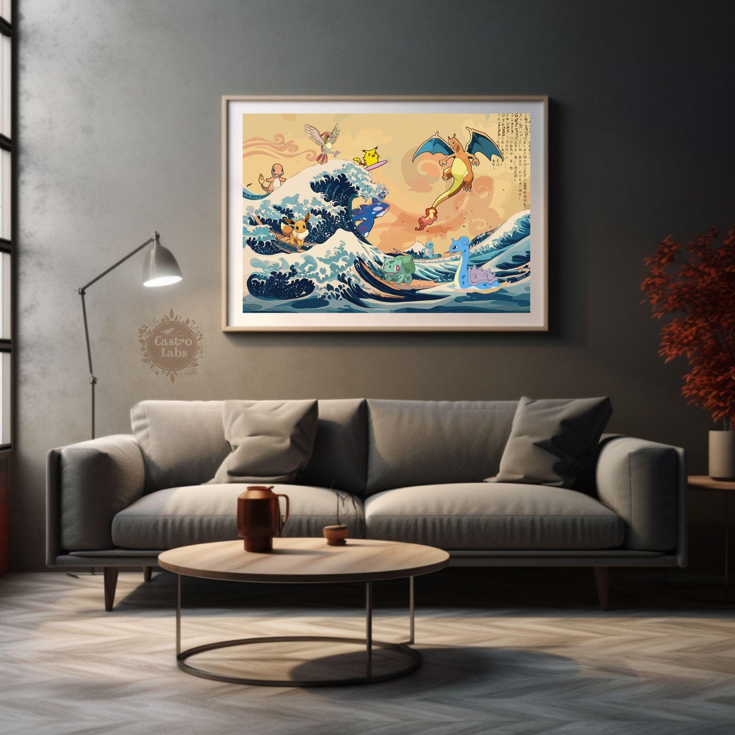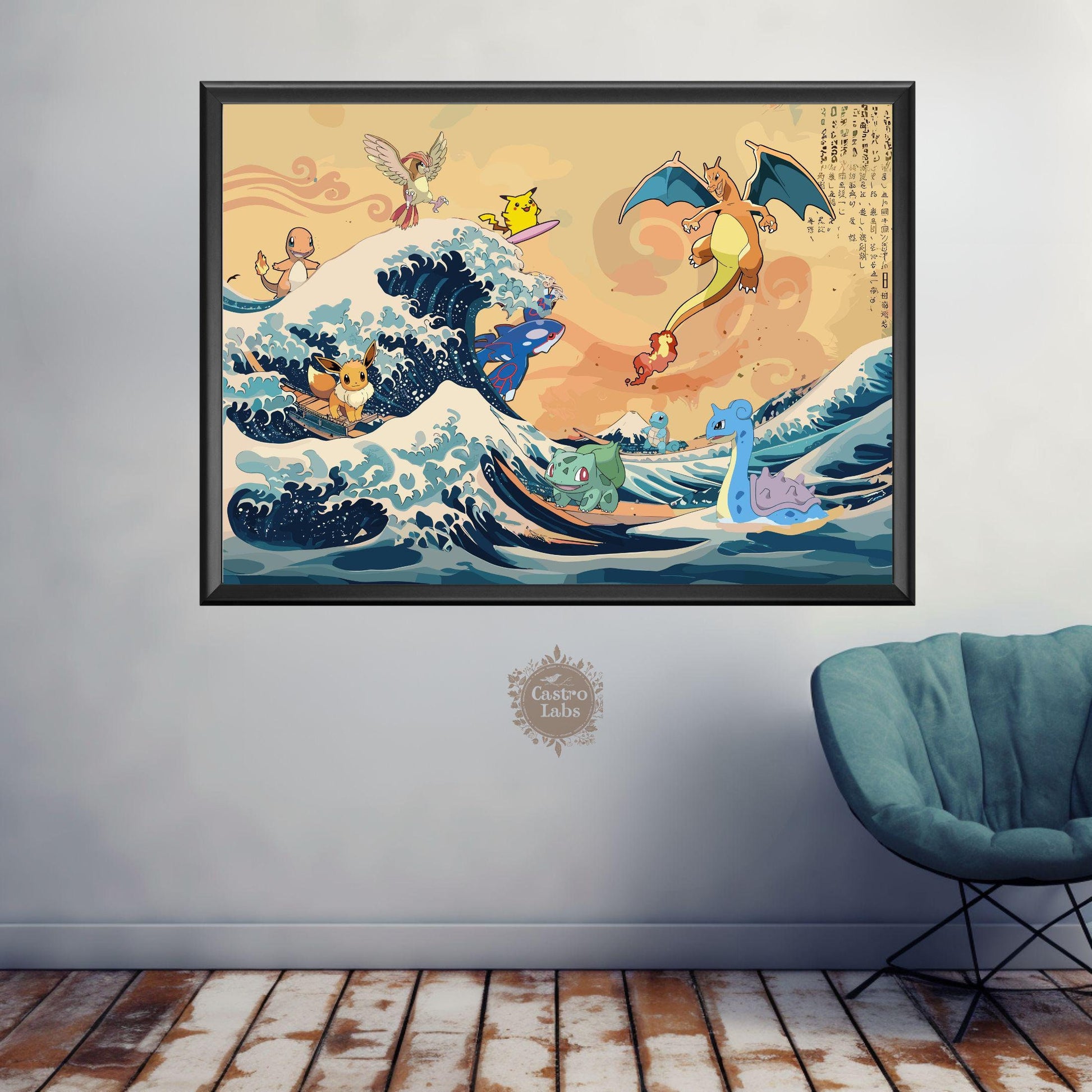 Affiche de paysage Pokémon sur la Grande Vague de Kanagawa