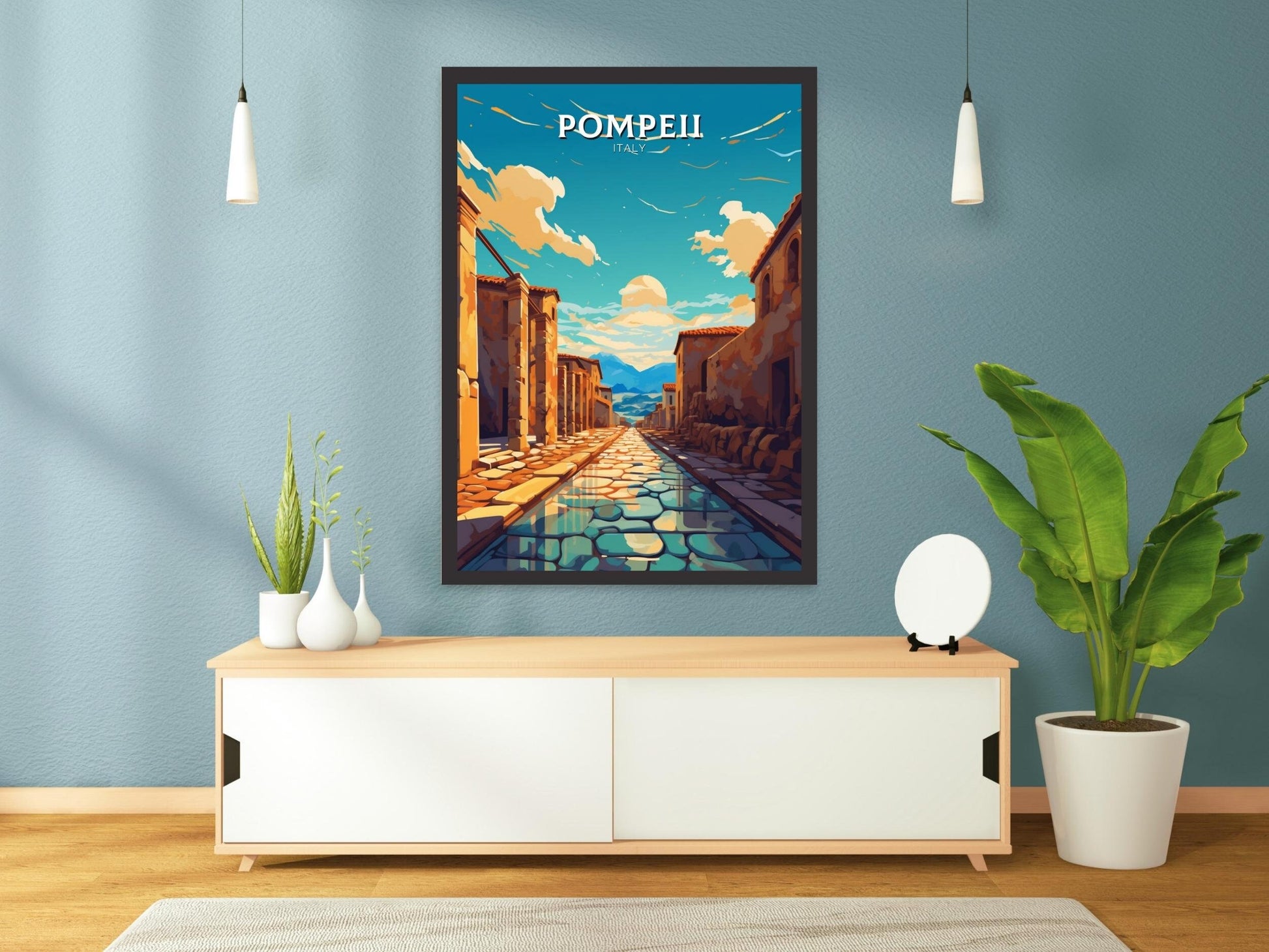 Faites entrer l'histoire antique chez vous avec cette affiche de voyage de Pompéi , un hommage captivant à l'un des sites les plus légendaires d'Italie. Cette œuvre capture la beauté envoûtante de cette cité romaine préservée, nichée à l'ombre du Vésuve. Des ruines emblématiques aux paisibles ruelles pavées, l'illustration évoque à la fois l'émerveillement et le respect pour une ville figée dans le temps.