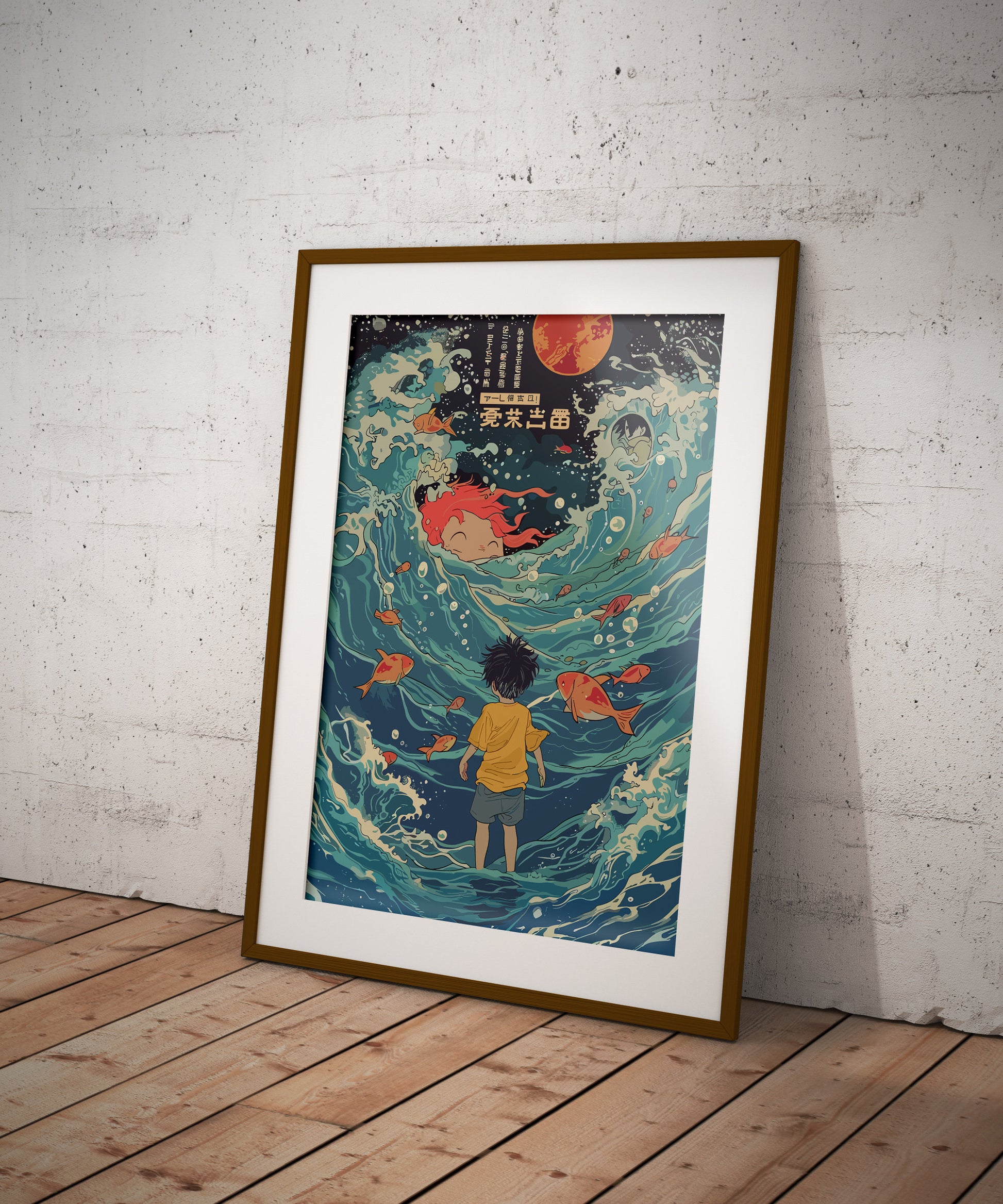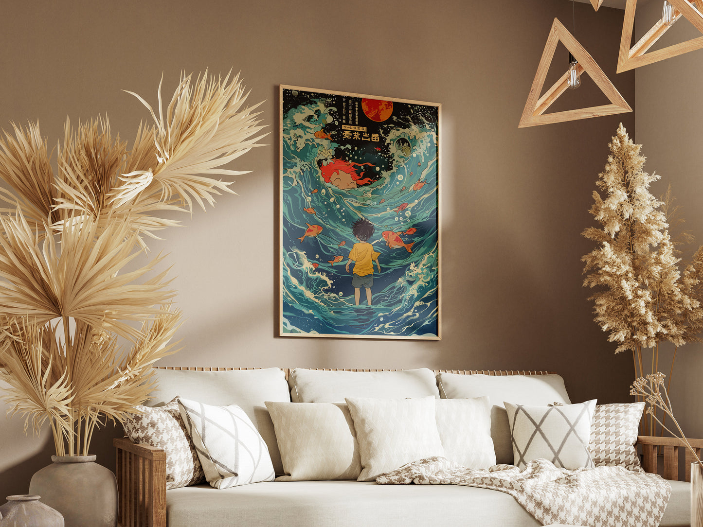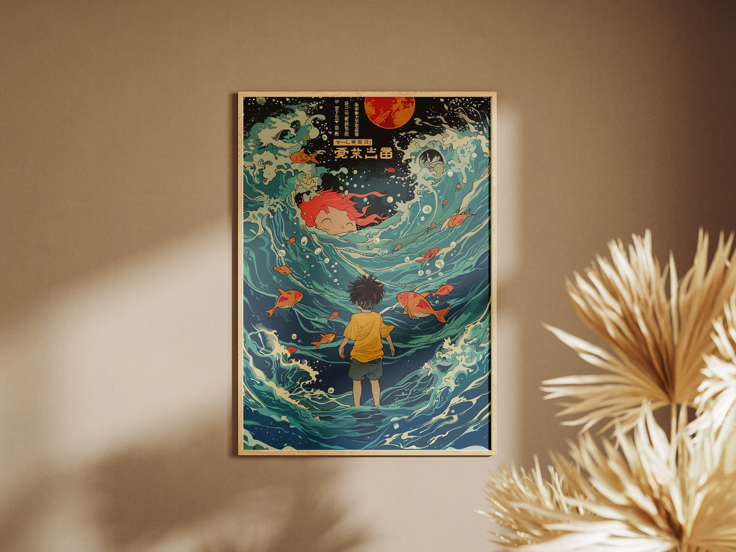 Affiche Ponyo – Art inspiré du Studio Ghibli pour les amoureux de l'océan et de la fantasy