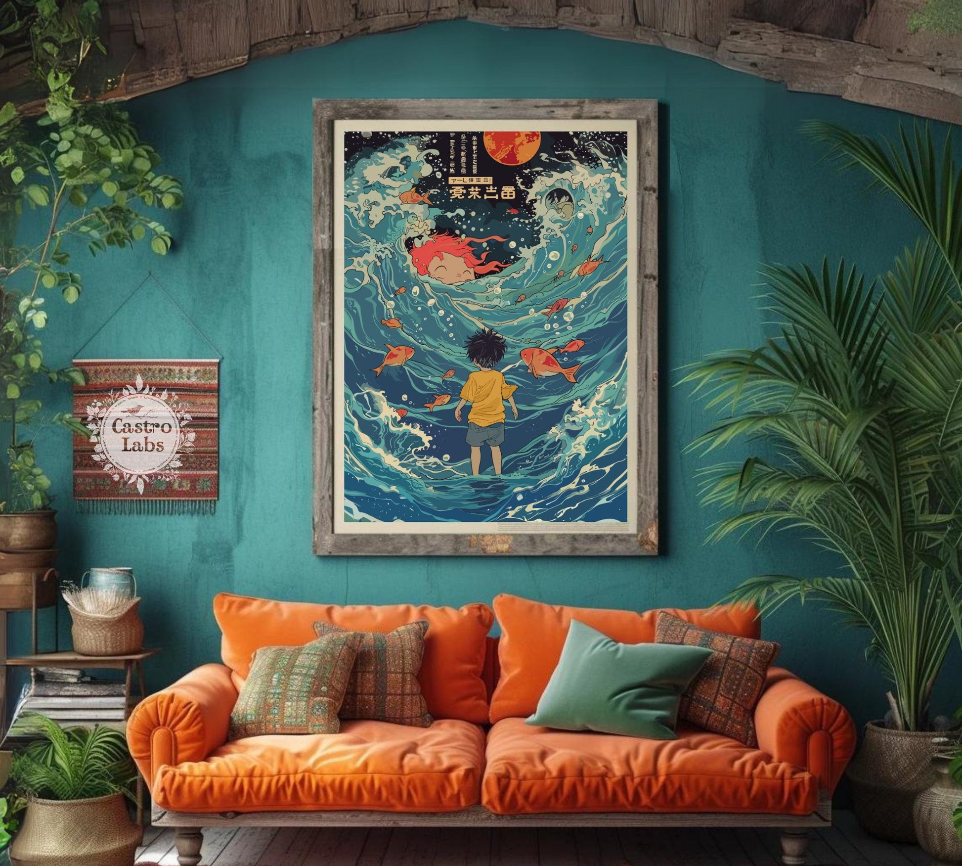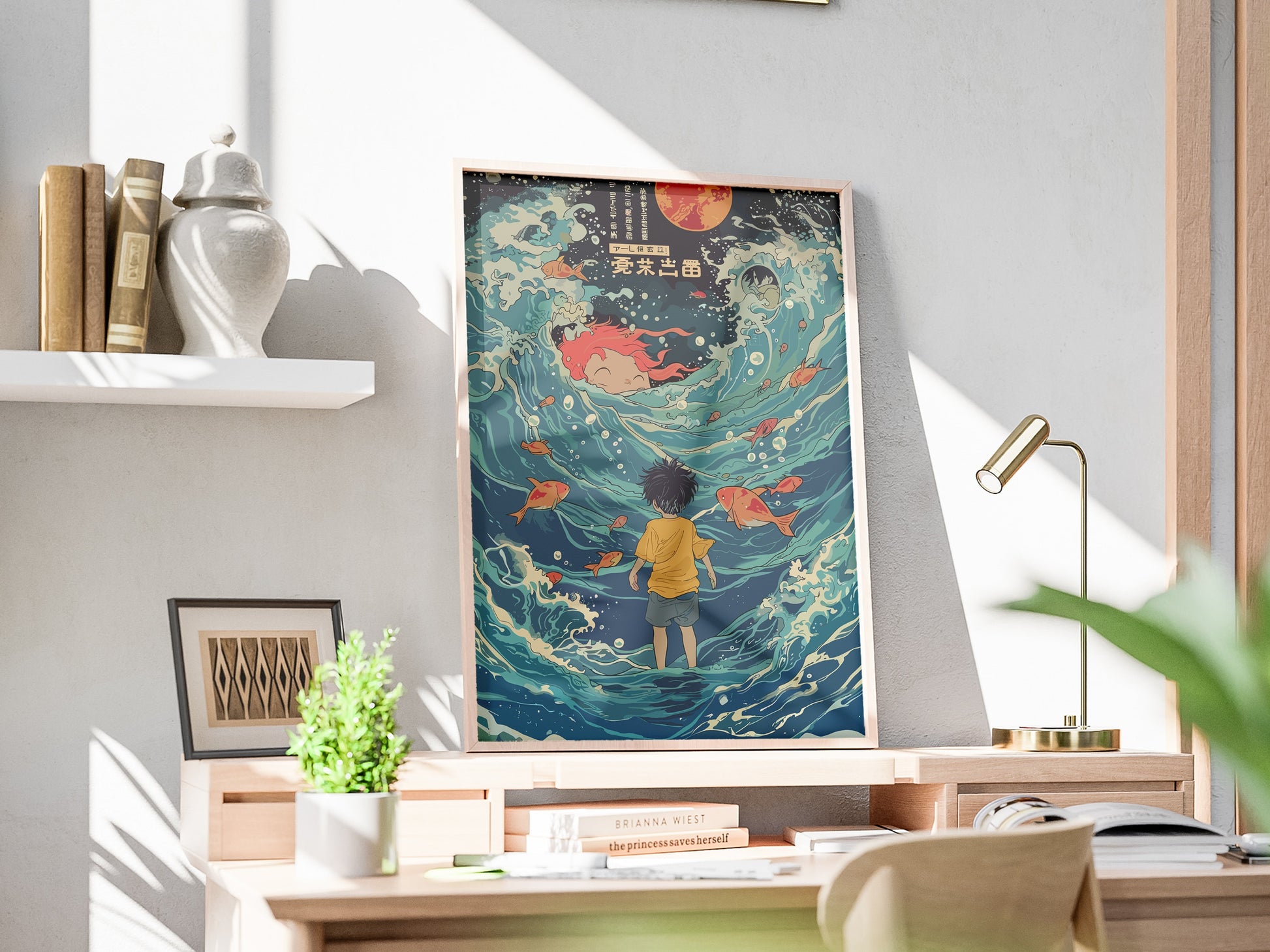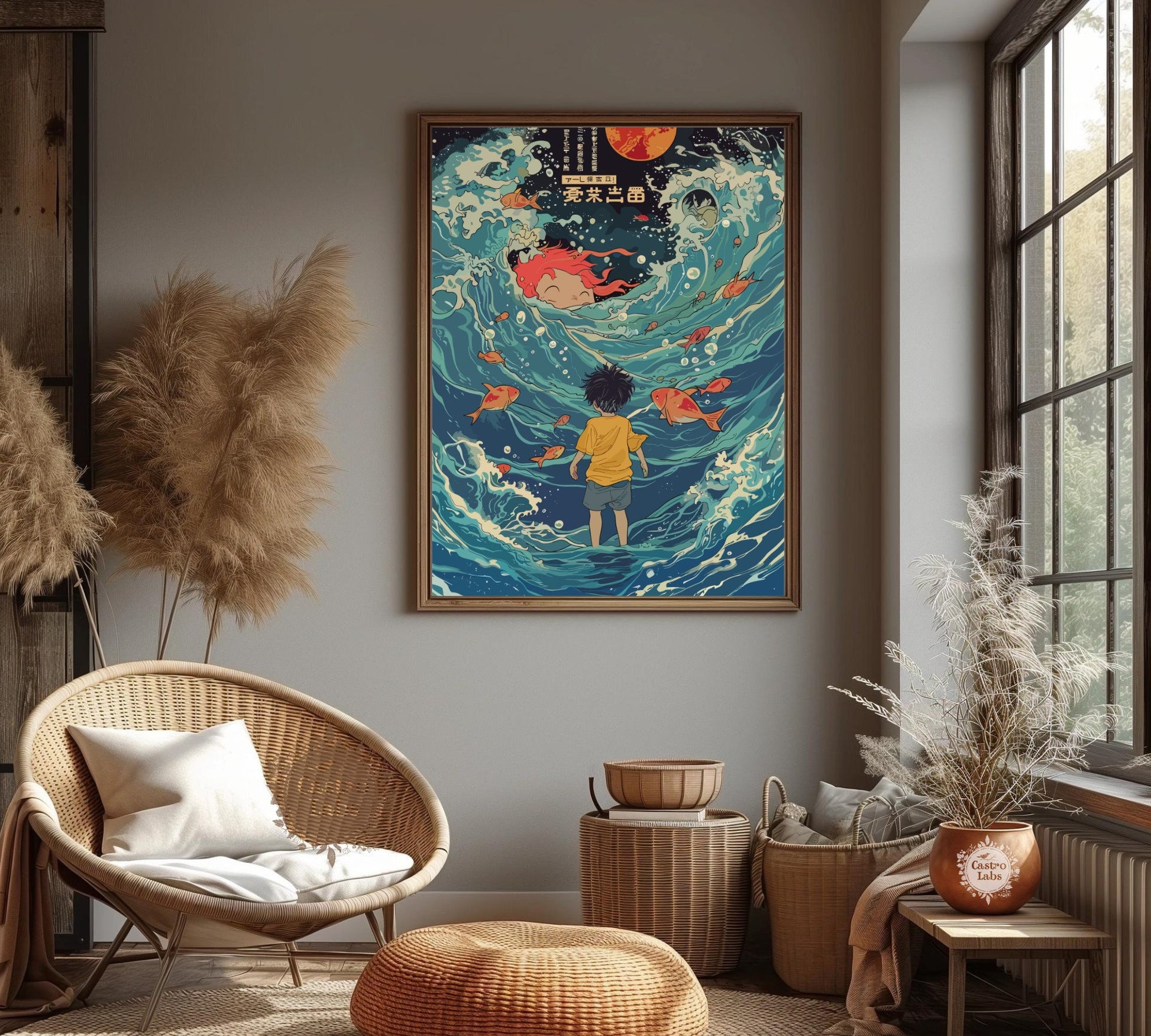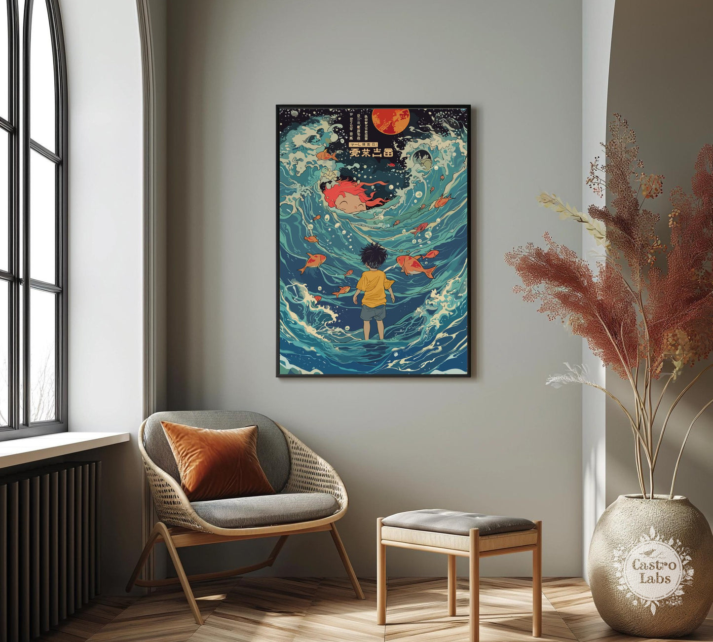 Affiche Ponyo – Art inspiré du Studio Ghibli pour les amoureux de l'océan et de la fantasy