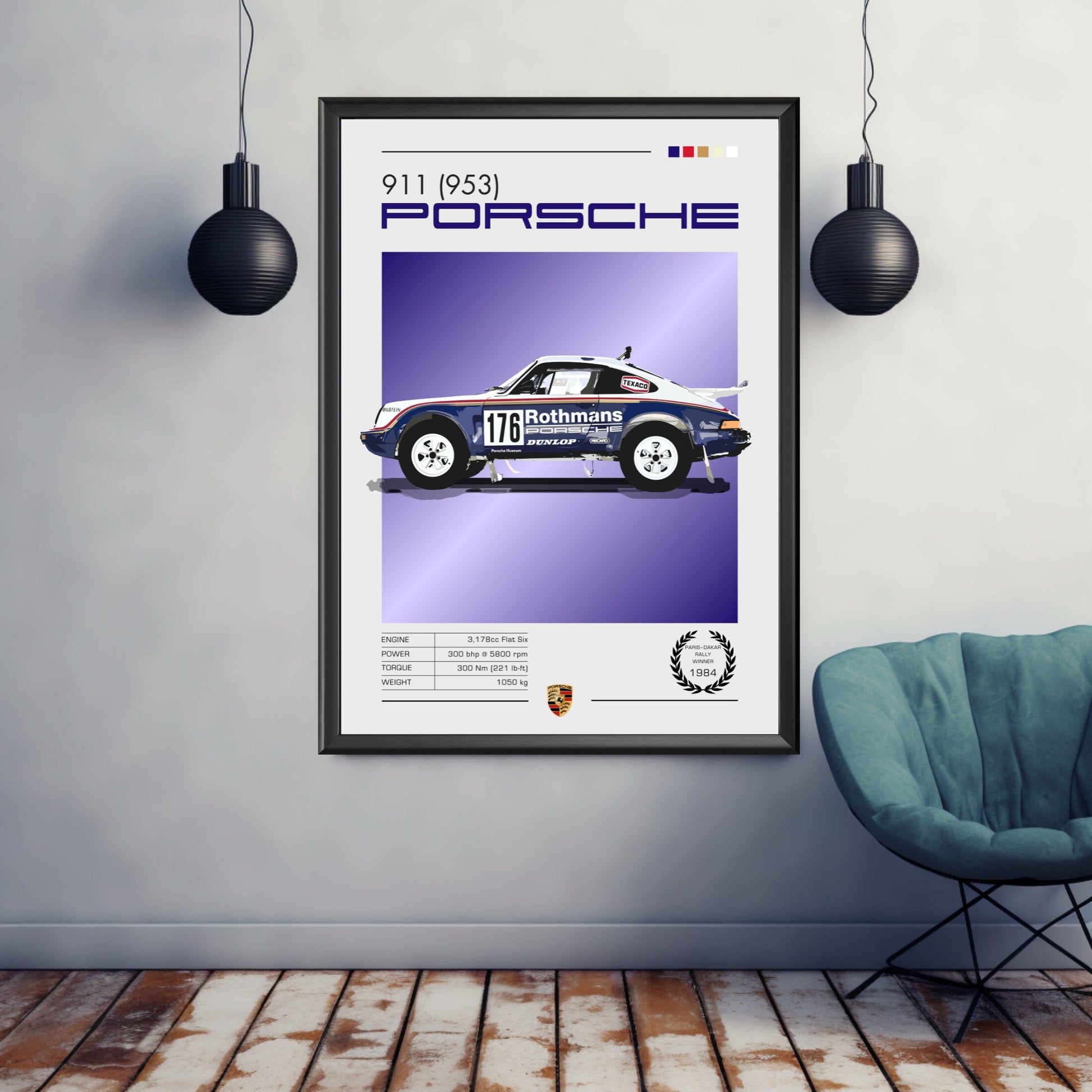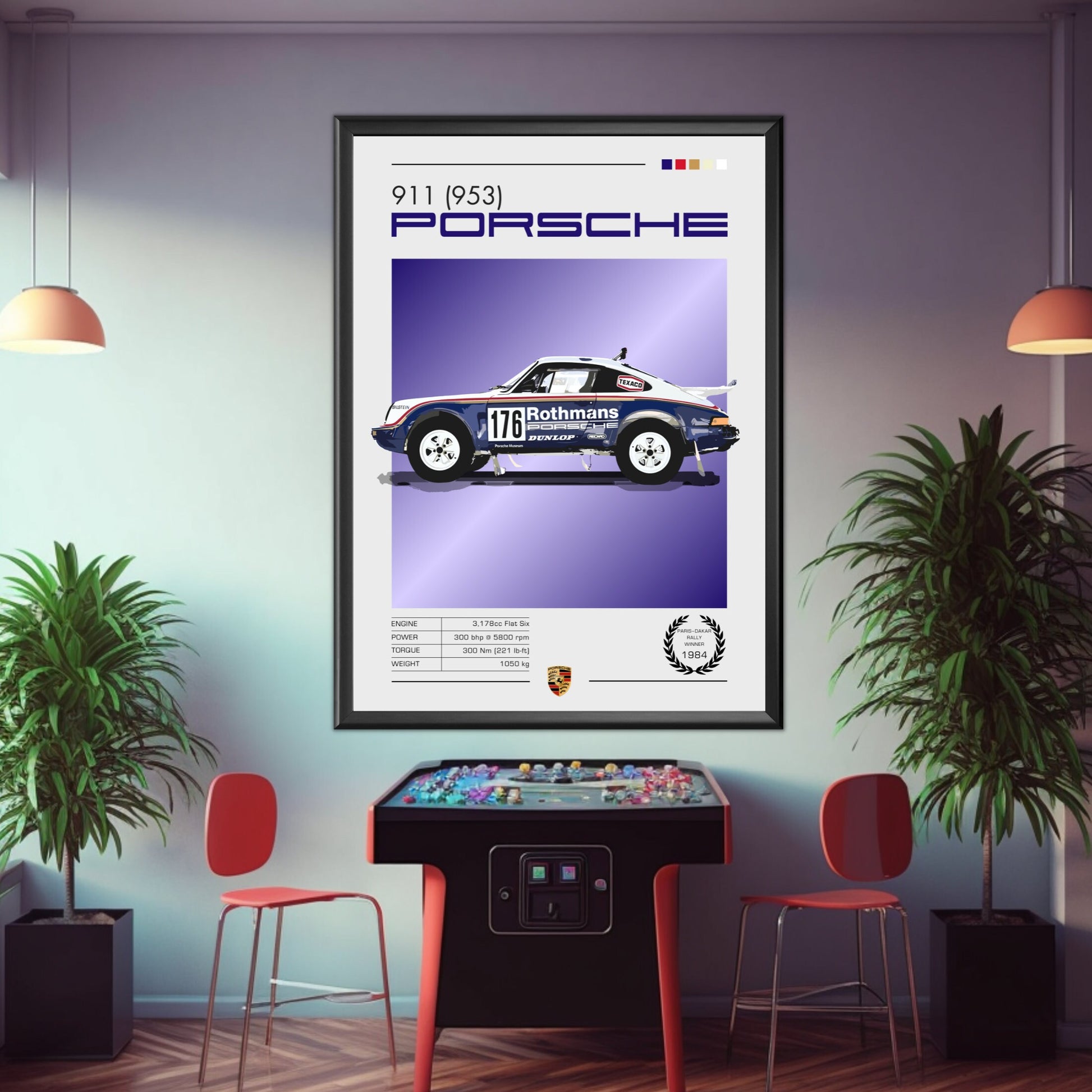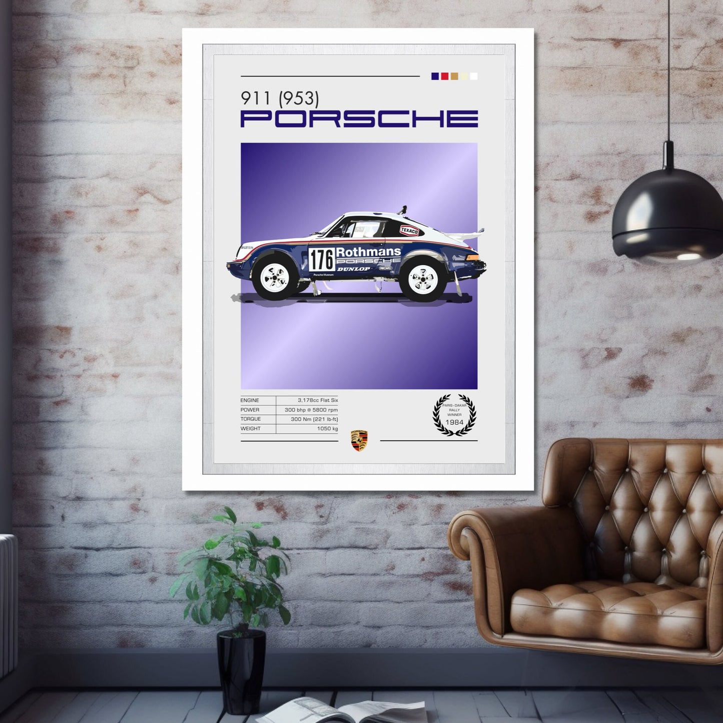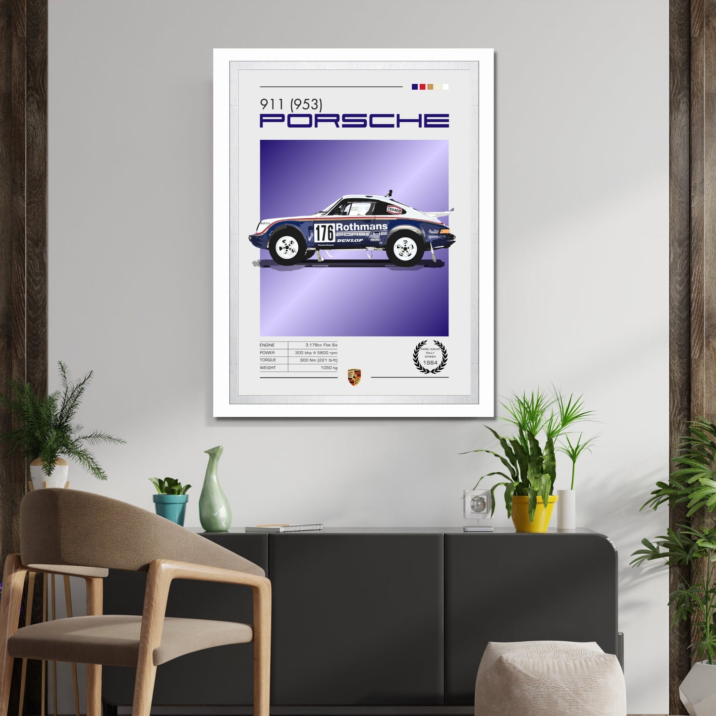 Affiche Porsche 911 953 – Décoration murale du rallye Dakar (vainqueur du Paris-Dakar 1984)