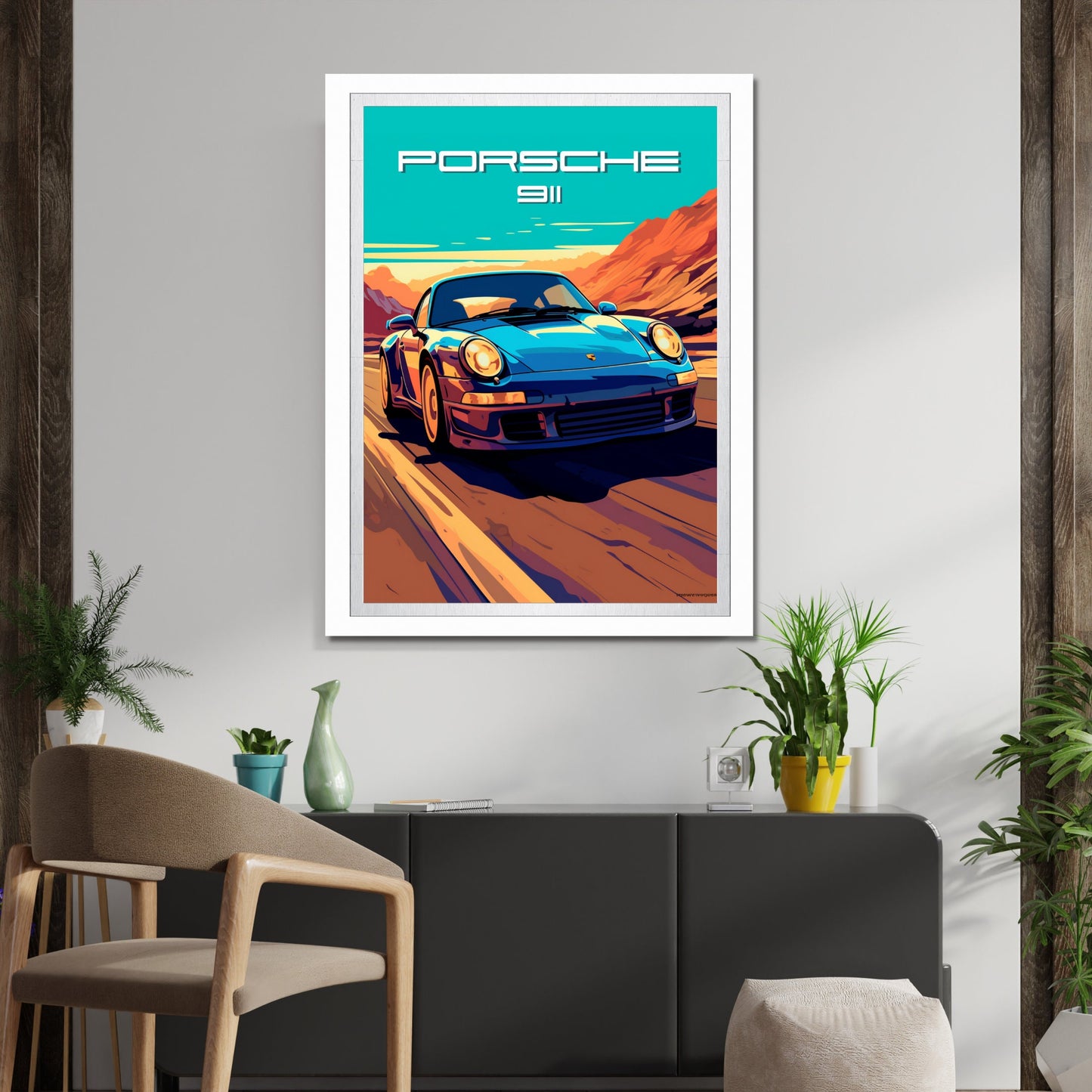 Affiche Porsche 911 – Décoration murale de voiture de sport allemande moderne des années 2010