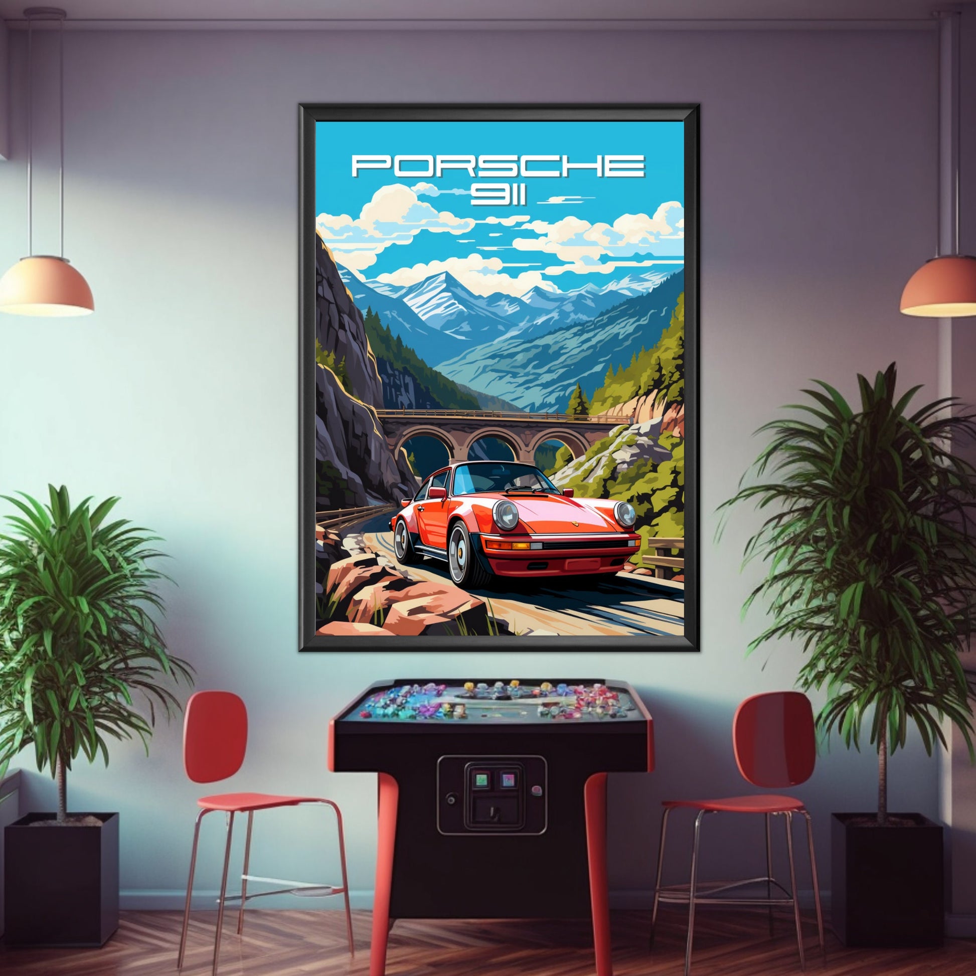 Décoration murale Porsche 911 – Impression de voiture de sport allemande classique des années 1980