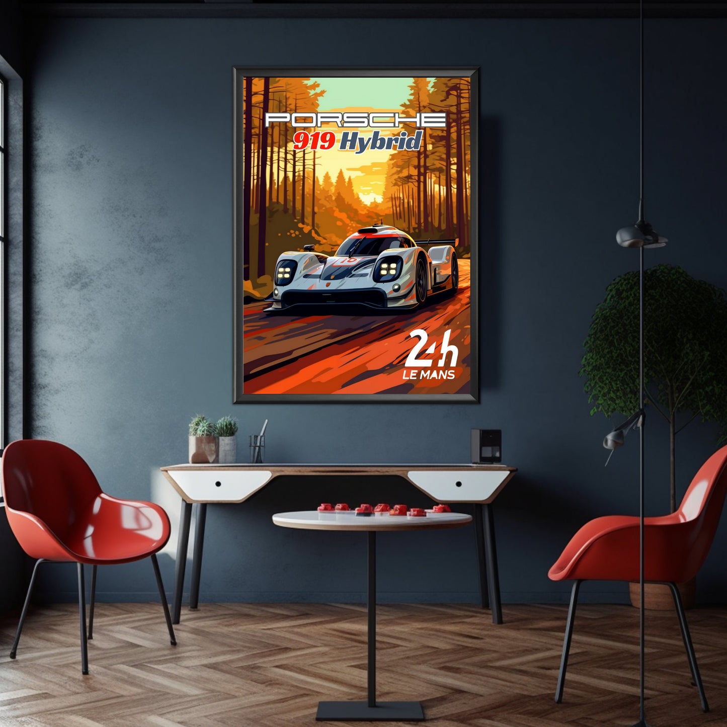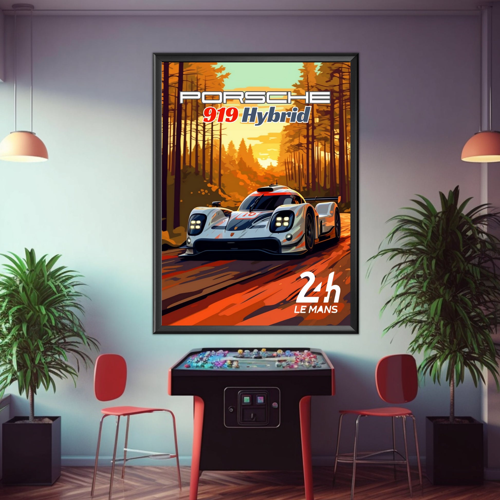 Affiche Porsche 919 Hybride – Prototype LMP1 victorieux au Mans