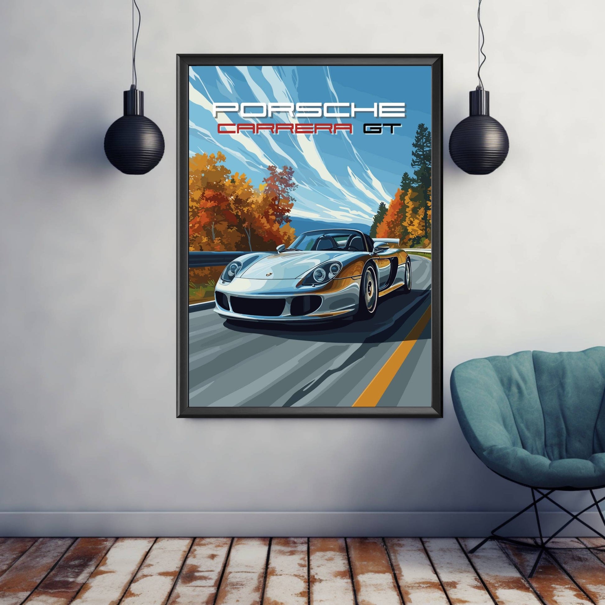 Impression Porsche Carrera GT – Décoration murale de supercar allemande haute performance des années 2000