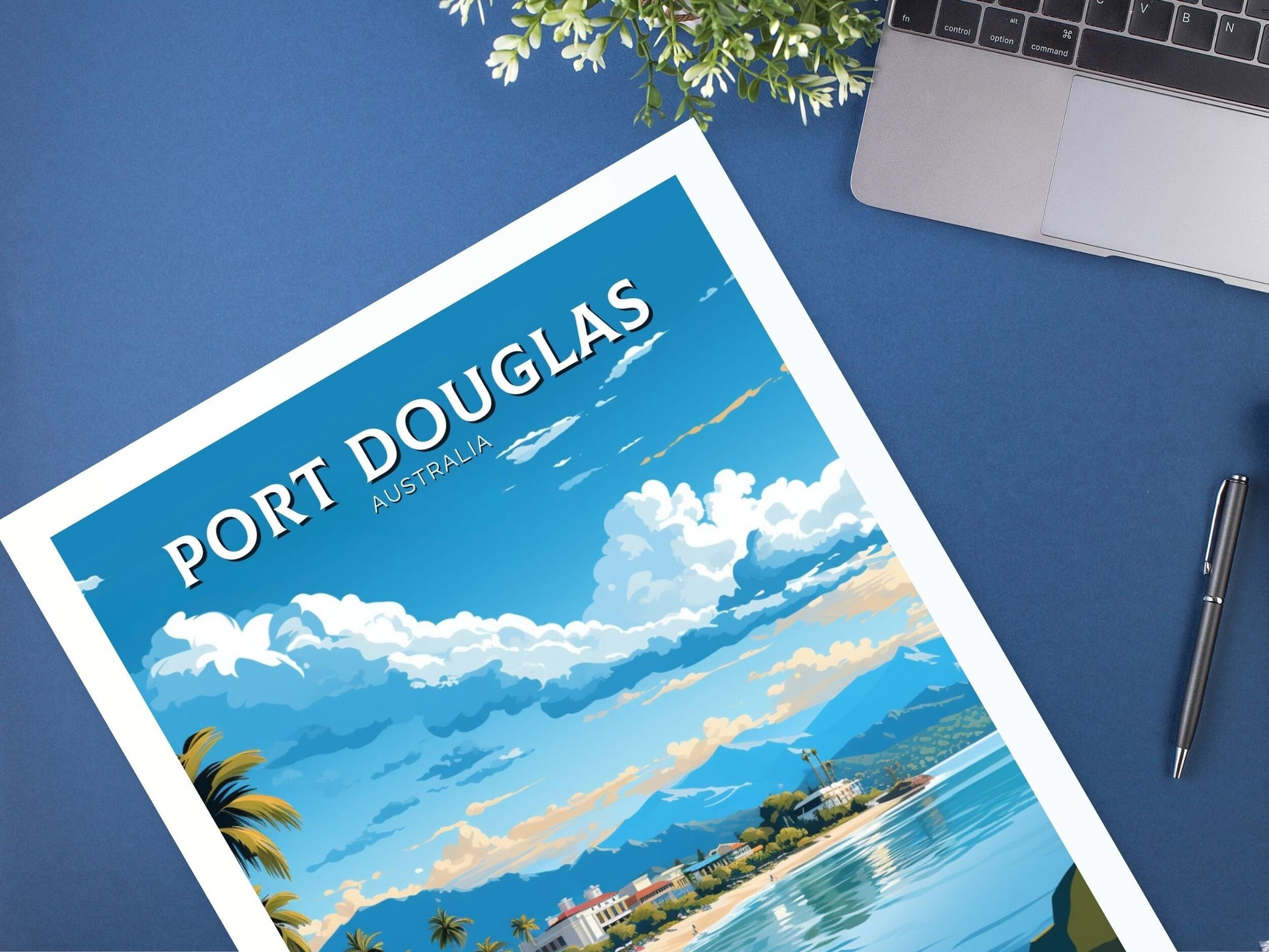 Intégrez le charme tropical de Port Douglas, dans le Queensland, à votre intérieur grâce à cette affiche de voyage vibrante. Mettant en vedette des plages immaculées, des forêts tropicales luxuriantes et la porte d'entrée de la Grande Barrière de Corail, cette œuvre capture la beauté sereine et l'esprit aventureux de cette destination australienne prisée.