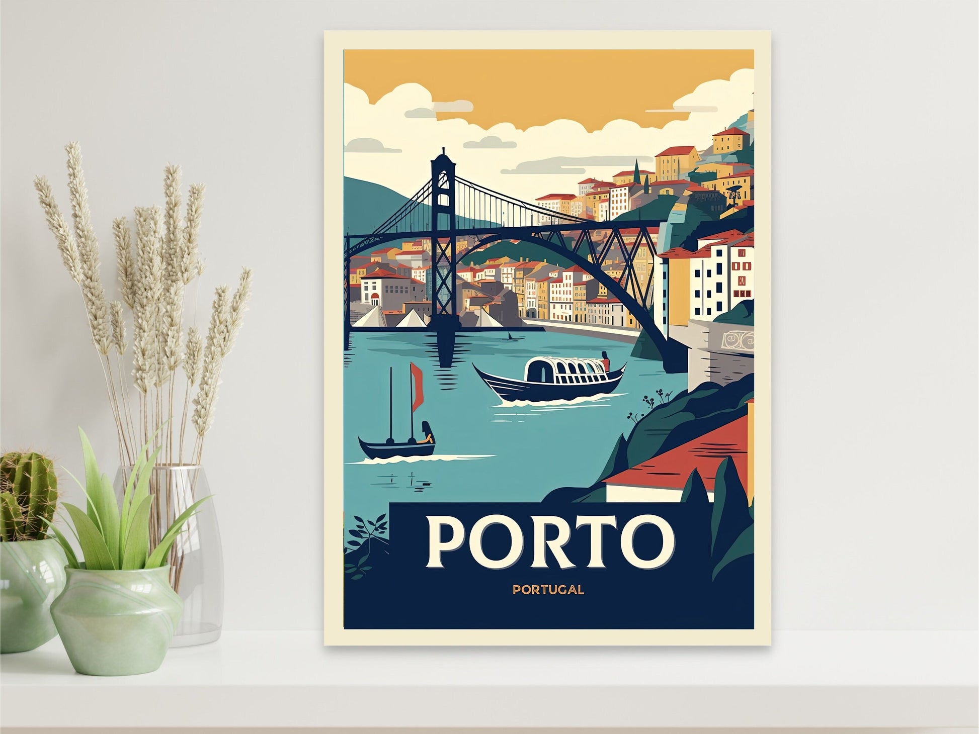 Imprimée professionnellement avec des encres d'archive de haute qualité sur du papier mat haut de gamme, cette œuvre garantit une durabilité et des détails durables. Que vous l'exposiez dans votre salon, votre entrée ou votre studio, l'œuvre d'art de voyage rétro Porto suscitera à coup sûr les conversations et l'envie de voyager.