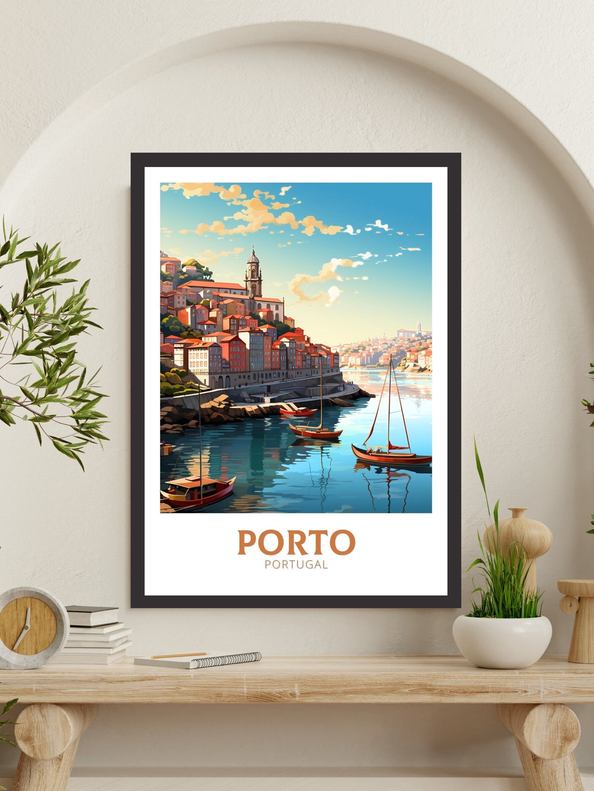 Célébrez l'esprit dynamique et la beauté intemporelle du quartier de Ribeira à Porto avec cette superbe décoration murale de voyage . Le quartier de Ribeira, perché le long du Douro, est l'un des plus emblématiques et historiques du Portugal, célèbre pour ses façades colorées, ses quais animés et son ambiance charmante au bord du fleuve. Cette décoration murale capture l'essence même des rues animées de Ribeira et son mélange harmonieux de charme d'antan et de vitalité moderne, ce qui en fait un ajout exceptionnel à tout espace de vie, qu'il soit à la maison ou au bureau.