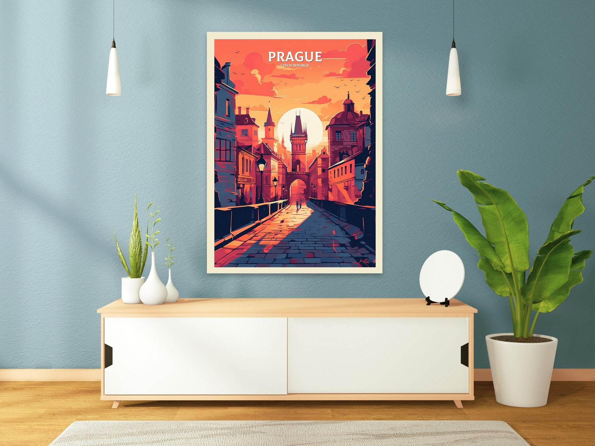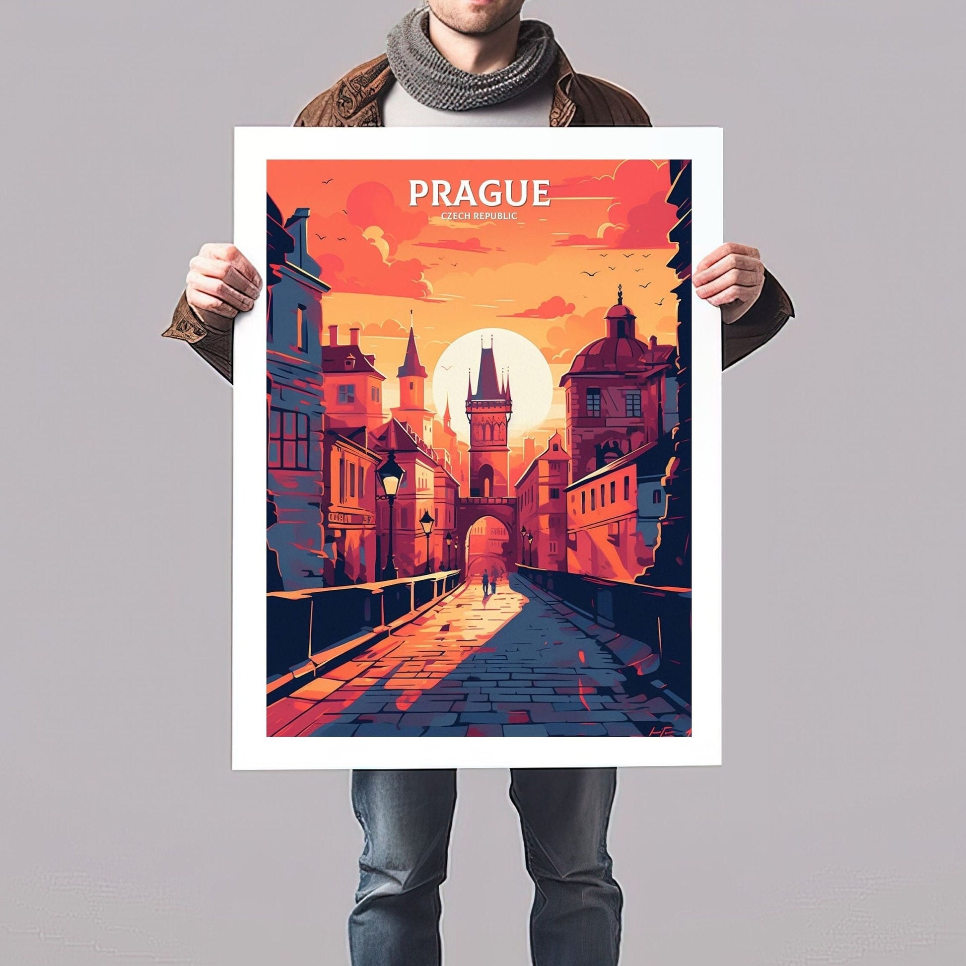 Imprimée avec des encres de première qualité sur du papier de haute qualité, cette affiche de voyage Prague – République tchèque est idéale pour embellir un espace de vie, un bureau ou un atelier de création. C'est aussi un cadeau attentionné pour les voyageurs, les passionnés d'histoire ou toute personne inspirée par la beauté intemporelle de Prague.