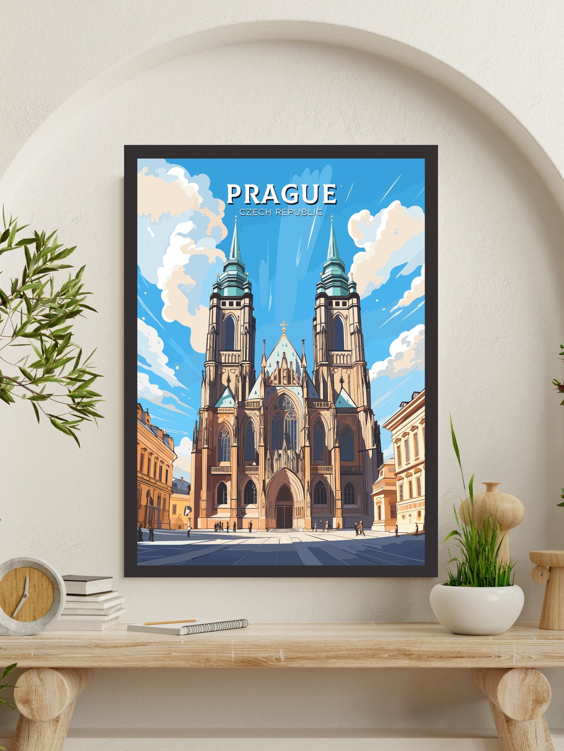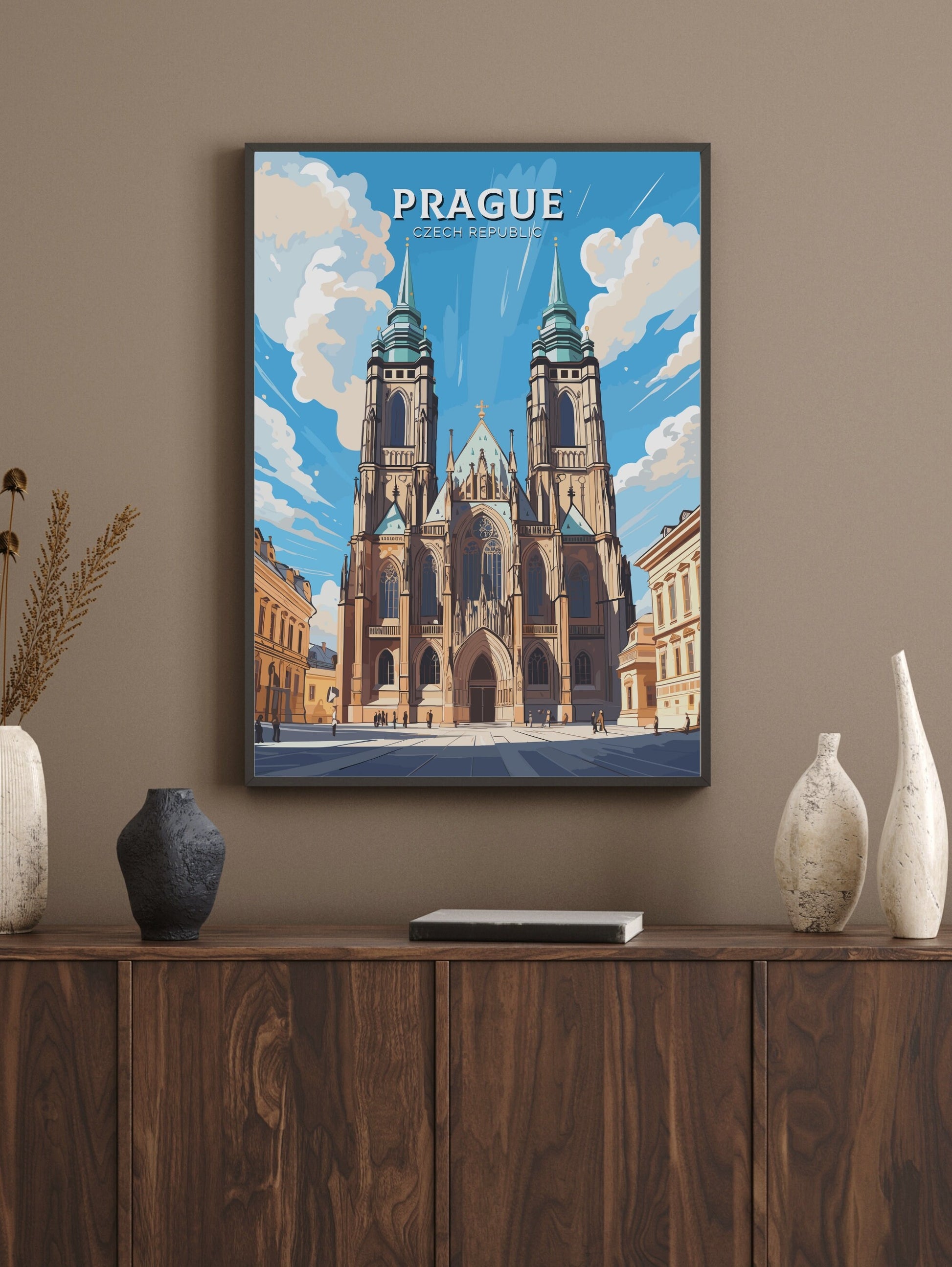 Insufflez l'esprit enchanteur de Prague dans votre intérieur avec cette élégante affiche de voyage . Célébrant la richesse culturelle, l'architecture époustouflante et le charme historique de la capitale tchèque, cette œuvre capture les éléments clés qui font de Prague l'une des destinations les plus prisées d'Europe. Des ruelles pavées sinueuses à la silhouette spectaculaire ponctué de flèches gothiques, l'affiche reflète le charme intemporel et le patrimoine artistique de la ville.
