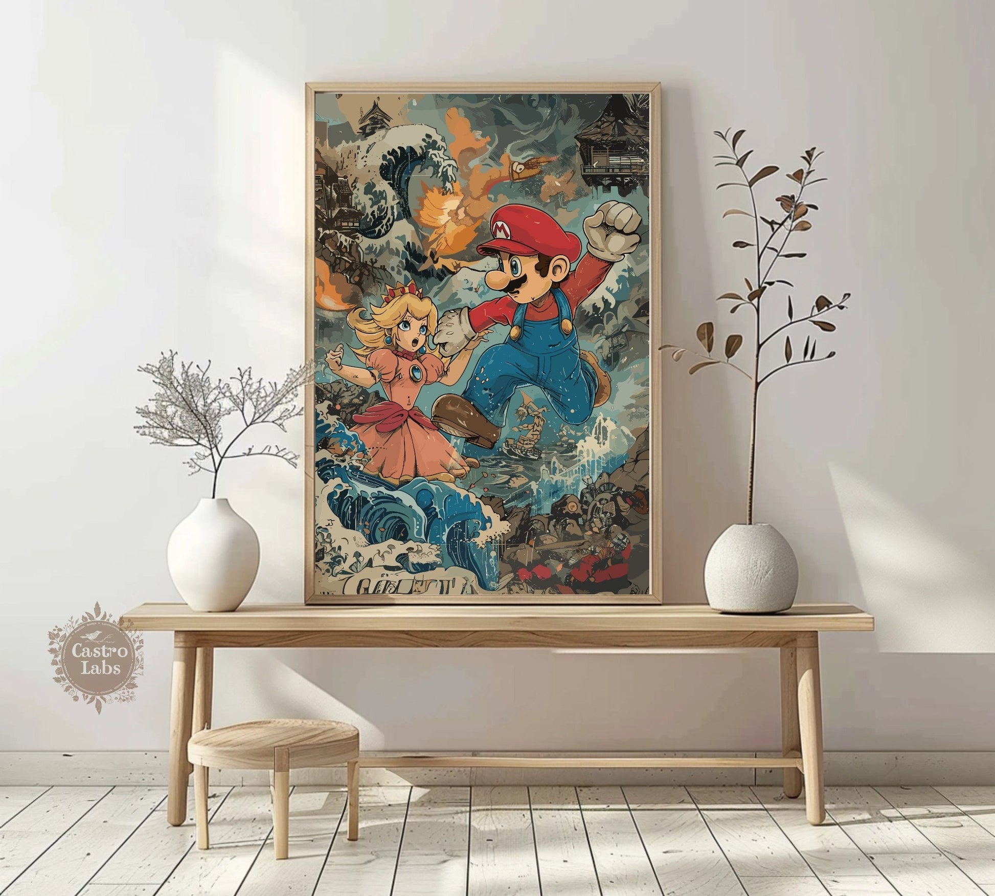 Imprimée sur un papier durable de haute qualité, l' affiche Princesse Peach et les Aventures de Mario offre des détails nets et des couleurs vives qui en font une pièce remarquable pour les collectionneurs, les passionnés de jeux vidéo et les fans d'anime japonais. Exposez-la seule ou dans une galerie murale de jeux rétro pour un impact visuel maximal.