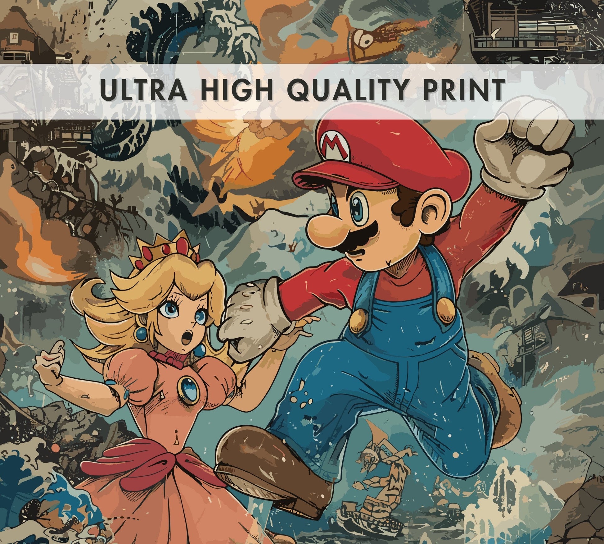 Apportez la nostalgie des classiques Nintendo à vos murs avec l' affiche Princesse Peach et Mario Adventures . Cette affiche de style japonais met en scène le duo adoré, Mario et la Princesse Peach, dans des scènes vibrantes inspirées des animes, parfaites pour les chambres, les salles de jeux ou les espaces dédiés à la culture pop. Son design coloré et dynamique célèbre le charme et l'aventure des histoires classiques de Mario.