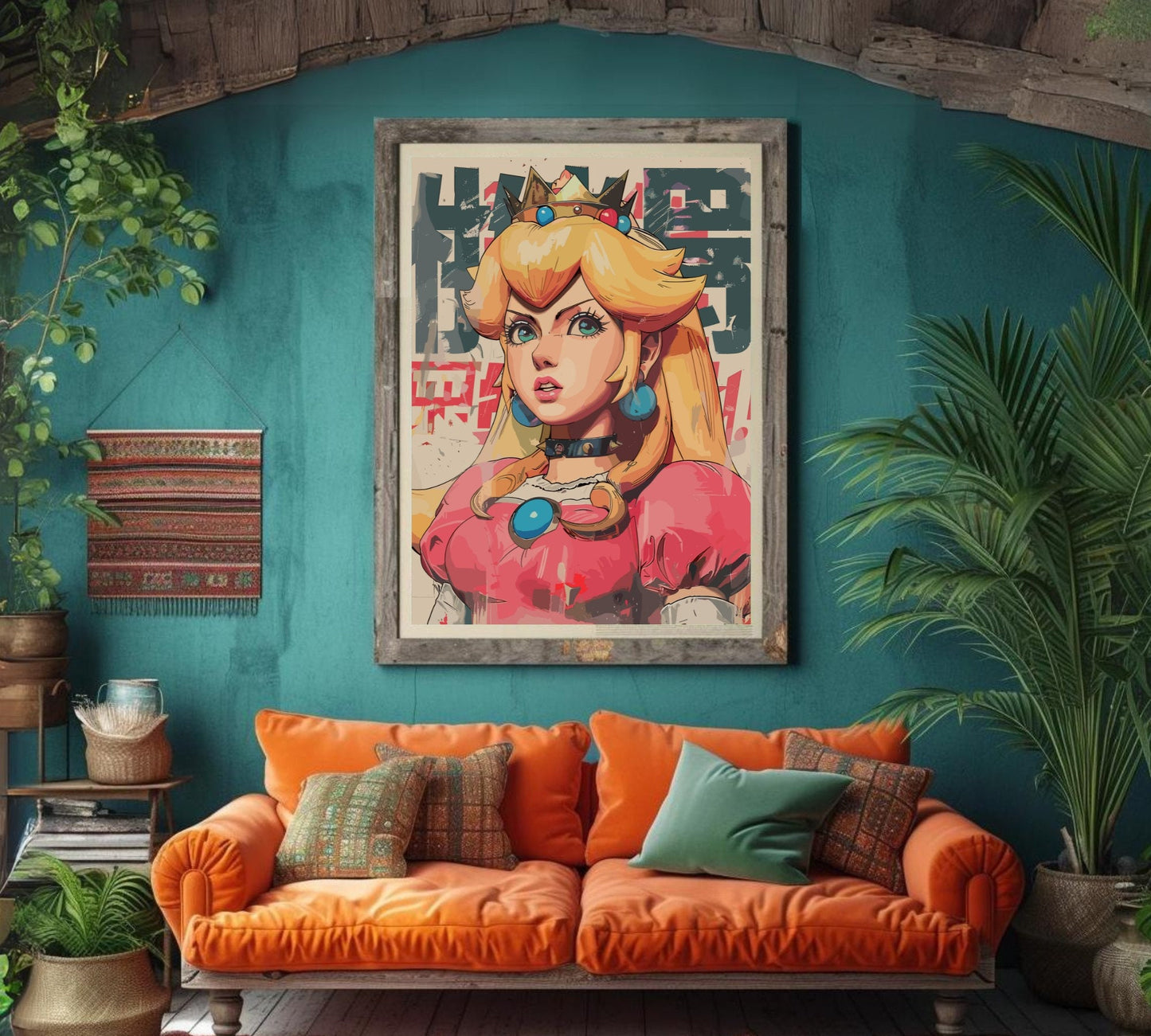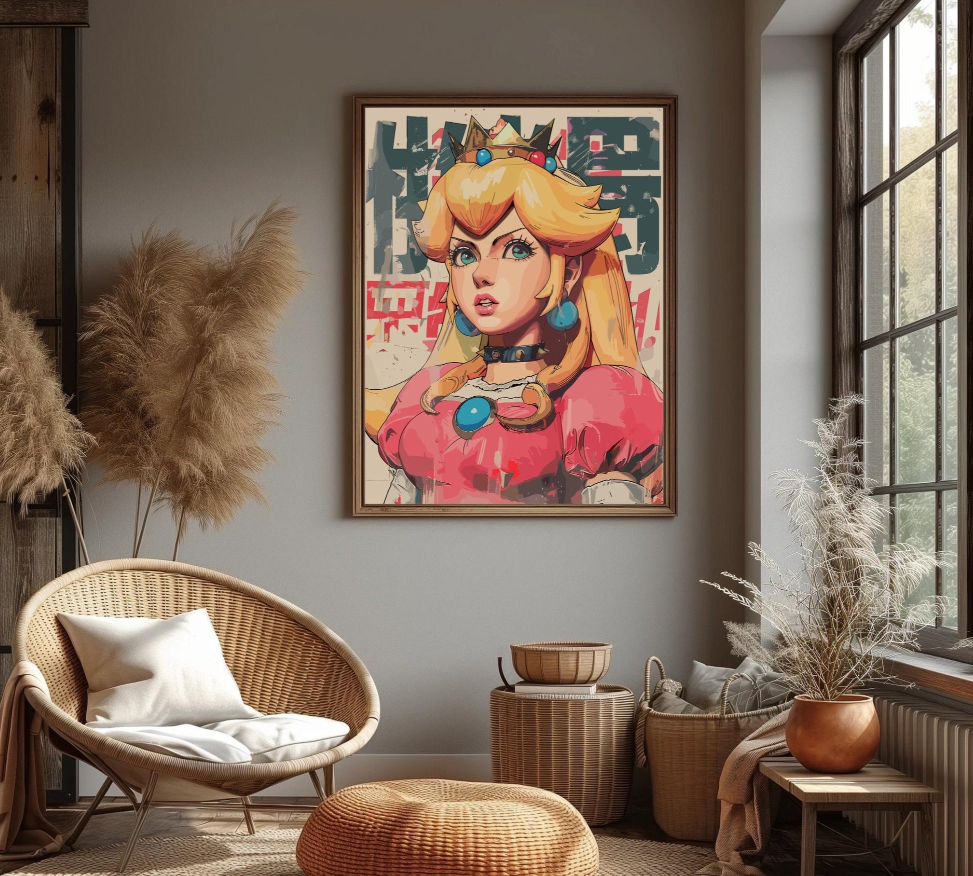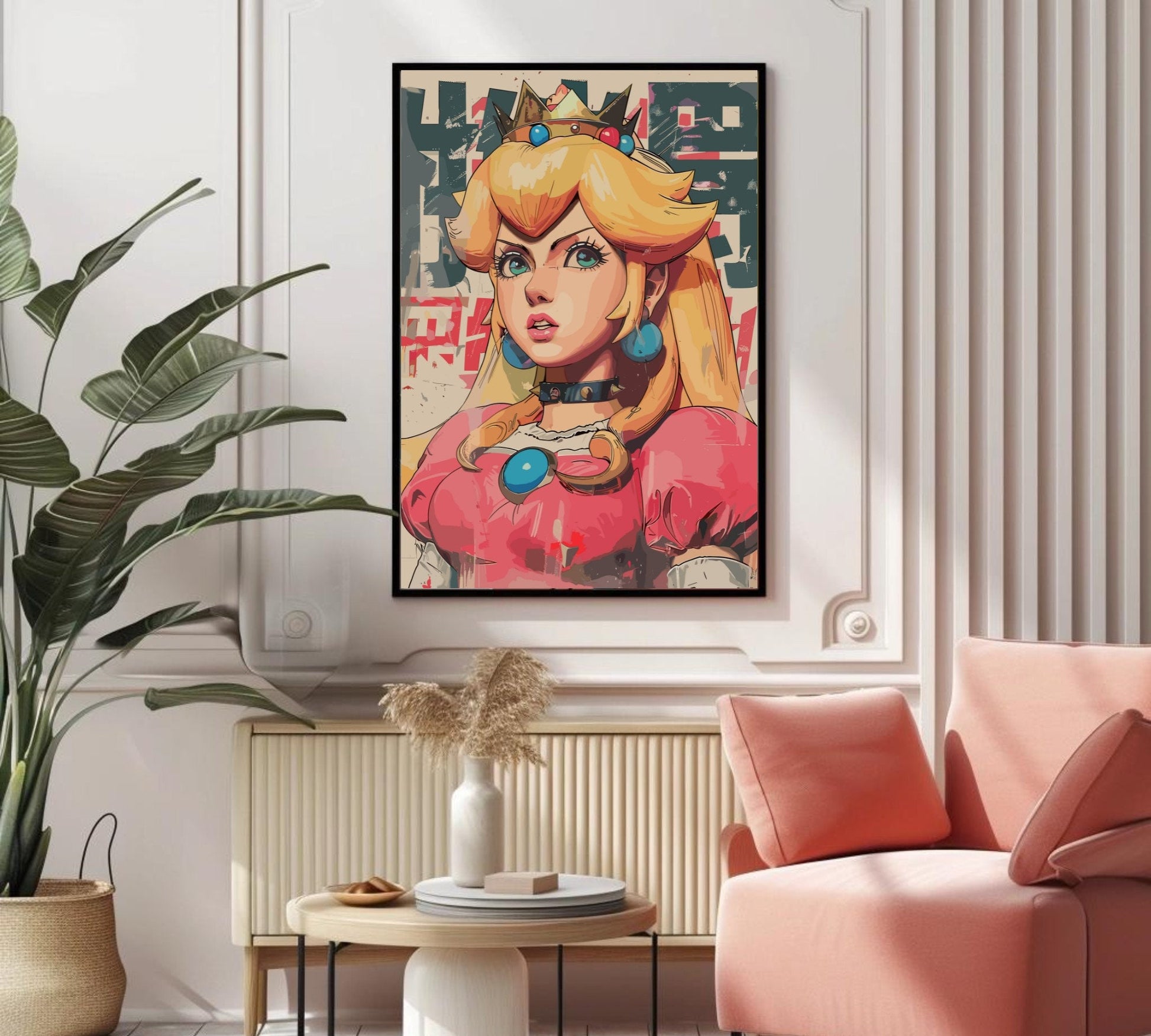 Apportez le charme classique de Nintendo à vos murs avec l' affiche Princesse Peach . Cette décoration murale de style anime japonais met en scène la Princesse Peach dans un design vibrant et rétro, parfait pour les chambres, les salles de jeux ou les espaces dédiés à la culture pop. Son esthétique ludique et colorée apporte personnalité et nostalgie à n'importe quelle pièce.