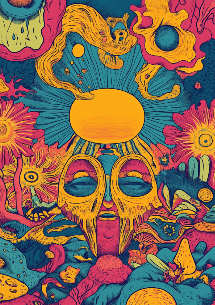 Affichez votre style avec l' affiche Crâne psychédélique – Décoration murale fluo trippante pour une décoration alternative . Ornée d'un motif de crâne fluo vibrant, cette œuvre saisissante est parfaite pour les amateurs d' art psychédélique, d'imprimés trippants et de décoration d'intérieur alternative ou avant-gardiste .
