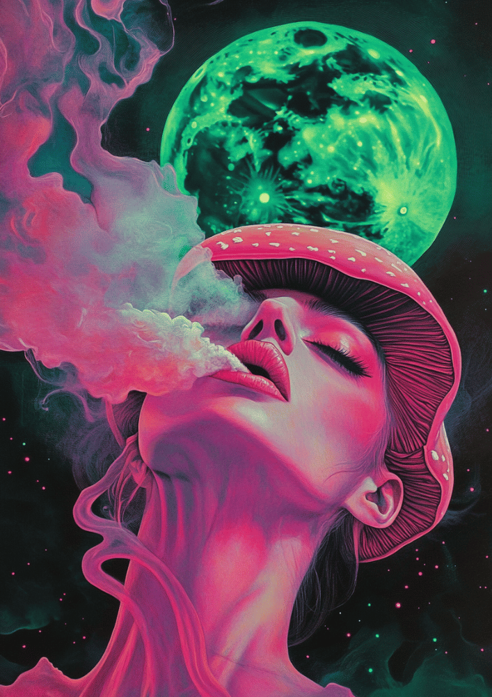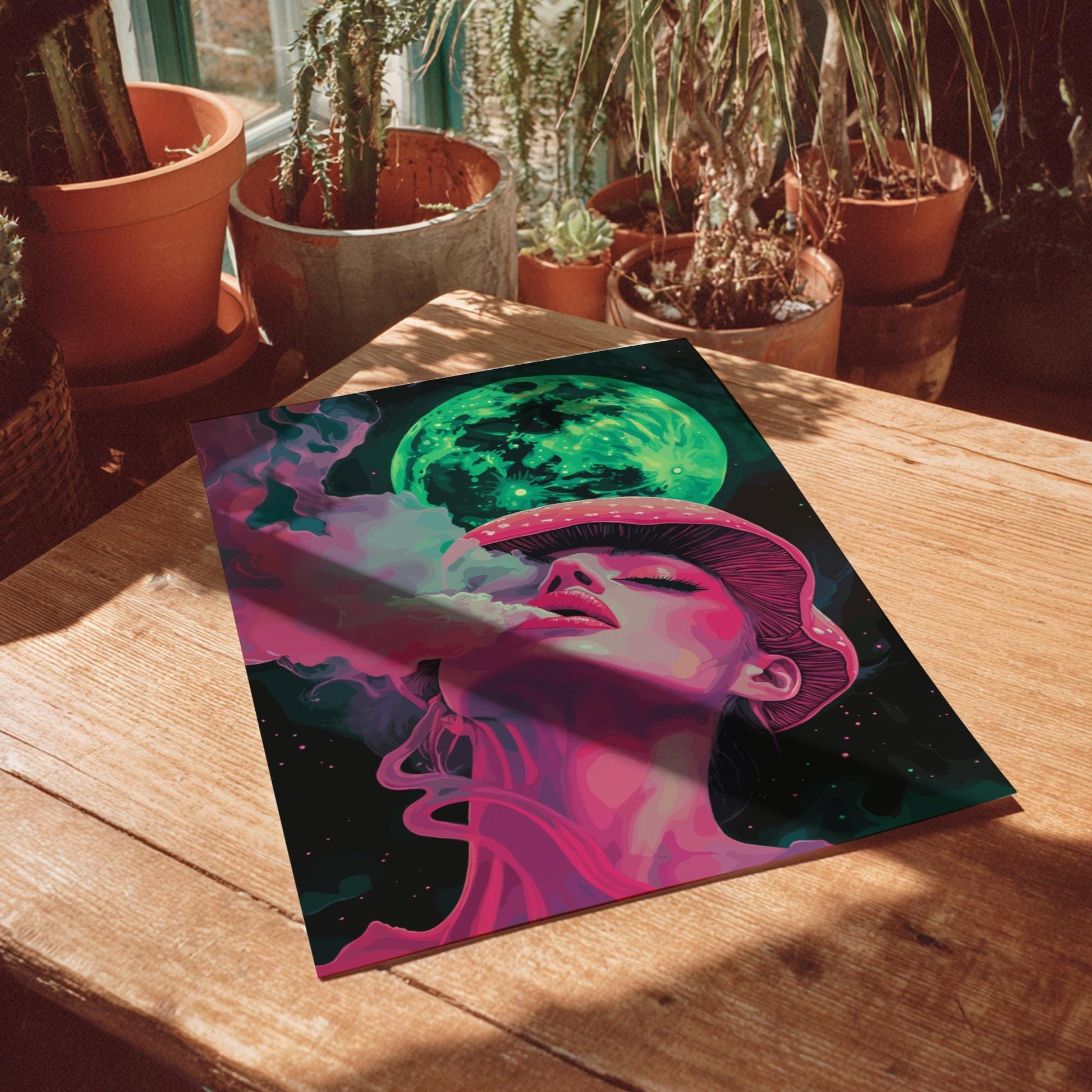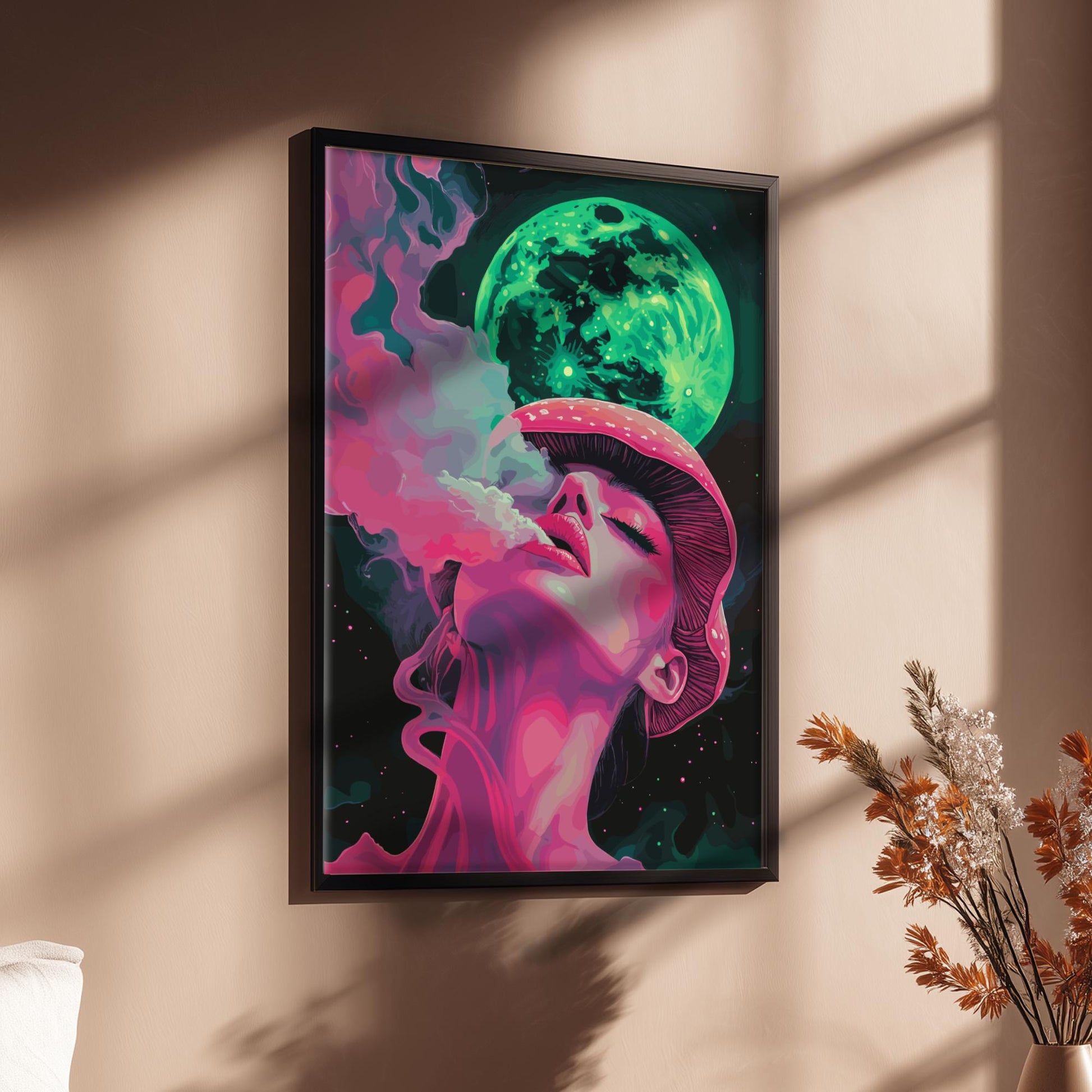 Plus qu'un simple objet décoratif, l' affiche Trippy Mushroom Girl stimule l'imagination et la conversation. Idéale pour les amateurs d'art, les collectionneurs d'imprimés surréalistes et psychédéliques et les rêveurs , elle transforme les murs ordinaires en espaces vibrants, surnaturels et pleins de personnalité.