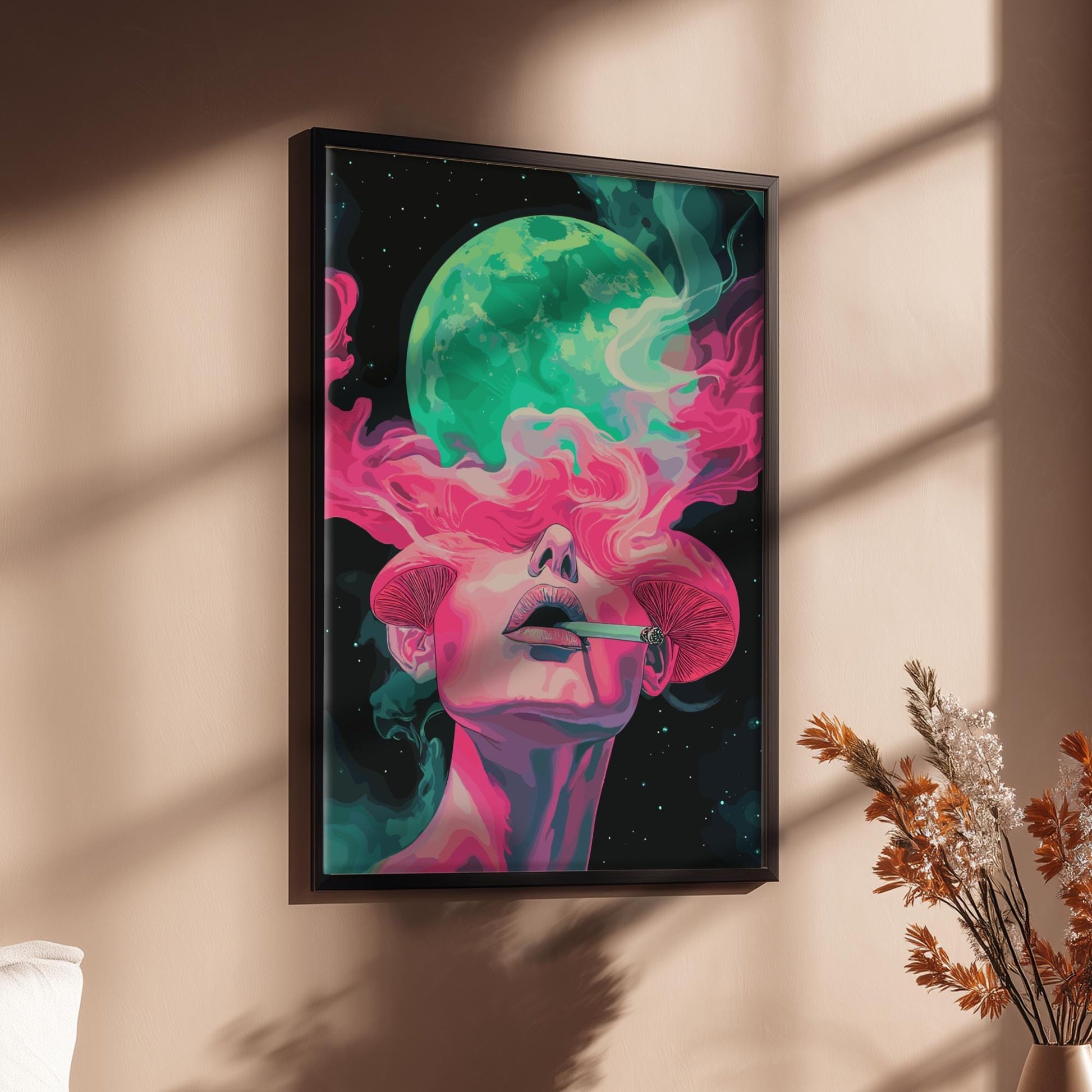 Imprimé sur des matériaux haut de gamme, l' imprimé « Femme psychédélique » offre des couleurs vives et des détails précis, un atout saisissant pour les chambres, les salons, les bureaux ou les studios de création . Son esthétique cosmique et surréaliste apporte énergie, créativité et modernité à n'importe quelle pièce.