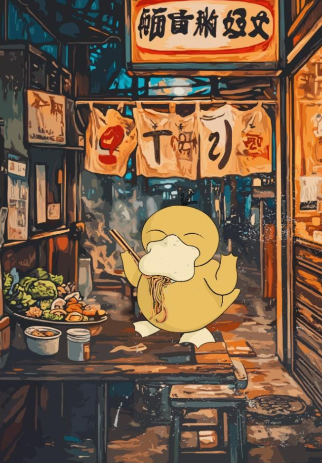 Affiche Psyduck Ramen – Décoration murale Pokémon japonaise