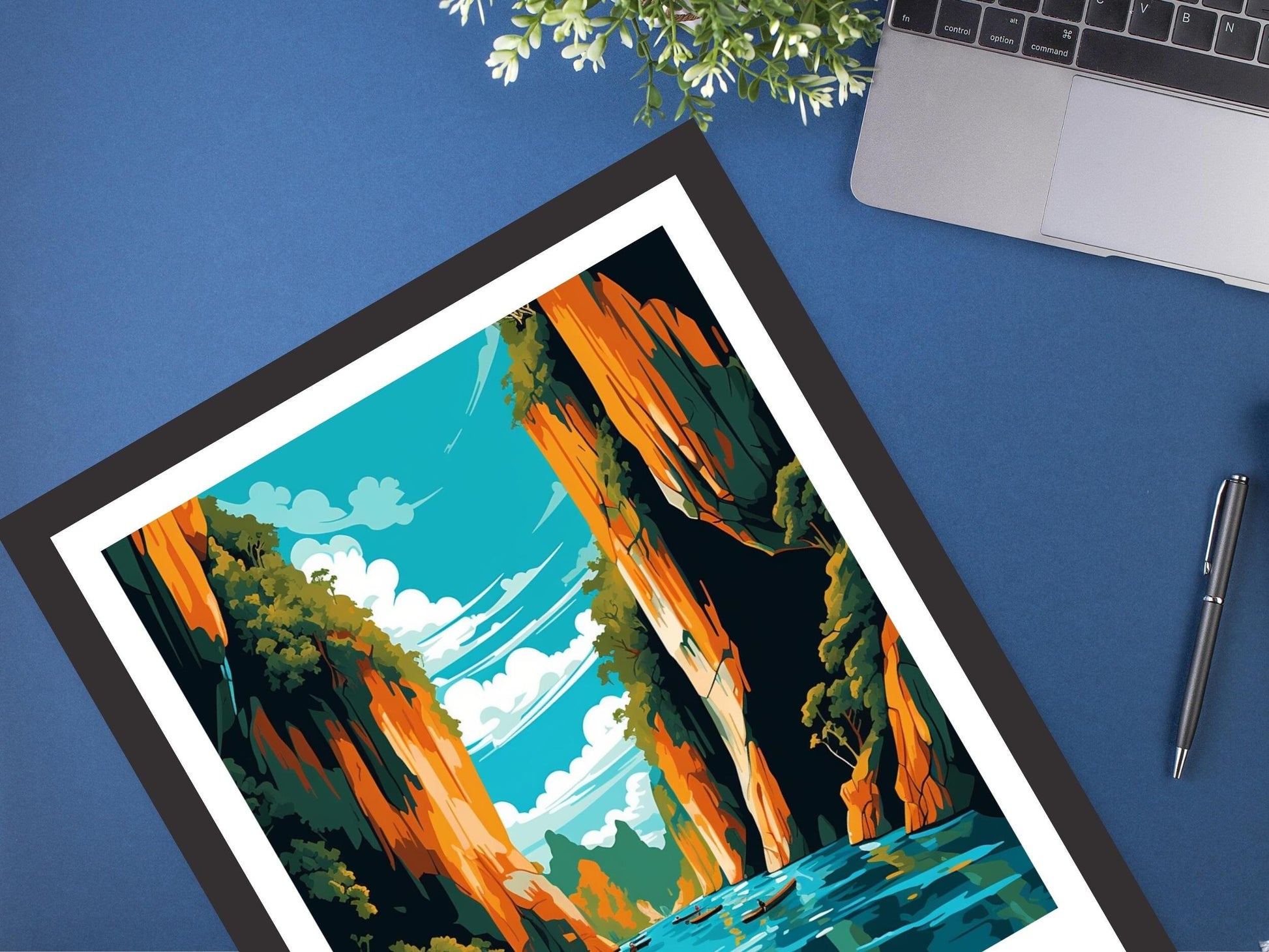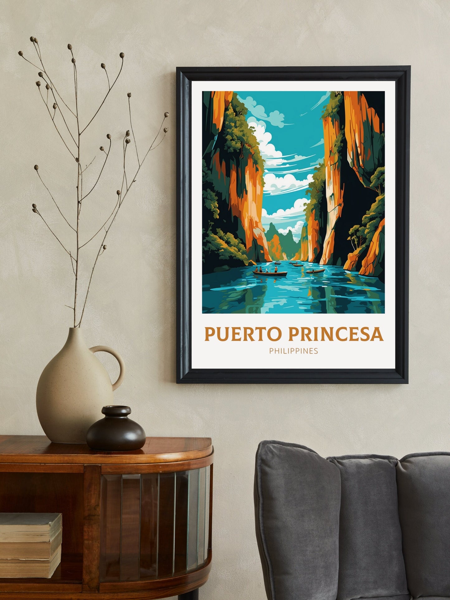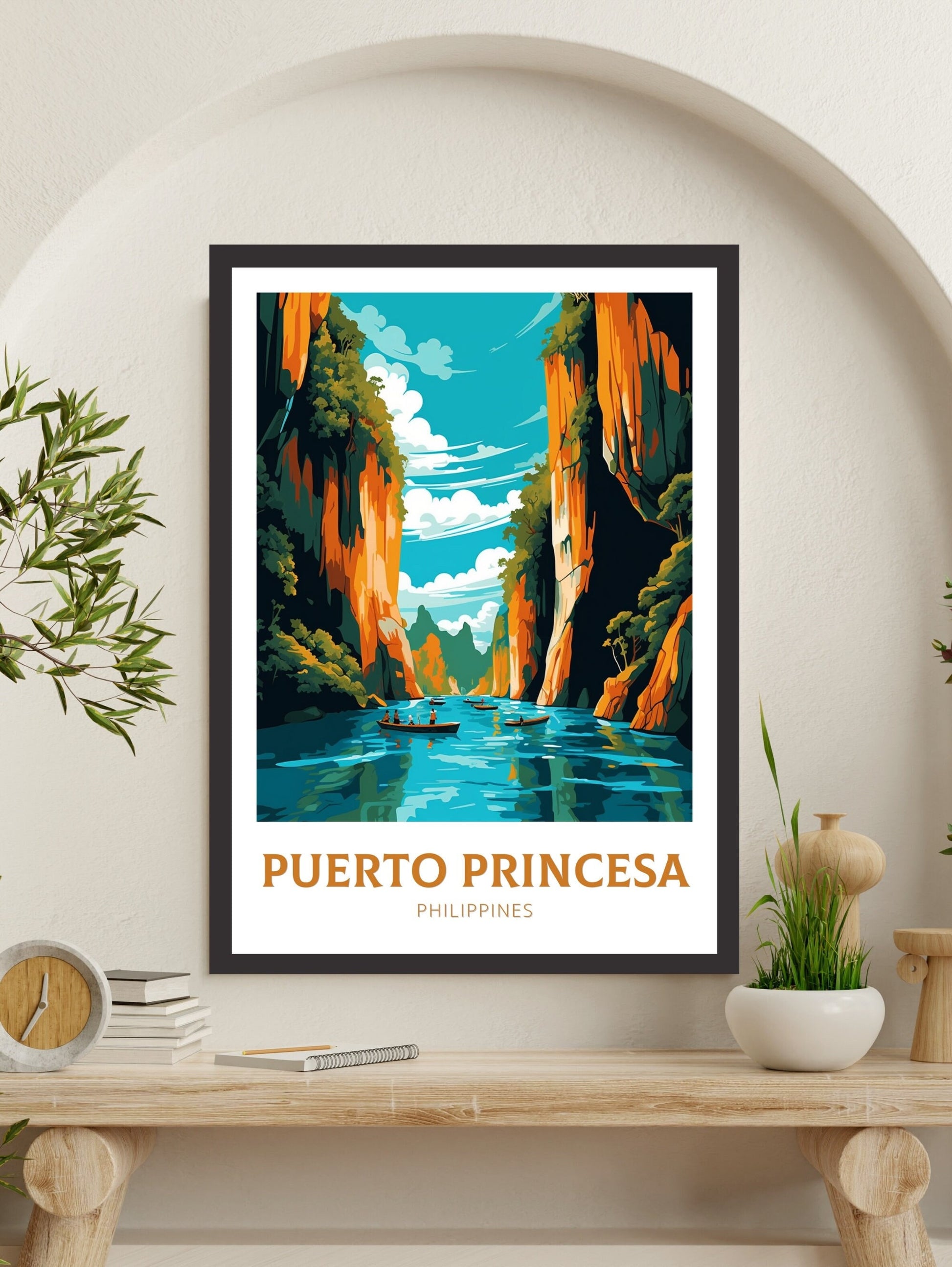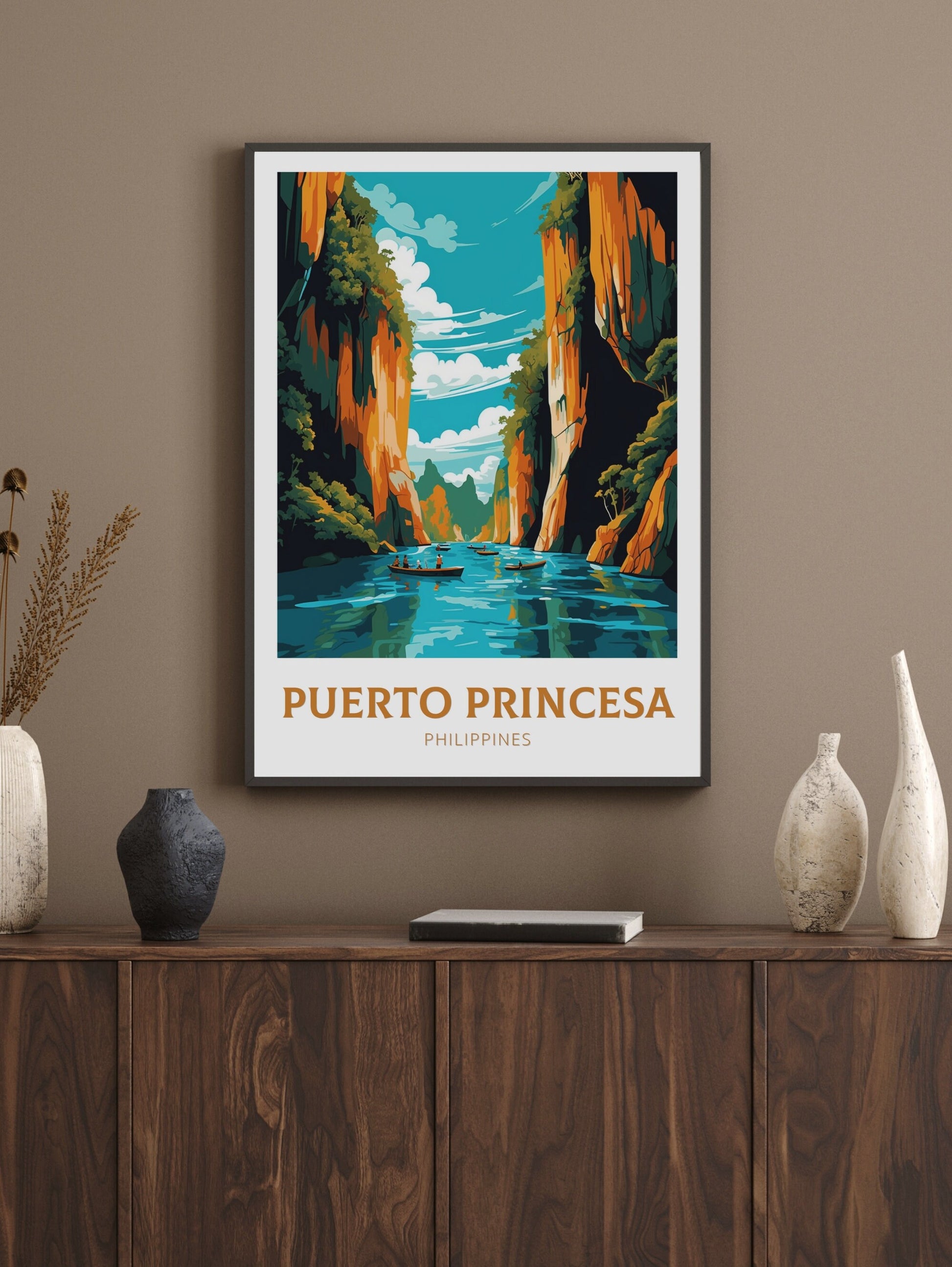 Notre affiche de voyage Puerto Princesa – Art rétro des Philippines – plonge votre intérieur dans le charme tropical de Puerto Princesa, aux Philippines, grâce à son design nostalgique. Idéale pour les passionnés de voyages et les amateurs d'art rétro, elle capture la rivière souterraine et la jungle luxuriante dans un style intemporel. Que vous ayez exploré ses merveilles ou rêvé de sa beauté, cette affiche rétro de Puerto Princesa sera un ajout magnifique à votre décoration.