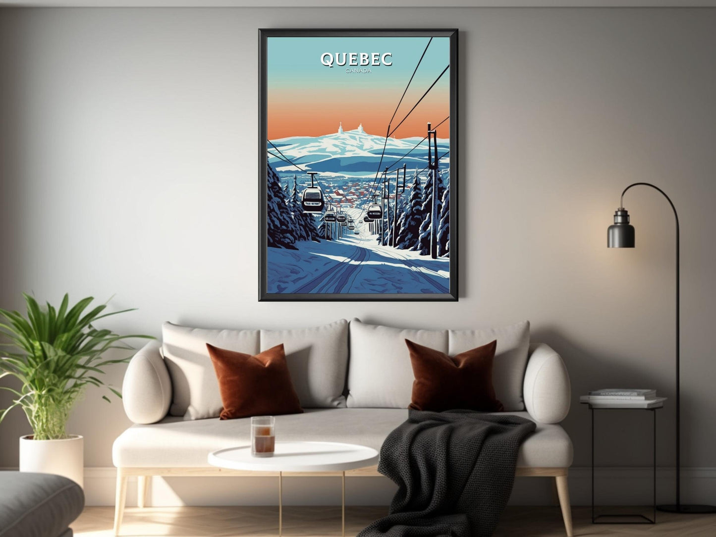 Célébrez le charme du Canada français avec notre affiche de voyage du Québec . Cette œuvre d'art canadienne capture les rues historiques, l'architecture emblématique et la beauté pittoresque de la ville de Québec, idéale pour les passionnés de voyages, les amateurs d'art et les admirateurs de la culture canadienne.