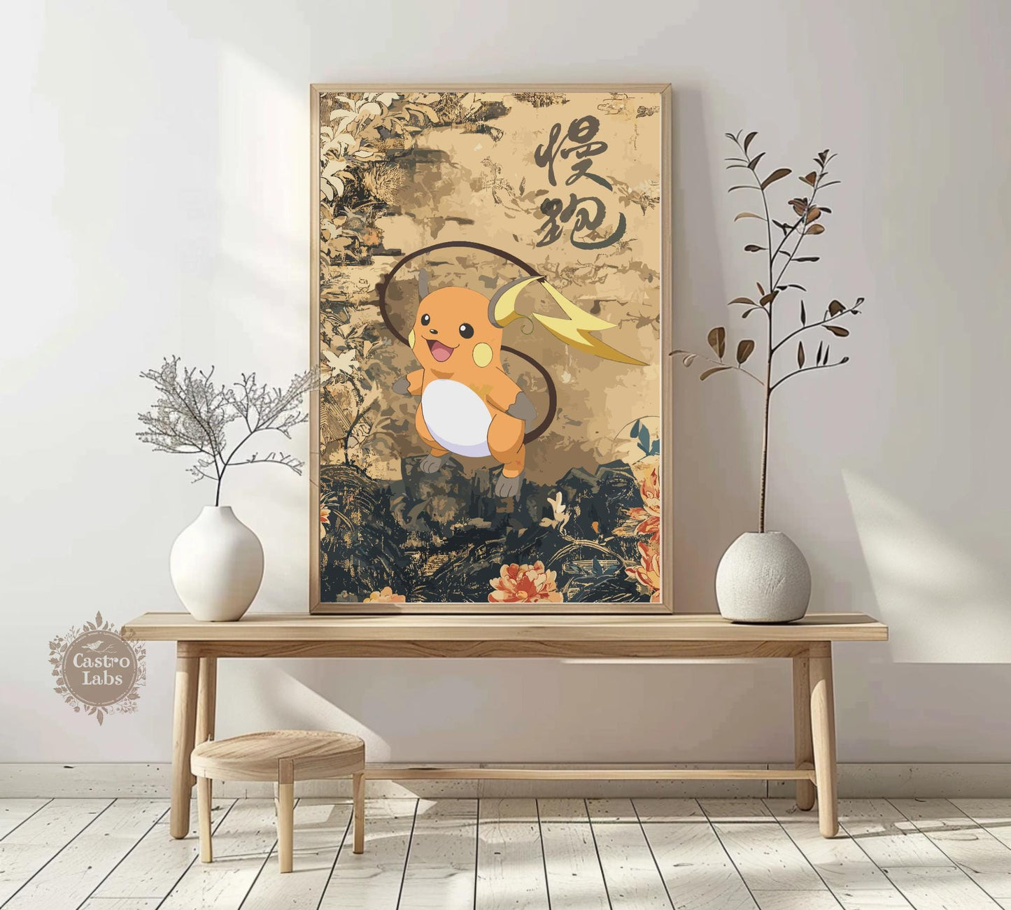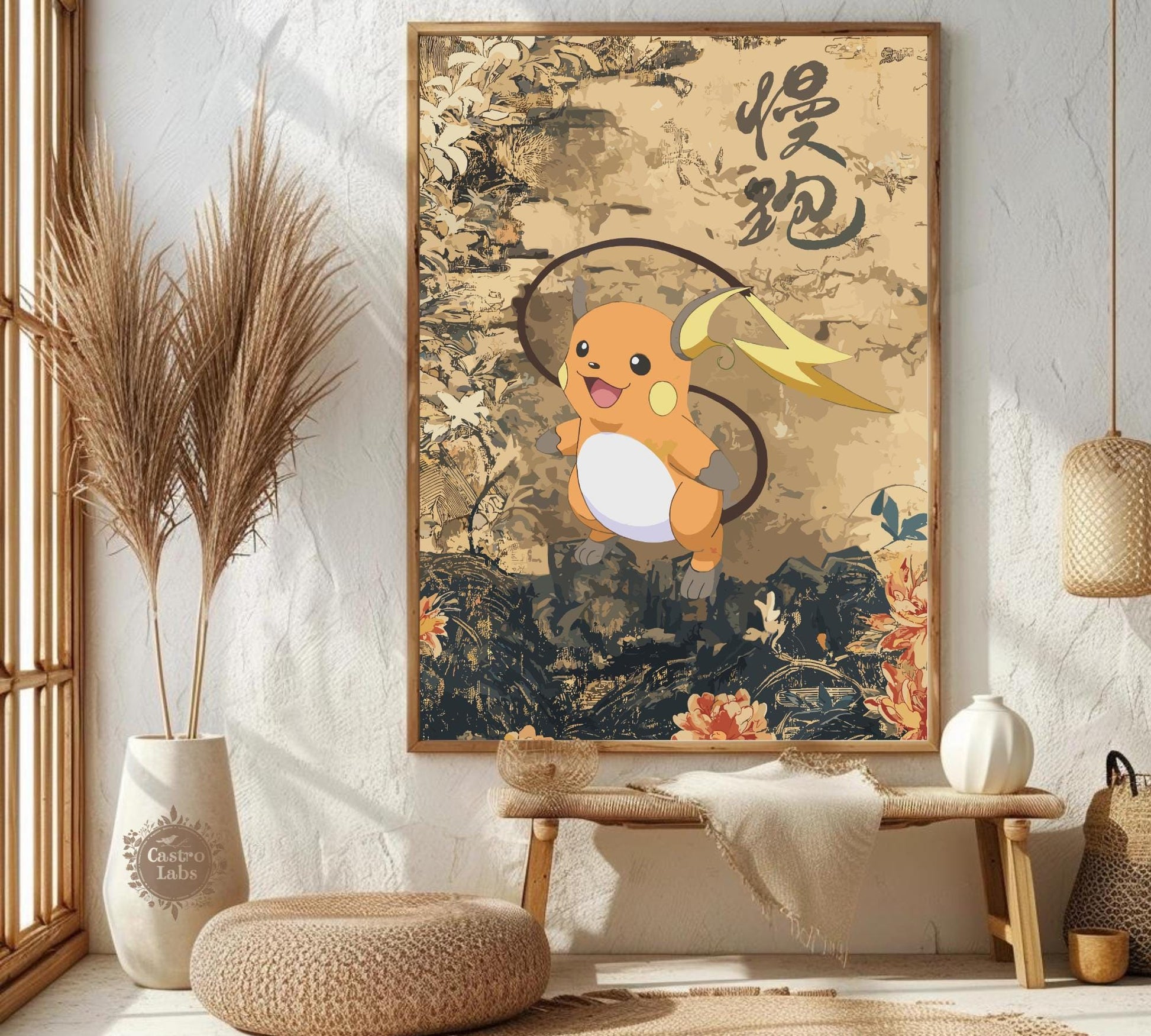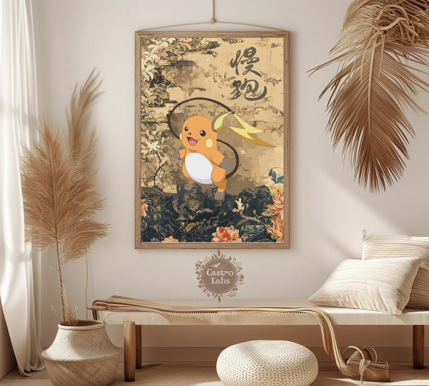Affiche Pokémon Raichu - Illustration d'anime légendaire de style japonais