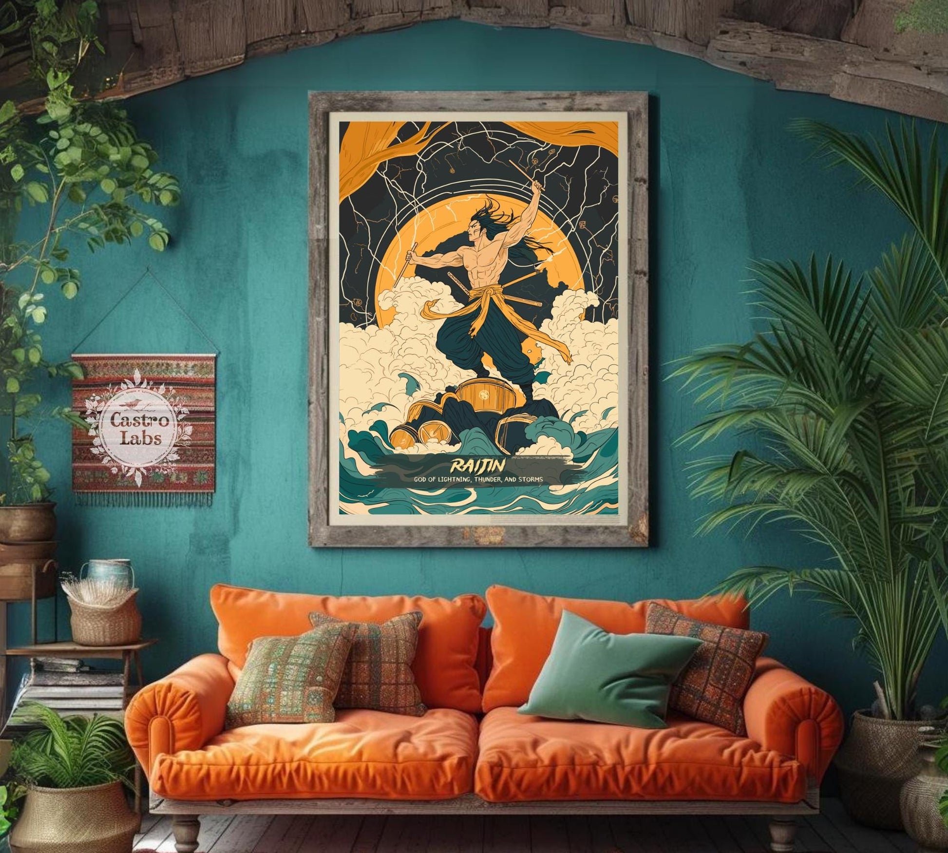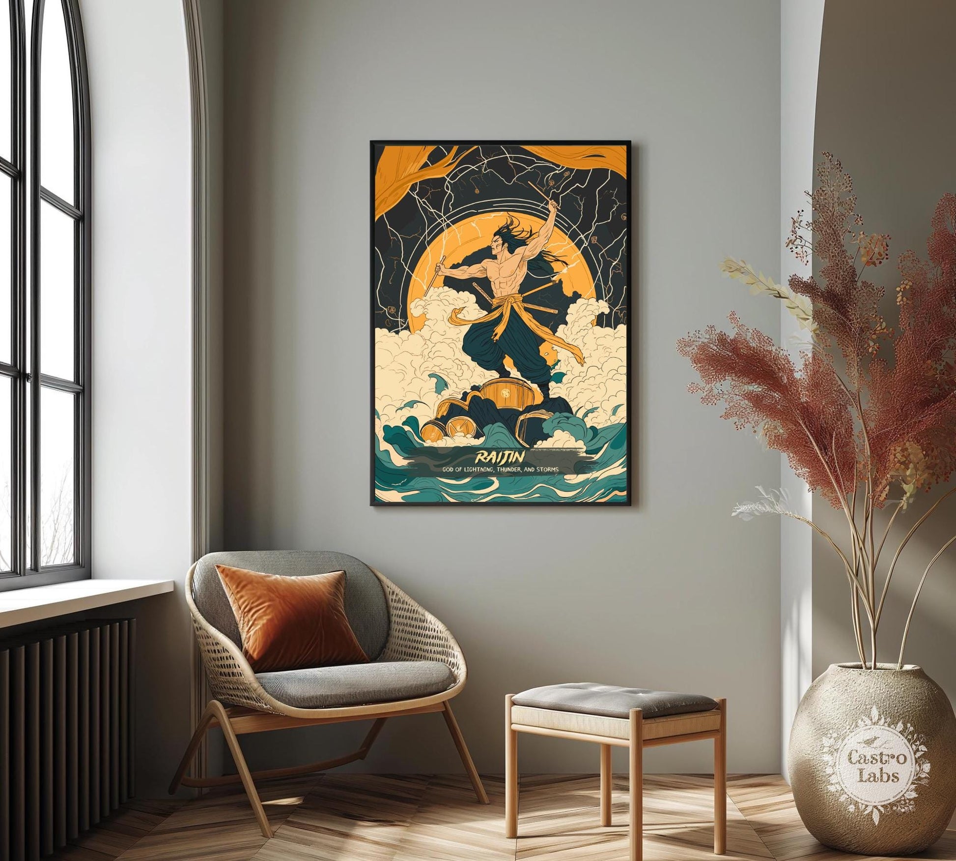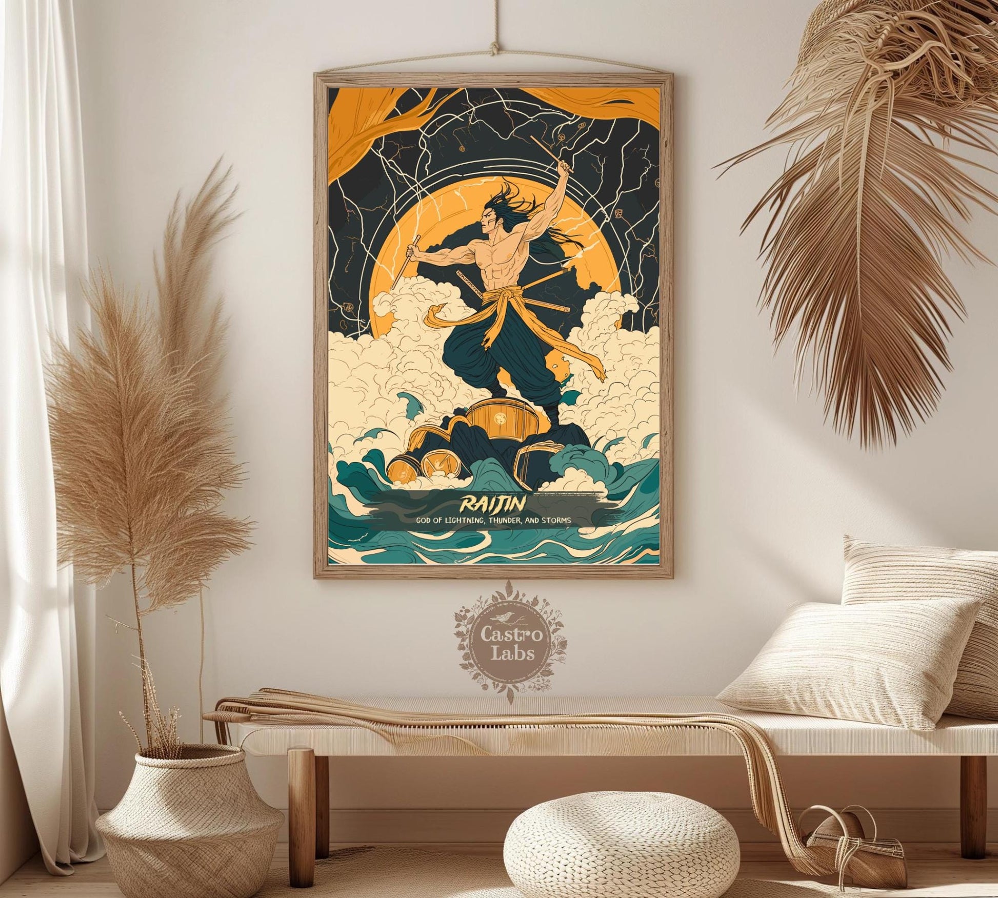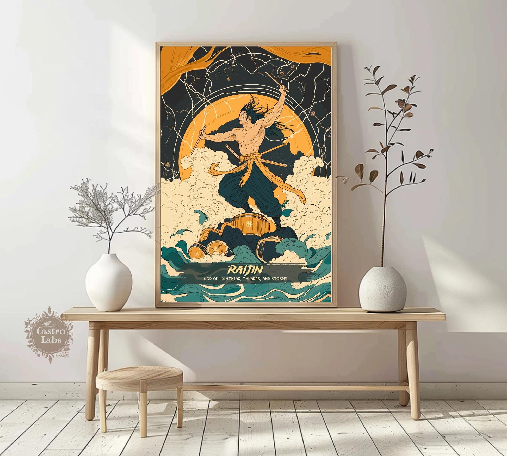 Affiche du dieu Raijin - Œuvre d'art mythologique japonaise