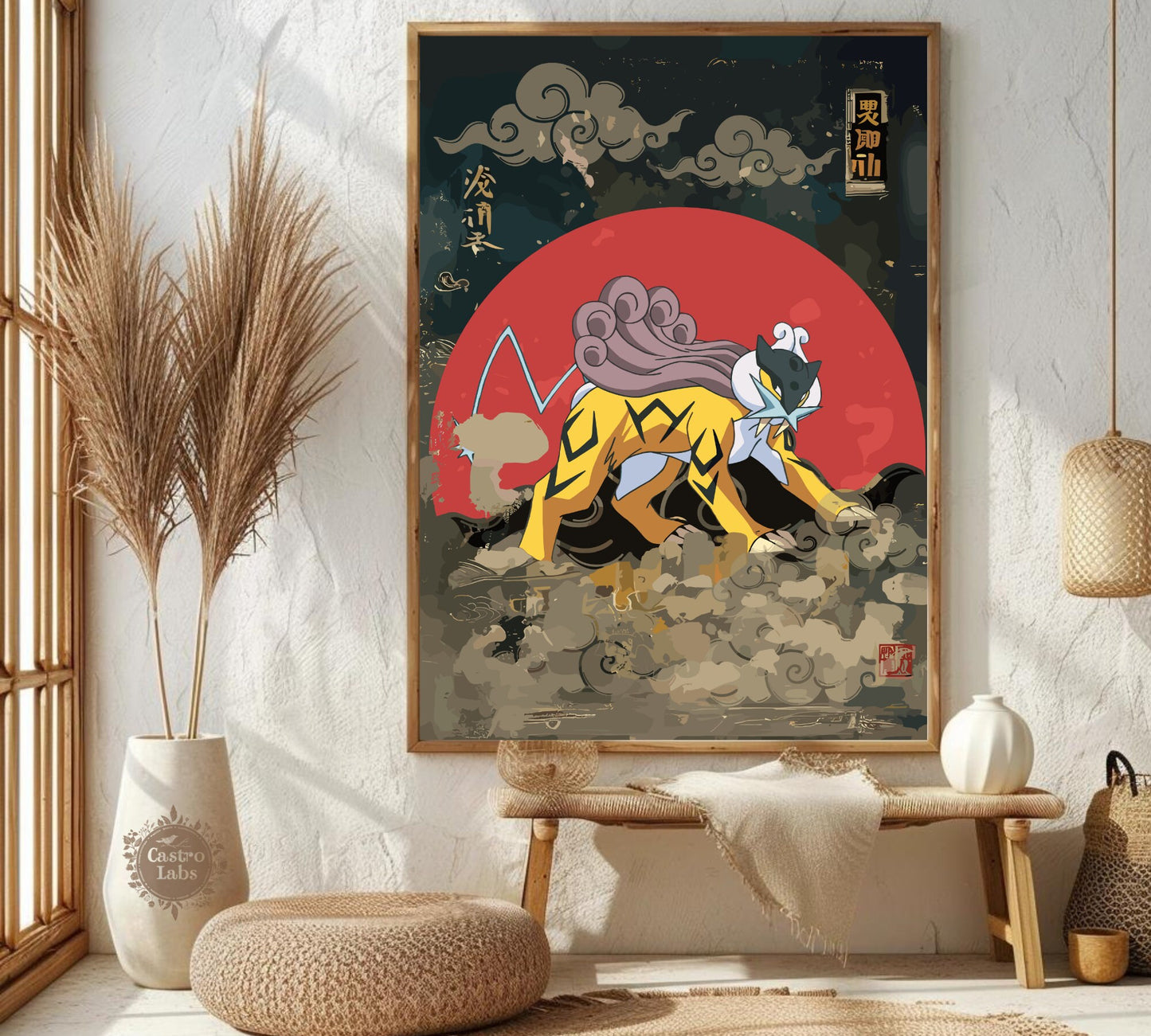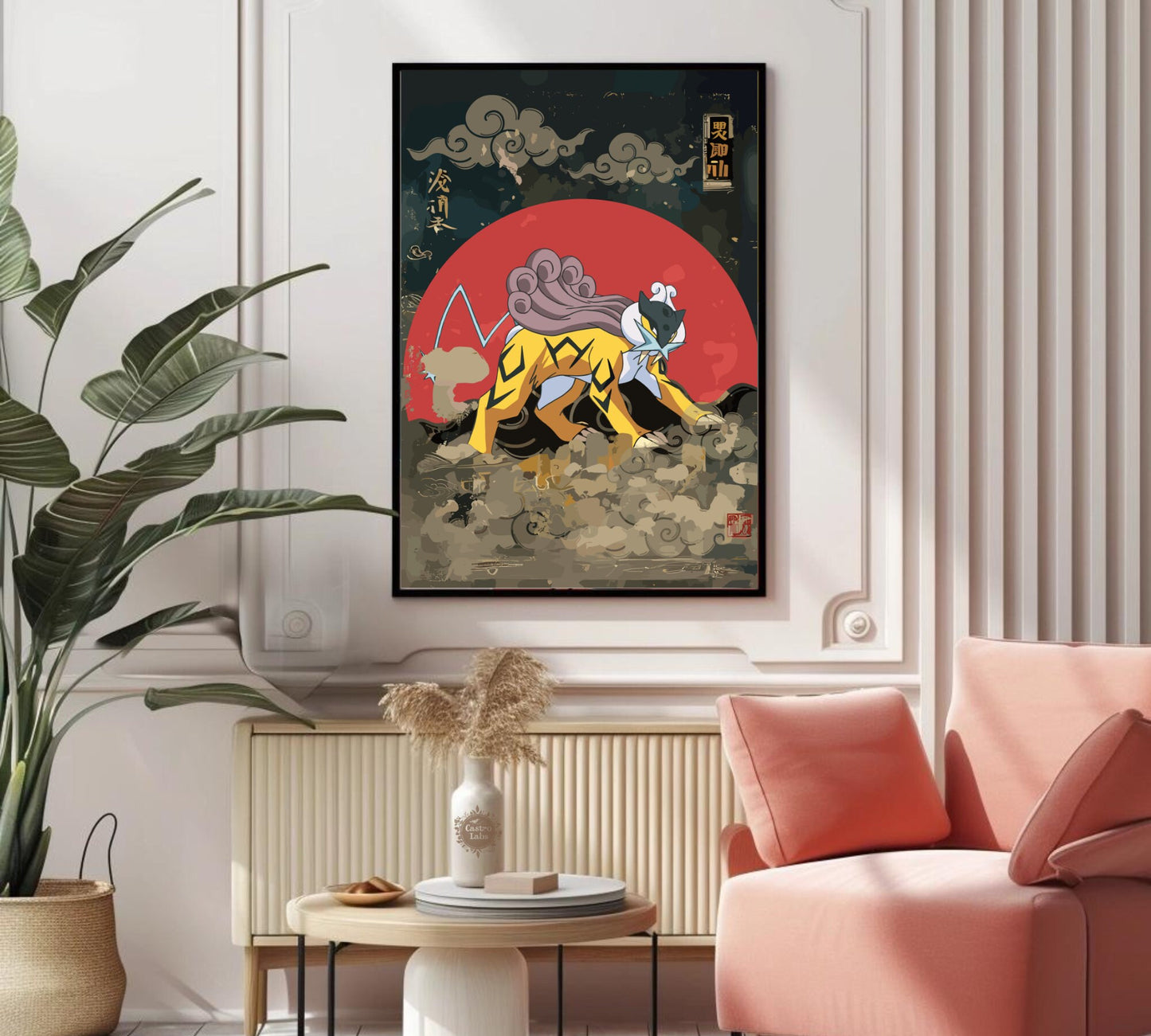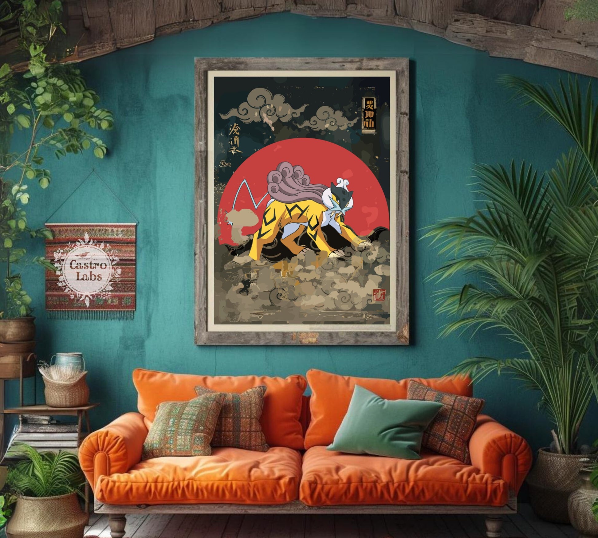 Affiche Pokémon Raikou - Illustration d'anime de style tapisserie japonaise