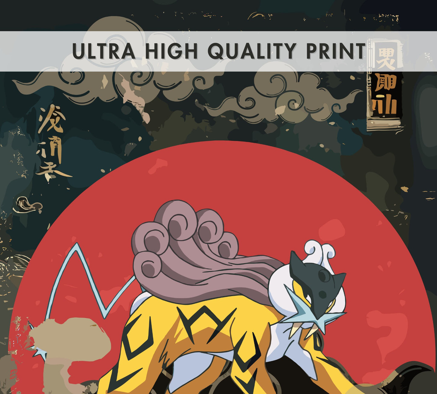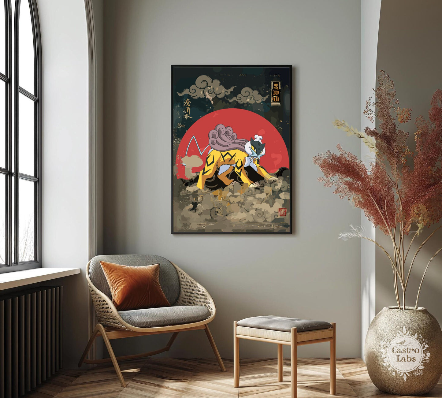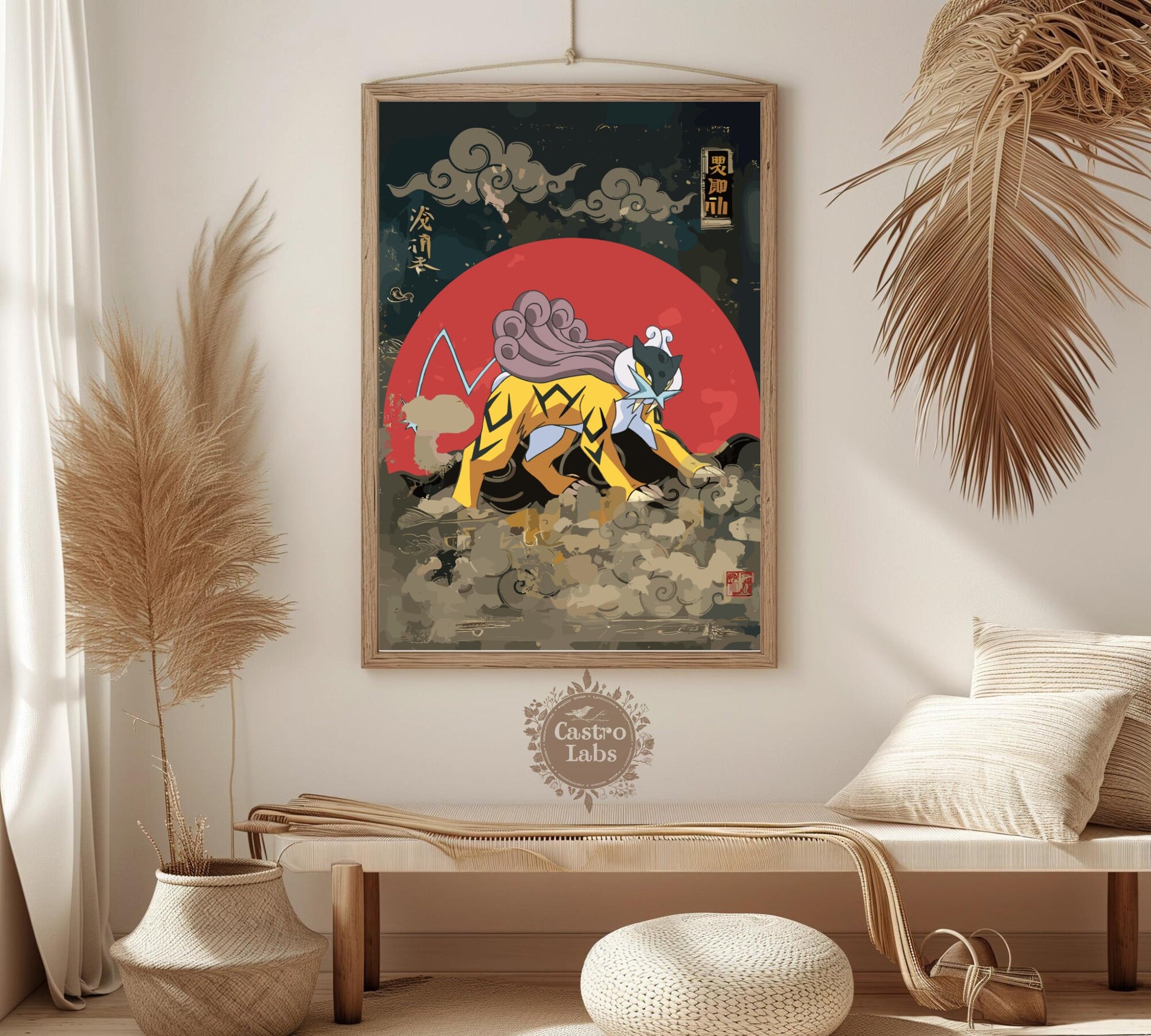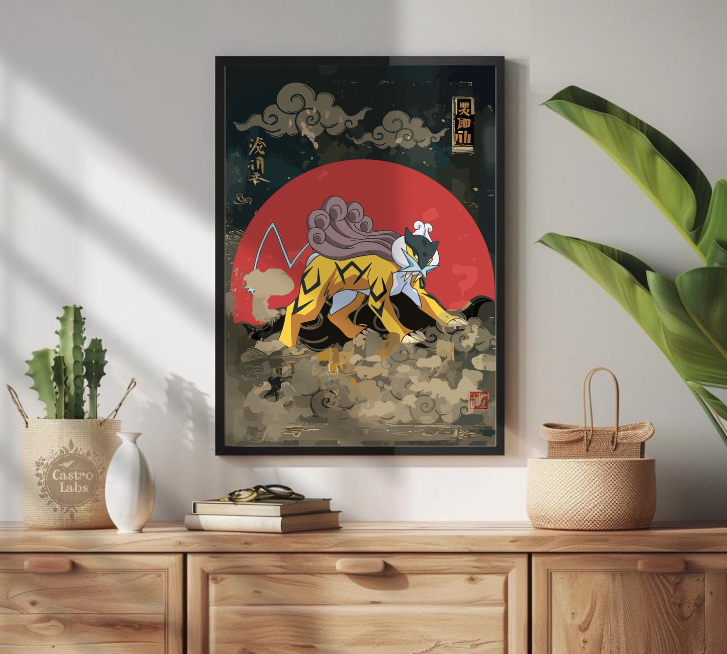 Affiche Pokémon Raikou - Illustration d'anime de style tapisserie japonaise
