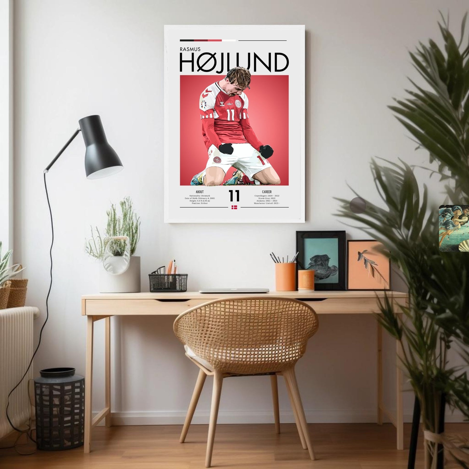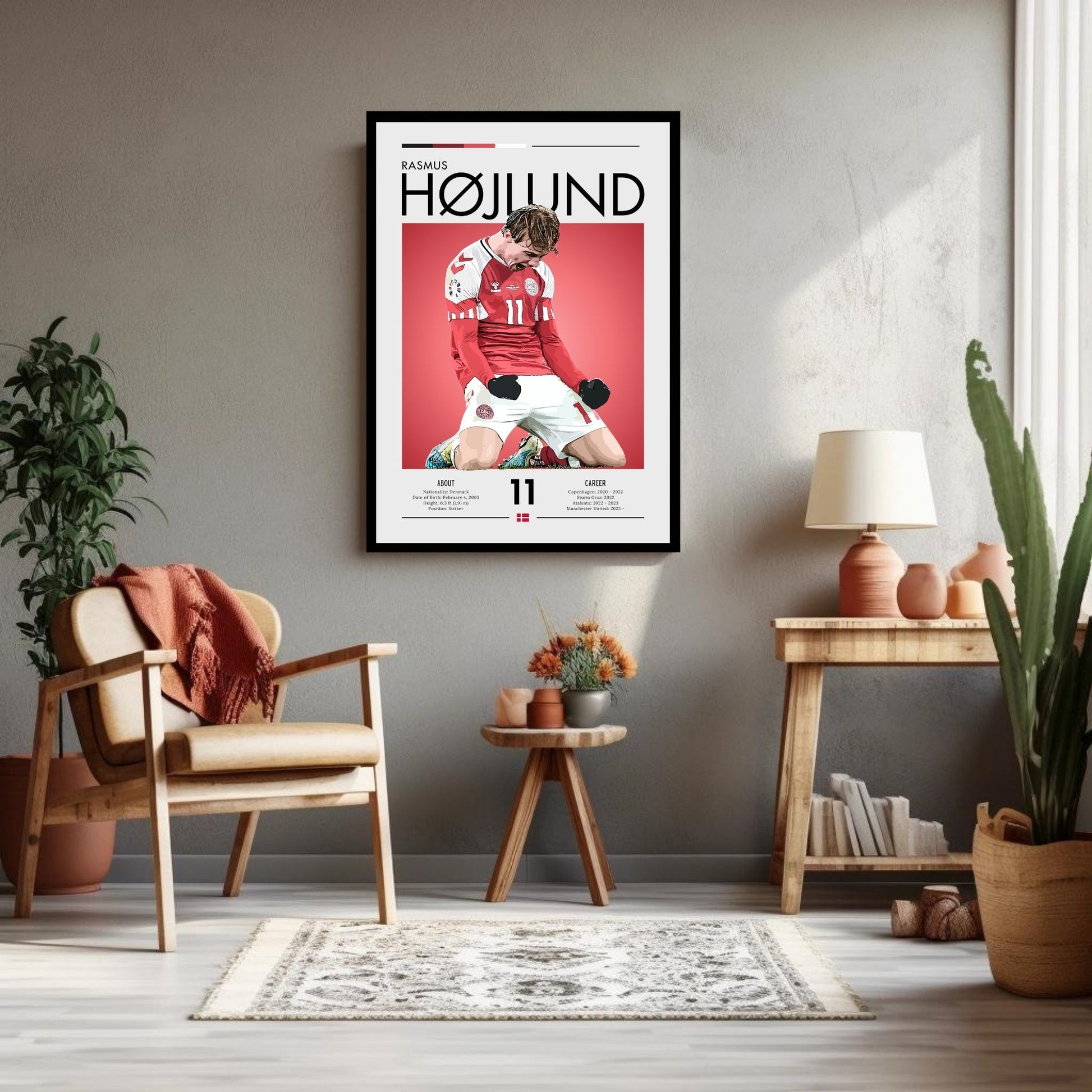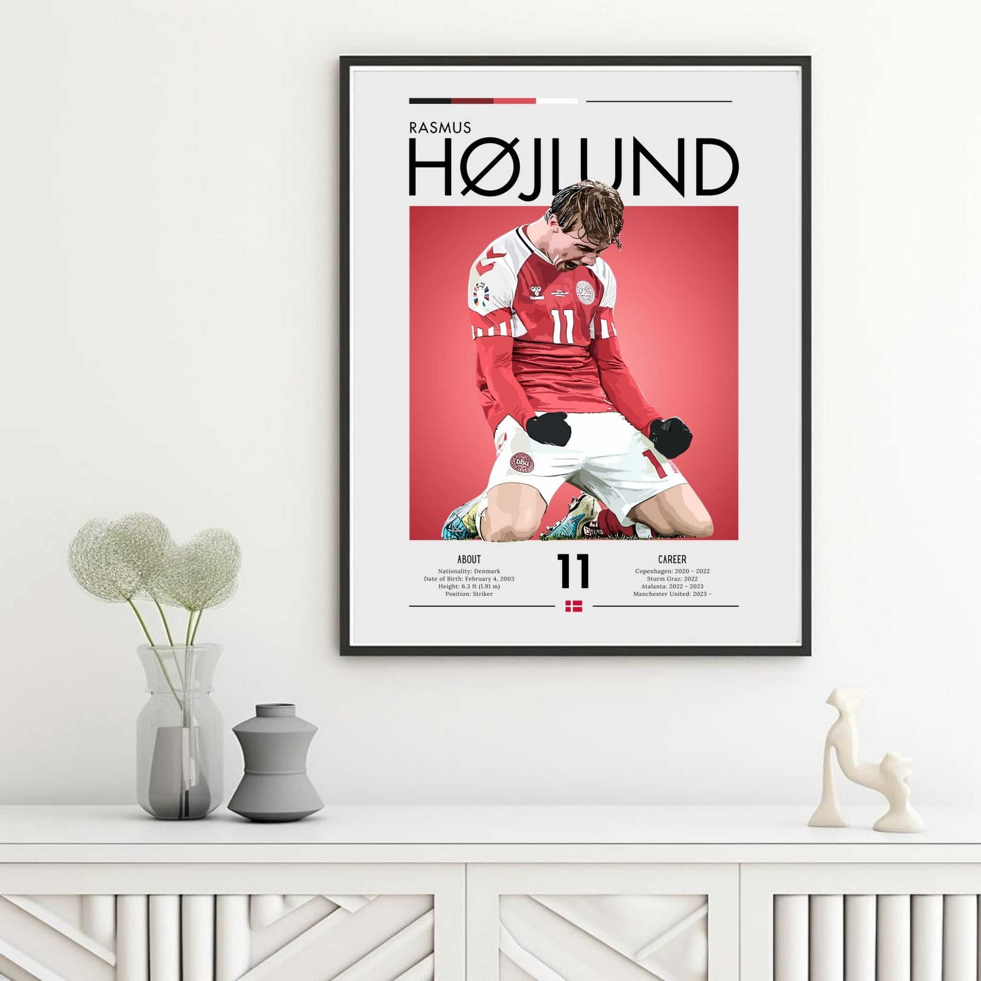 Rasmus Højlund Danemark Affiche - Rising Football Star Print