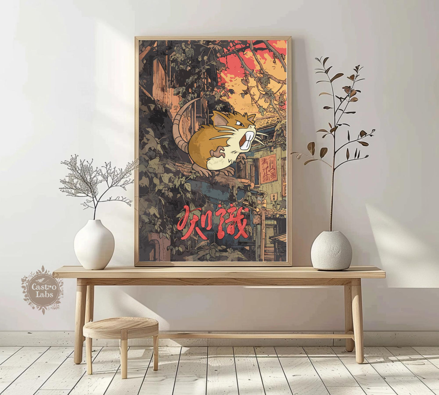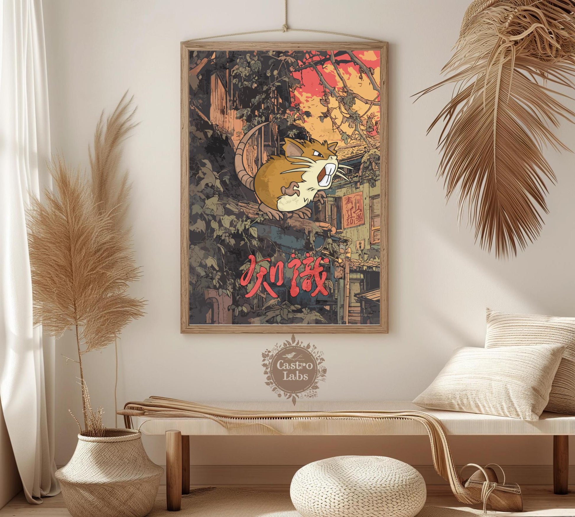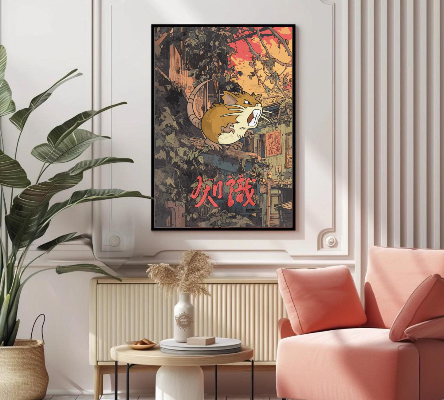 Affiche Pokémon Raticate - Illustration inspirée d'un anime