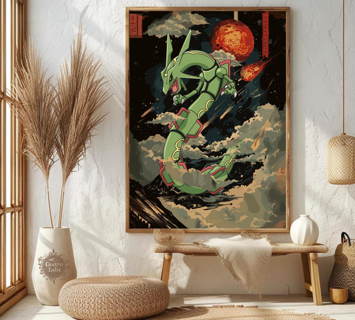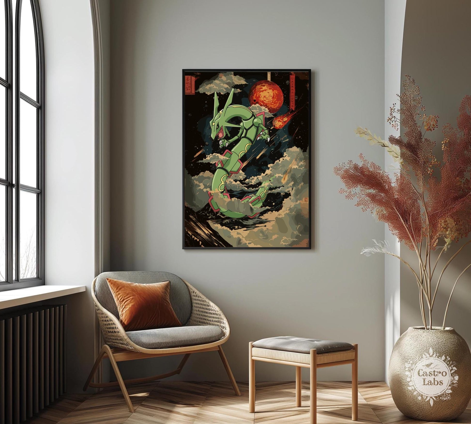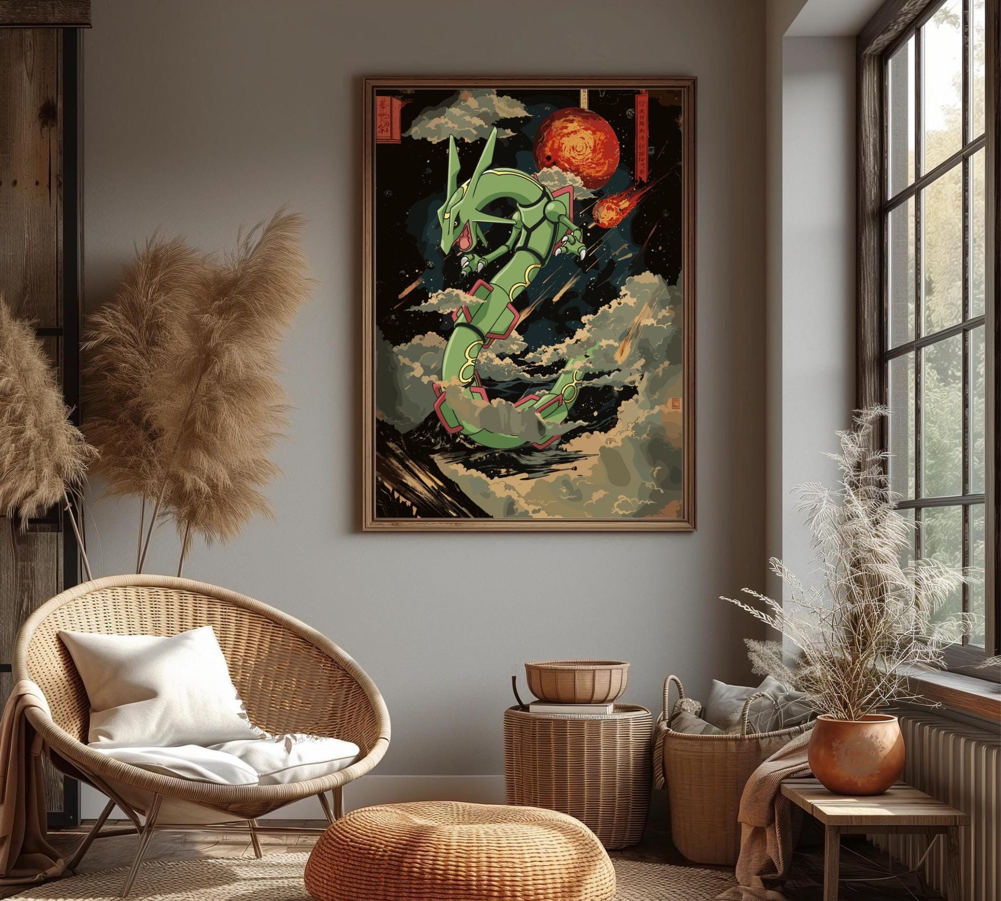Affiche japonaise Rayquaza - Illustration d'anime Pokémon pour une décoration murale moderne