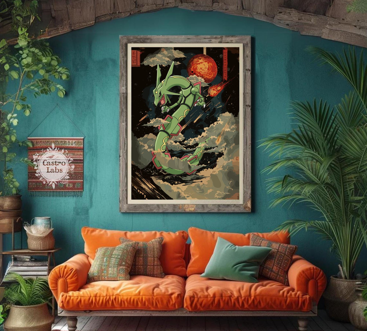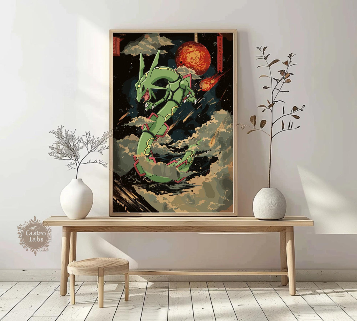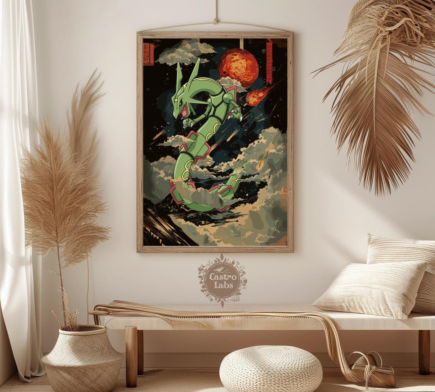 Affiche japonaise Rayquaza - Illustration d'anime Pokémon pour une décoration murale moderne