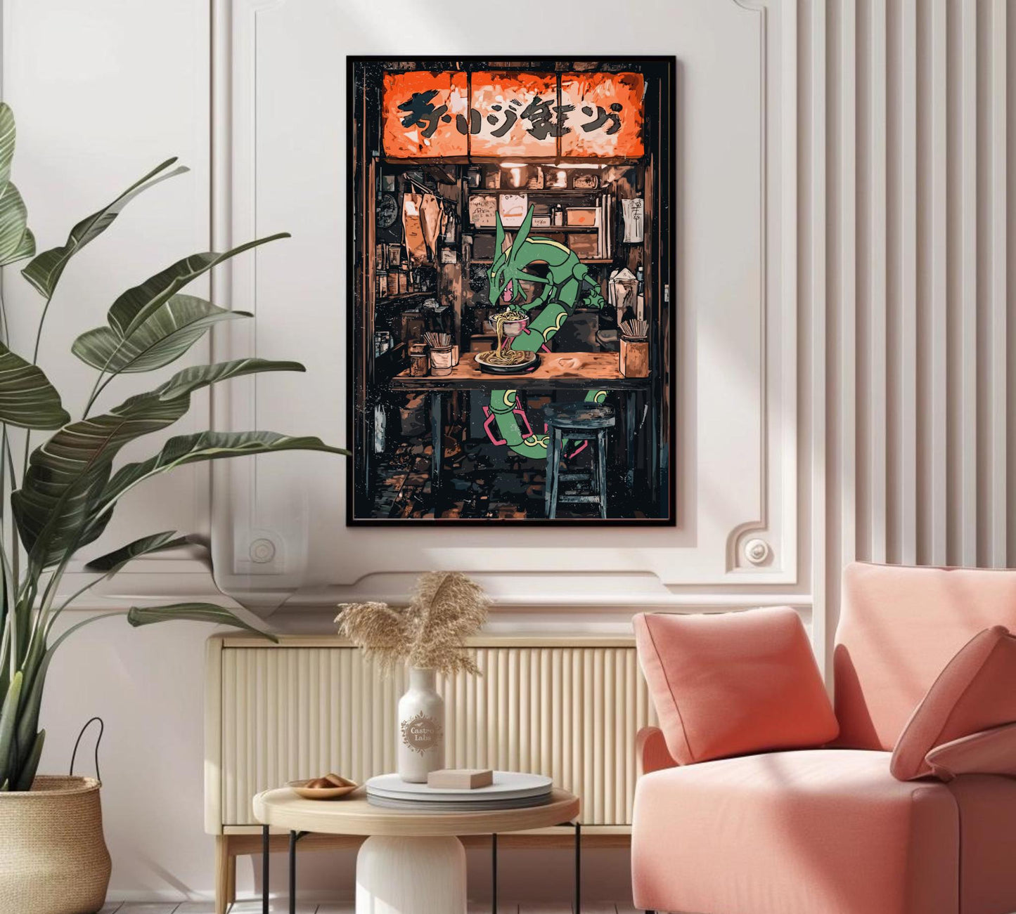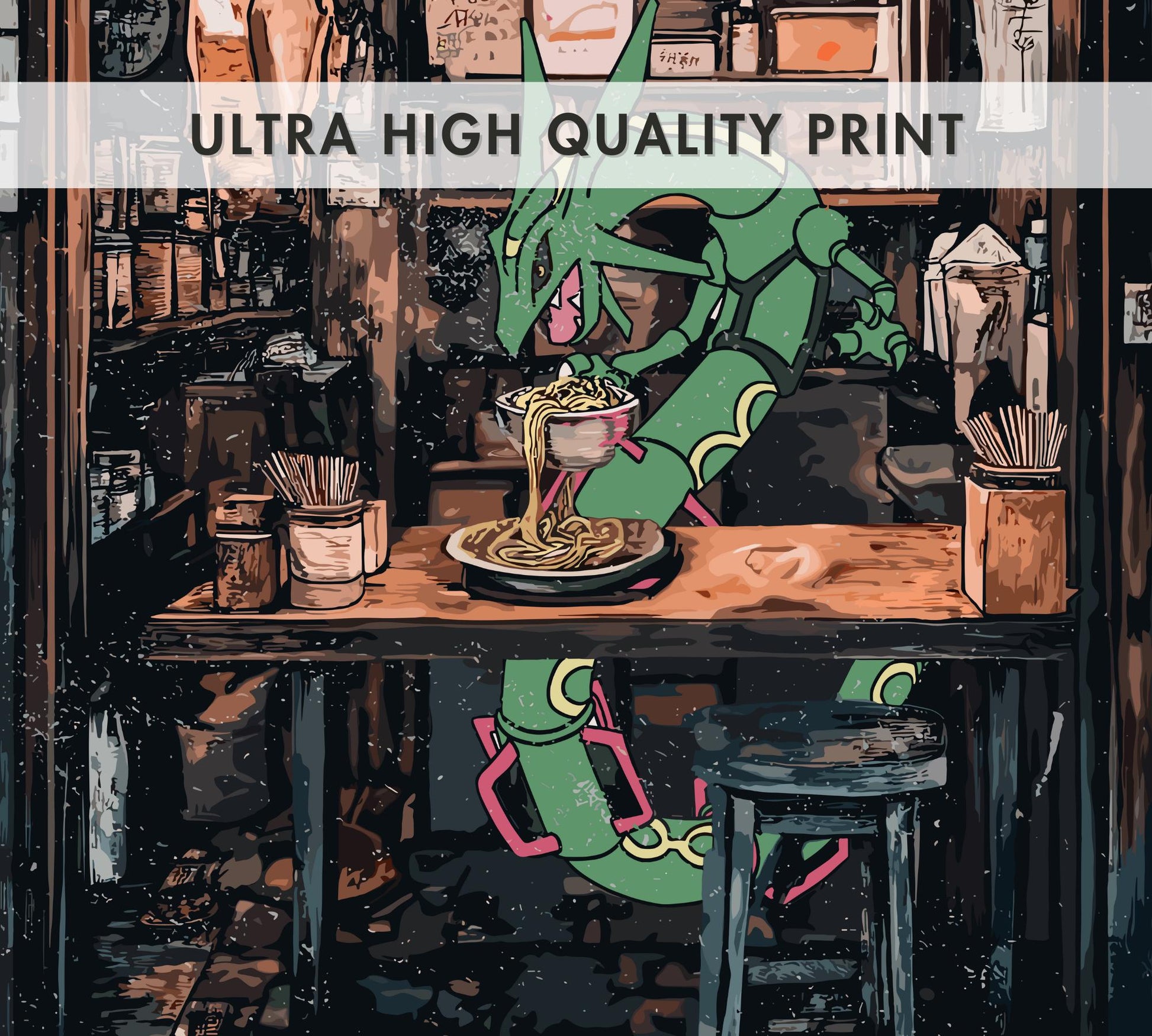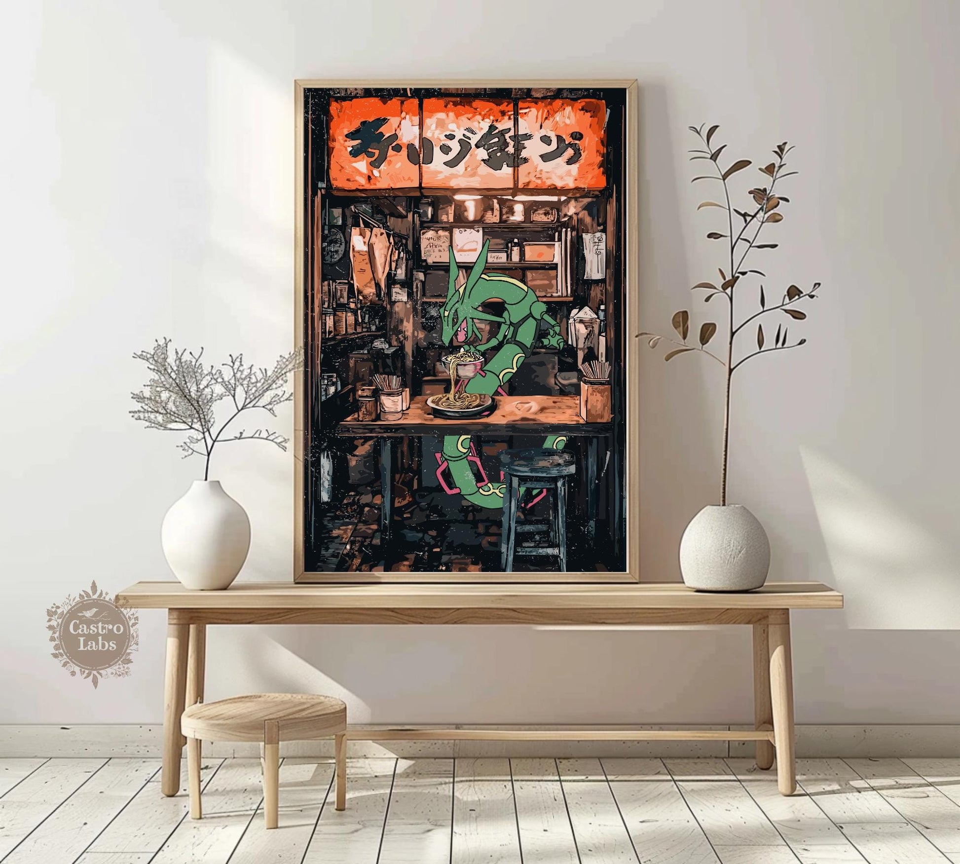 Affiche Ramen Rayquaza - Décoration murale Pokémon japonaise | Décoration pour amateurs d'anime et de nouilles