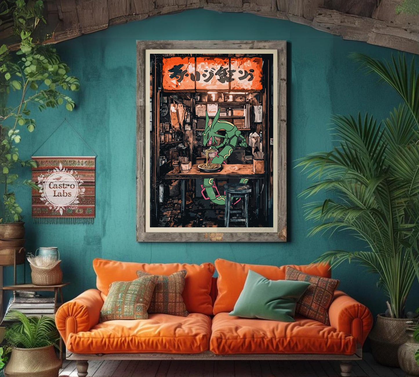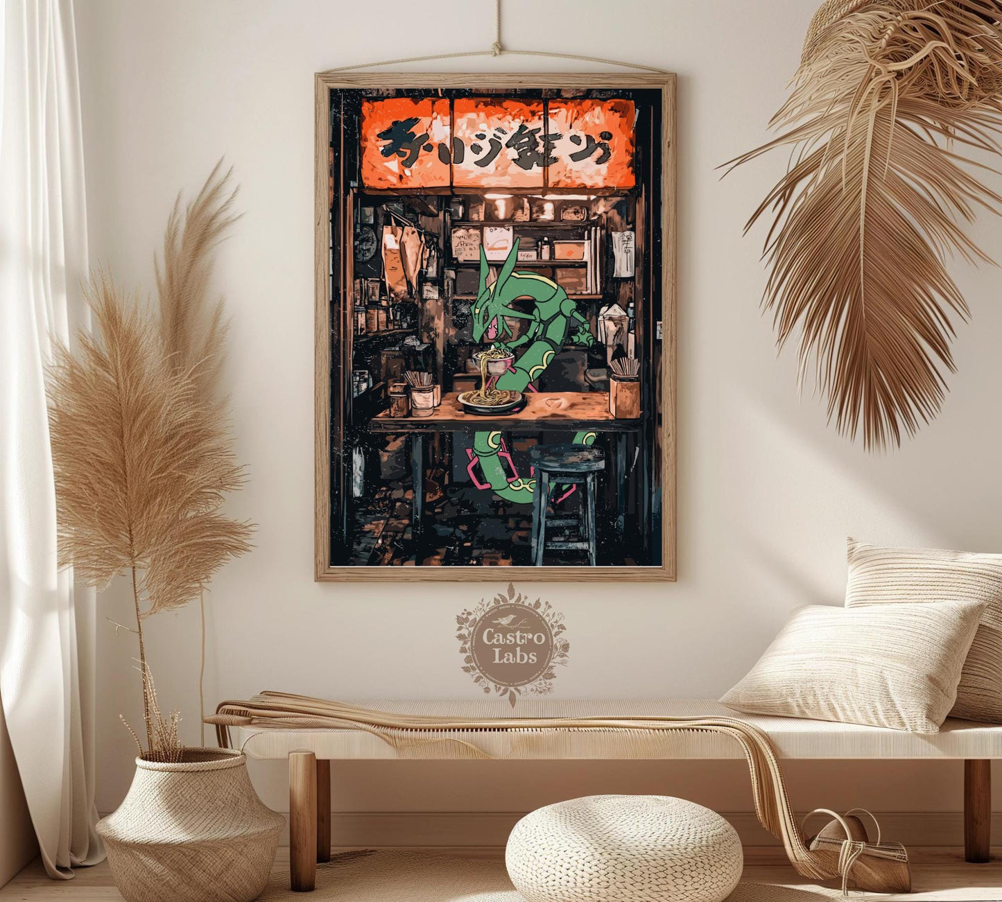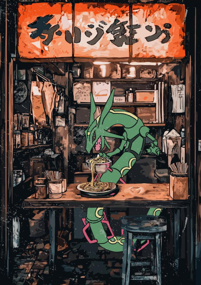 Affiche Ramen Rayquaza - Décoration murale Pokémon japonaise | Décoration pour amateurs d'anime et de nouilles
