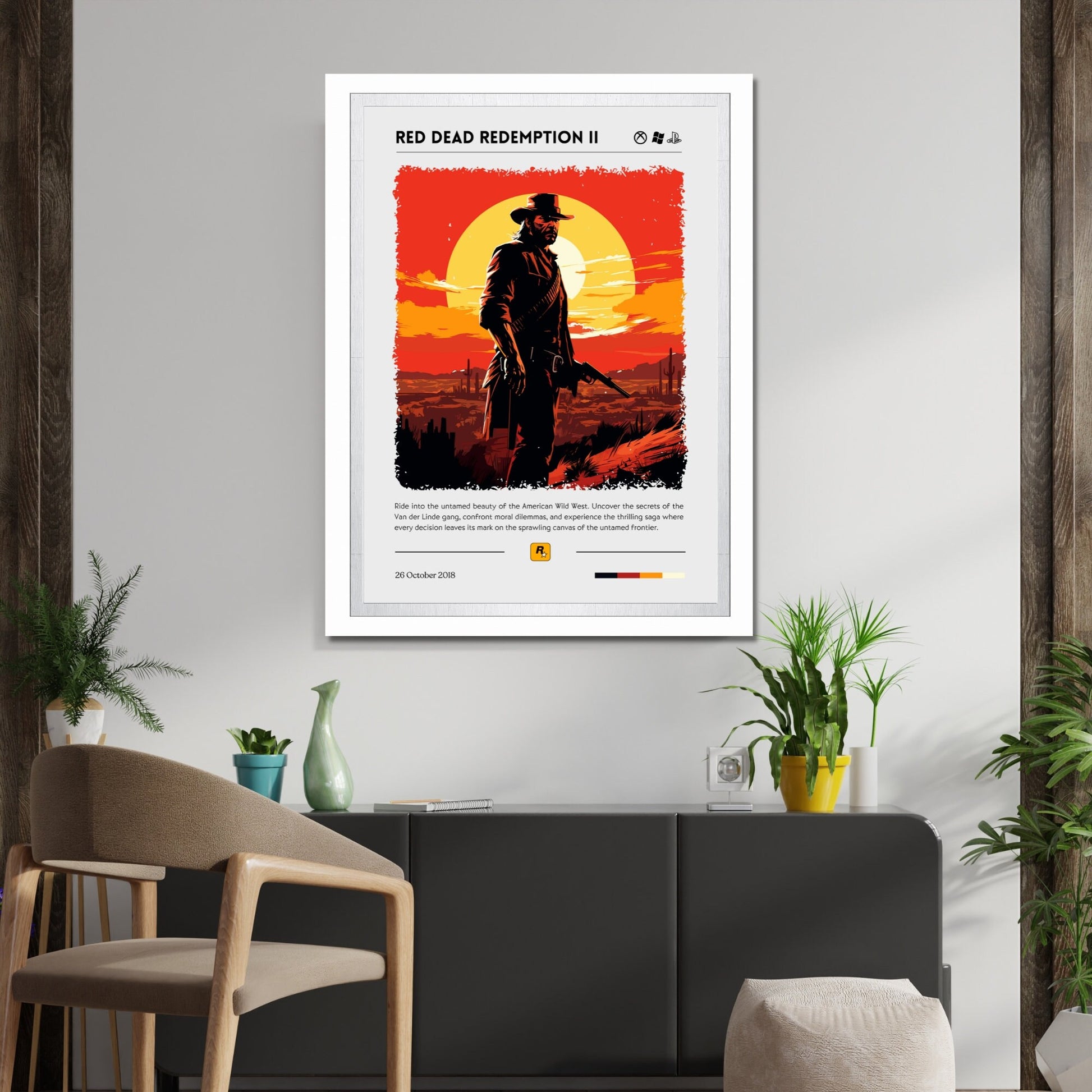 Affiche de Red Dead Redemption 2 – Art de jeu occidental pour salles de jeux