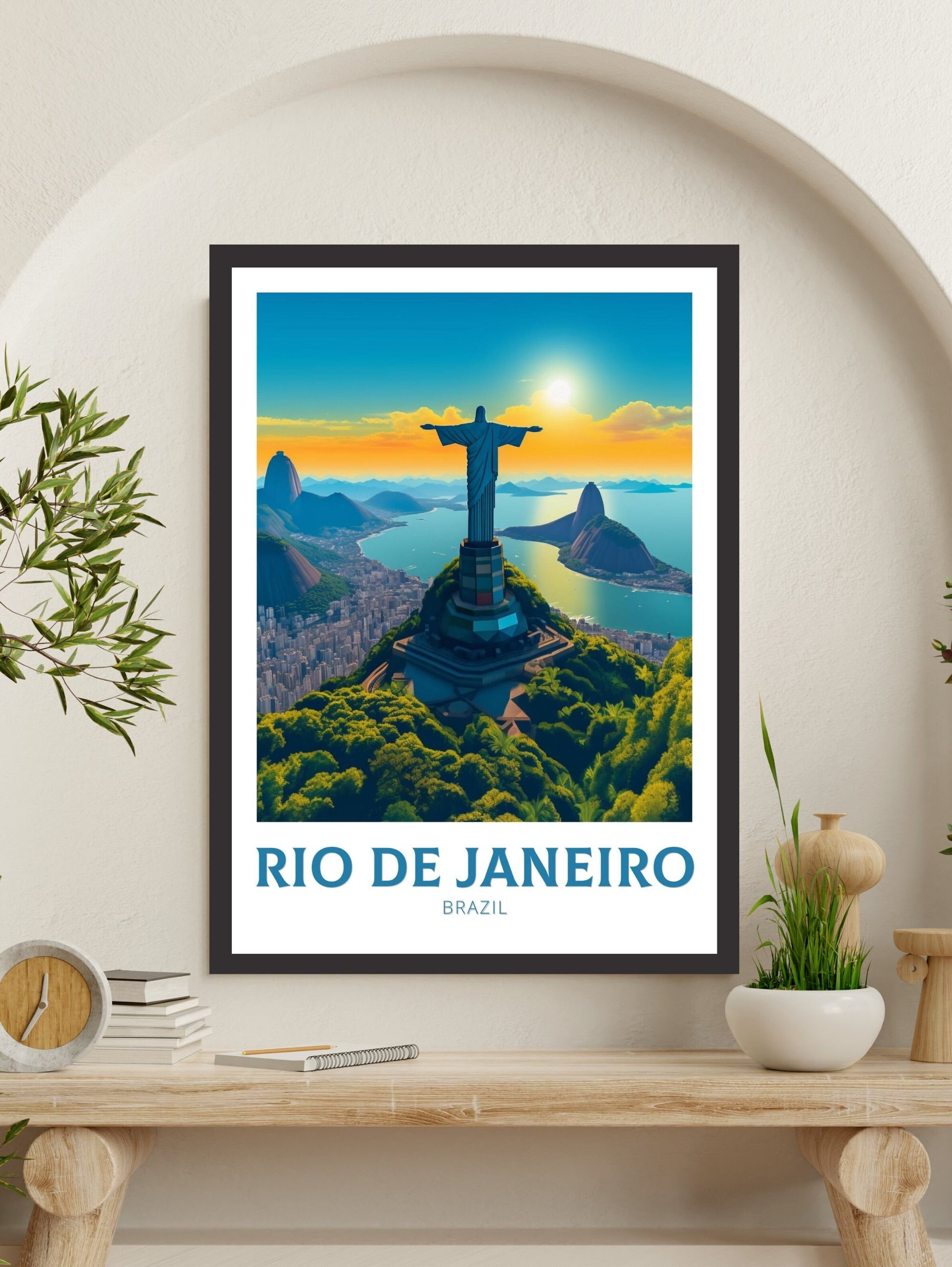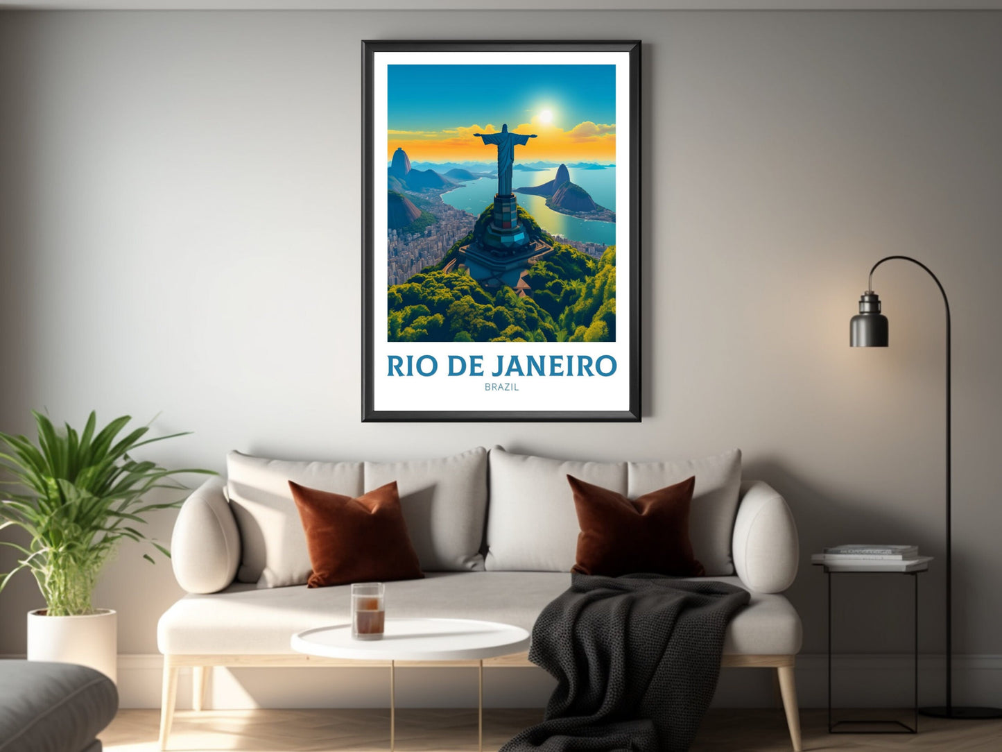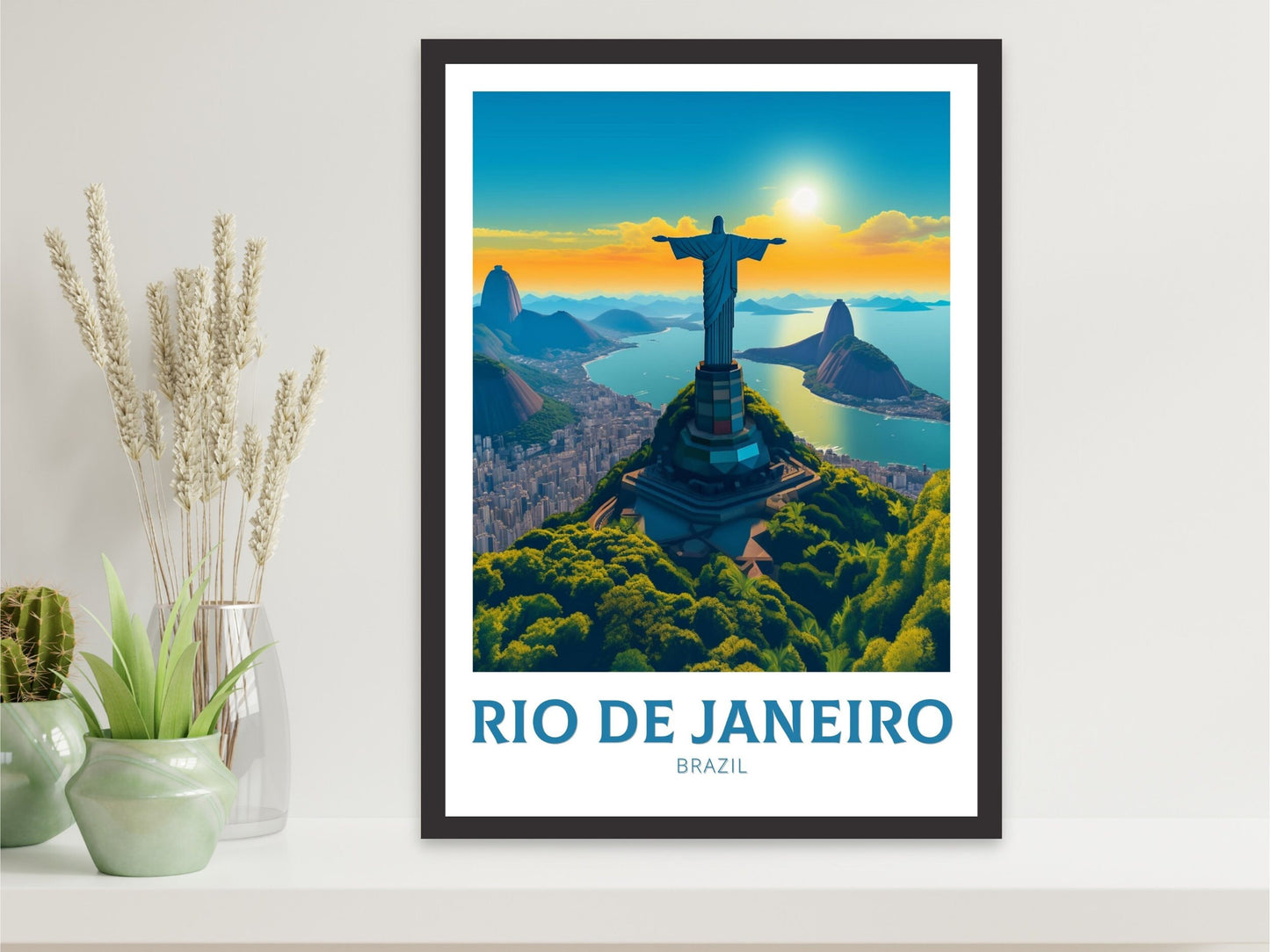 Notre affiche de voyage Rio – Art rétro brésilien – plonge votre intérieur dans l'effervescence de Rio de Janeiro, au Brésil, grâce à son design nostalgique. Idéale pour les passionnés de voyages et d'art rétro, elle capture l'emblématique Christ Rédempteur et la plage de Copacabana dans un style intemporel. Que vous ayez dansé dans ses rues ou rêvé de son charme, cette affiche Rio rétro sera un atout déco exceptionnel.