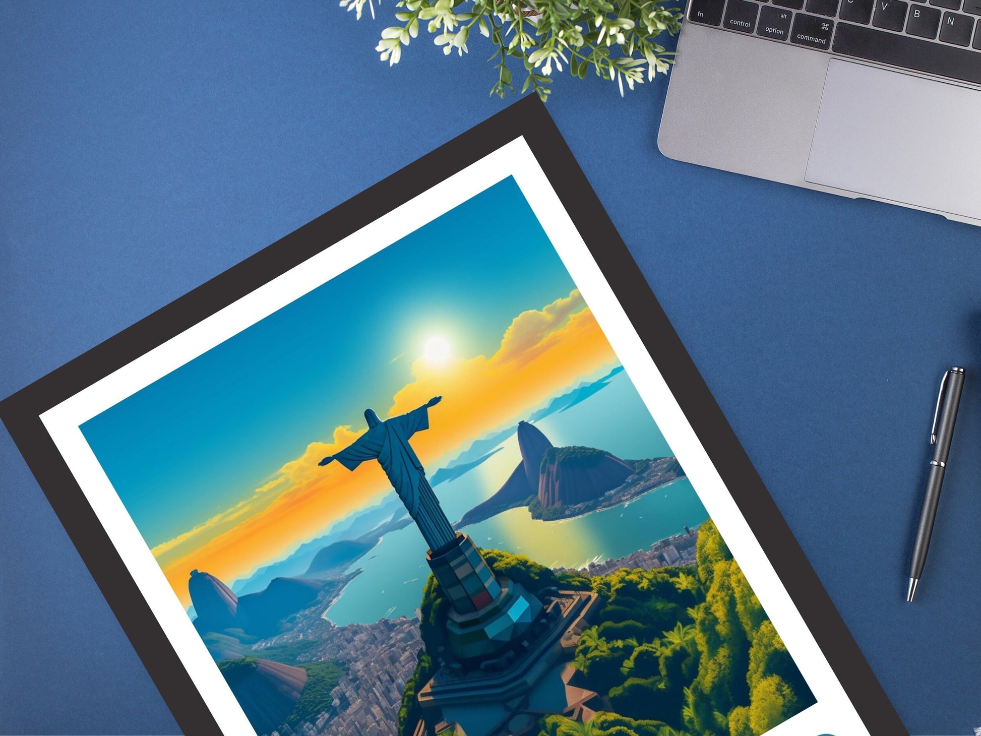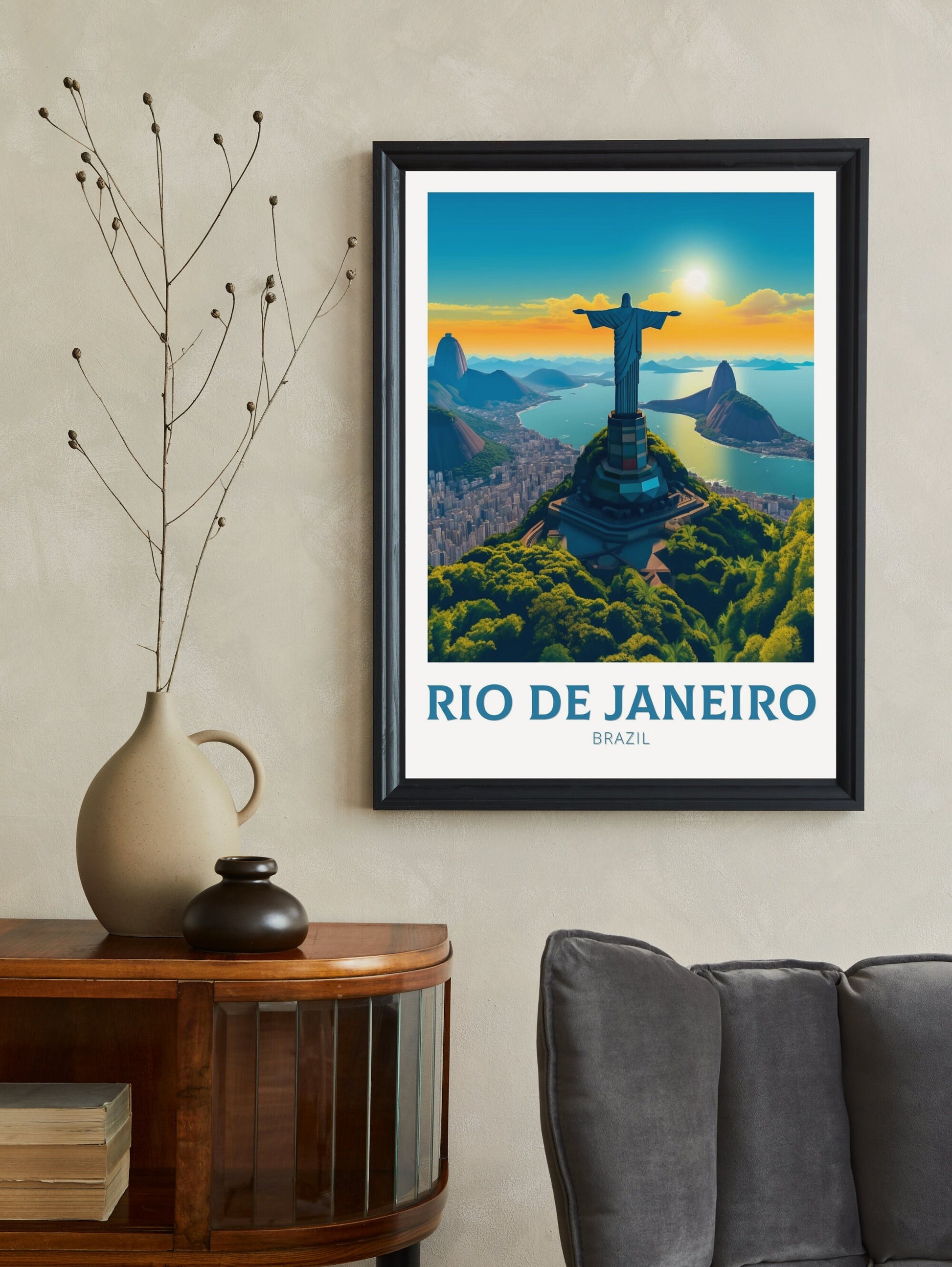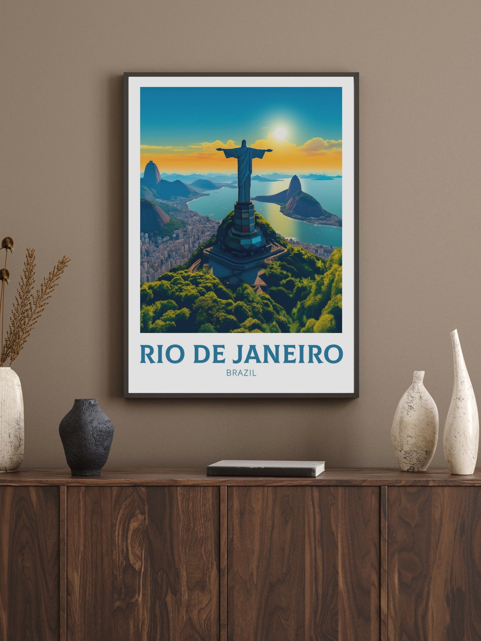Notre affiche de voyage Rio – Art rétro brésilien – plonge votre intérieur dans l'effervescence de Rio de Janeiro, au Brésil, grâce à son design nostalgique. Idéale pour les passionnés de voyages et d'art rétro, elle capture l'emblématique Christ Rédempteur et la plage de Copacabana dans un style intemporel. Que vous ayez dansé dans ses rues ou rêvé de son charme, cette affiche Rio rétro sera un atout déco exceptionnel.
