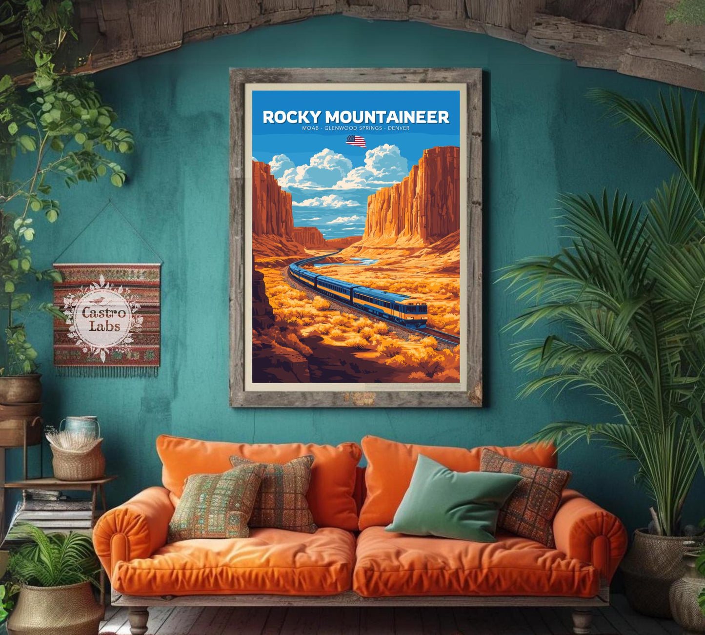 Cette œuvre allie des teintes vibrantes à l'allure majestueuse du Rocky Mountaineer, capturant ainsi l'essence même d'une aventure ferroviaire de premier ordre. Imprimée sur un papier de qualité supérieure, elle offre une brillance durable et une finition impeccable, ce qui en fait un cadeau idéal pour les voyageurs et les passionnés de train. Cette affiche du Rocky Mountaineer apporte une touche d'élégance sauvage à n'importe quel espace.