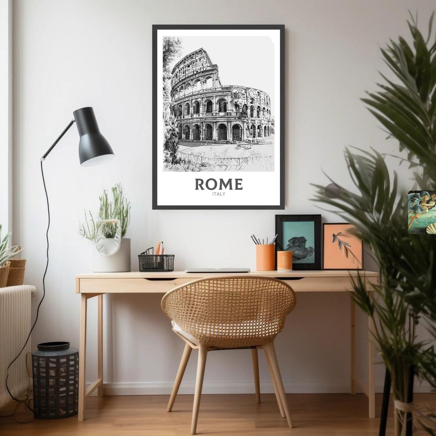 Parfait pour les salons, les bureaux ou les espaces d'étude , cet imprimé ajoute une touche sophistiquée tout en célébrant la beauté et le patrimoine de Rome.