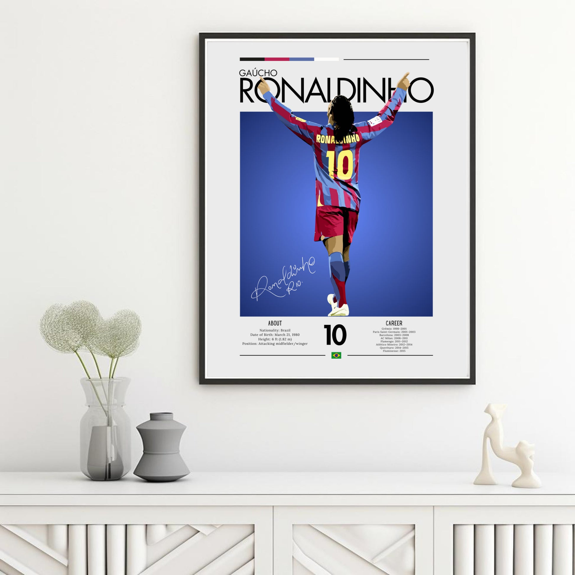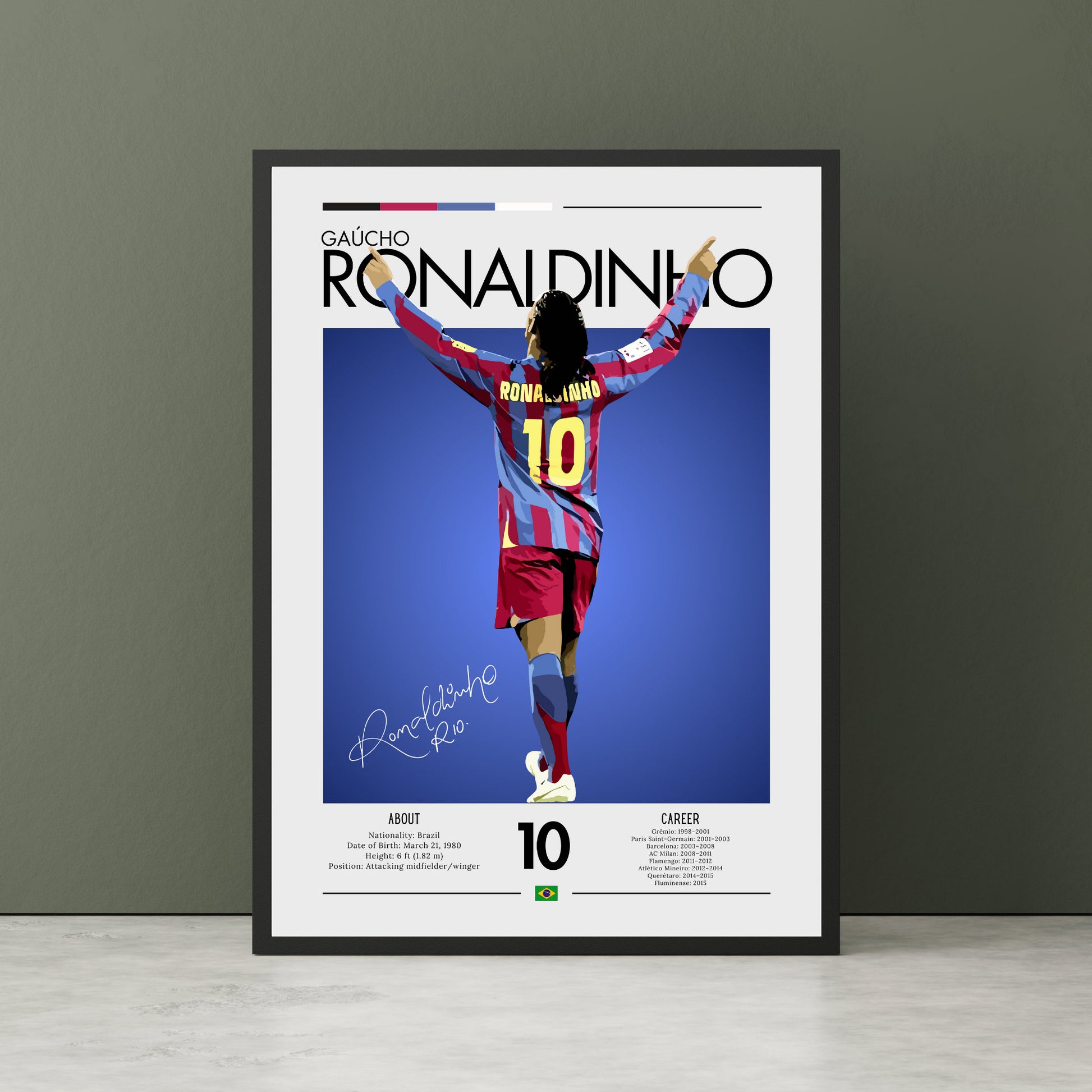 Imprimée sur des matériaux de haute qualité, avec des couleurs vives, des détails nets et une durabilité exceptionnelle, l' affiche Ronaldinho est idéale pour être encadrée ou accrochée au mur. Que vous soyez supporter du FC Barcelone, collectionneur d'œuvres d'art footballistiques ou supporter de joueurs brésiliens légendaires, cette affiche célèbre la technique, la vision et les moments emblématiques de Ronaldinho sur le terrain. Sublimez votre maison, votre bureau ou votre pièce à thème sportif avec cette œuvre d'art murale de collection, un hommage à Ronaldinho, une véritable légende du football.