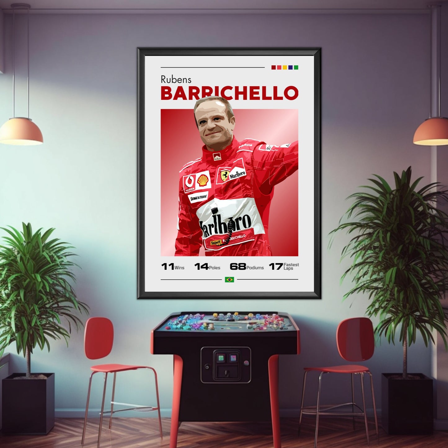 Affiche Ferrari F1 de Rubens Barrichello – Art classique du sport automobile